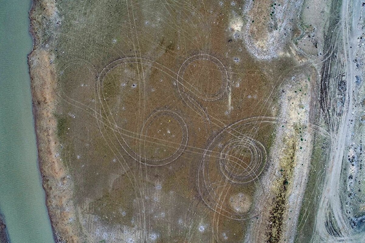 Suların çekilmesi ile birlikte haritalarda mavi olarak görülen baraj alanın adeta çöle döndüğü görüldü. Diğer taraftan suların çekilmesi ile daha önce sular altında kaldığı değerlendirilen bazı ev kalıntıları da ortaya çıktı. Bir başka açıda ise tarihi bir köprünün olduğu görüldü.