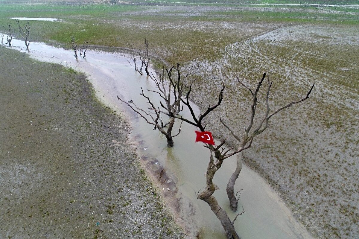 Baraj alanında çok sayıda kurumuş ağaç olduğu ve vatandaşların ağacın birisinin tepesine Türk bayrağı astığı görüldü. Baraj alanında çok sayıda lastik izinin olması korkunç tabloyu bir kez daha gözler önüne serdi.