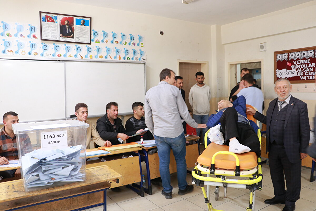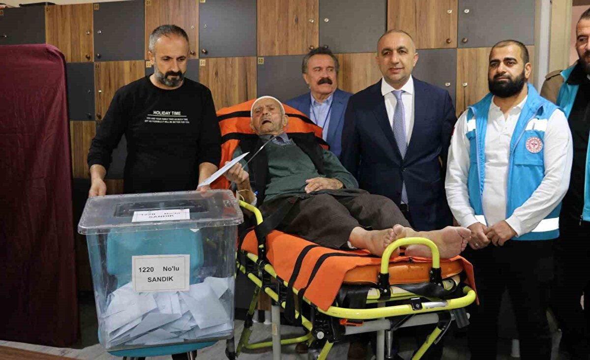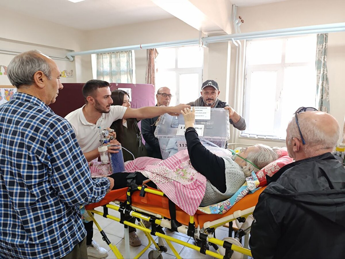 Sağlık sorunları nedeniyle hastanede tedavi gören ve sandığa gitmekte zorluk yaşayan seçmenler, Sağlık Bakanlığı ekiplerinin desteğiyle oy verecekleri okullara götürüldü.