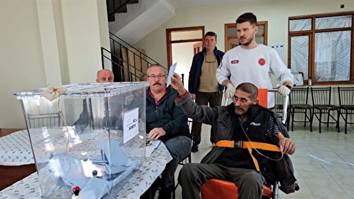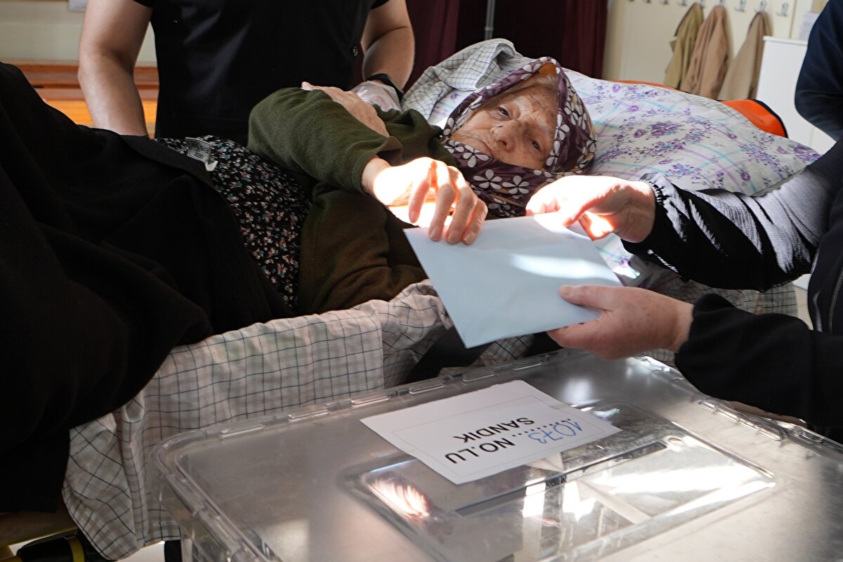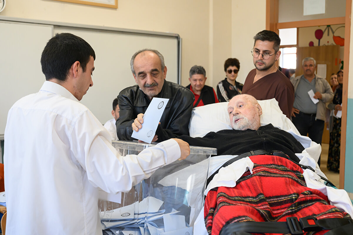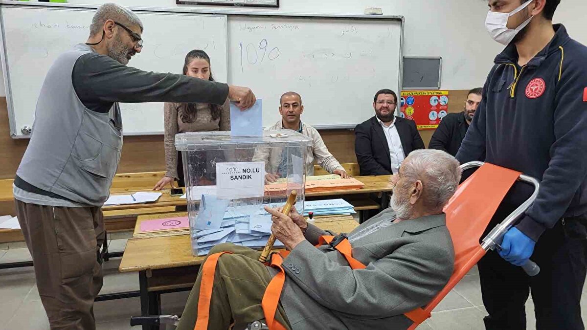 Sağlık sorunları nedeniyle hastanede tedavi gören ve sandığa gitmekte zorluk yaşayan seçmenler, Sağlık Bakanlığı ekiplerinin desteğiyle oy verecekleri okullara götürüldü.