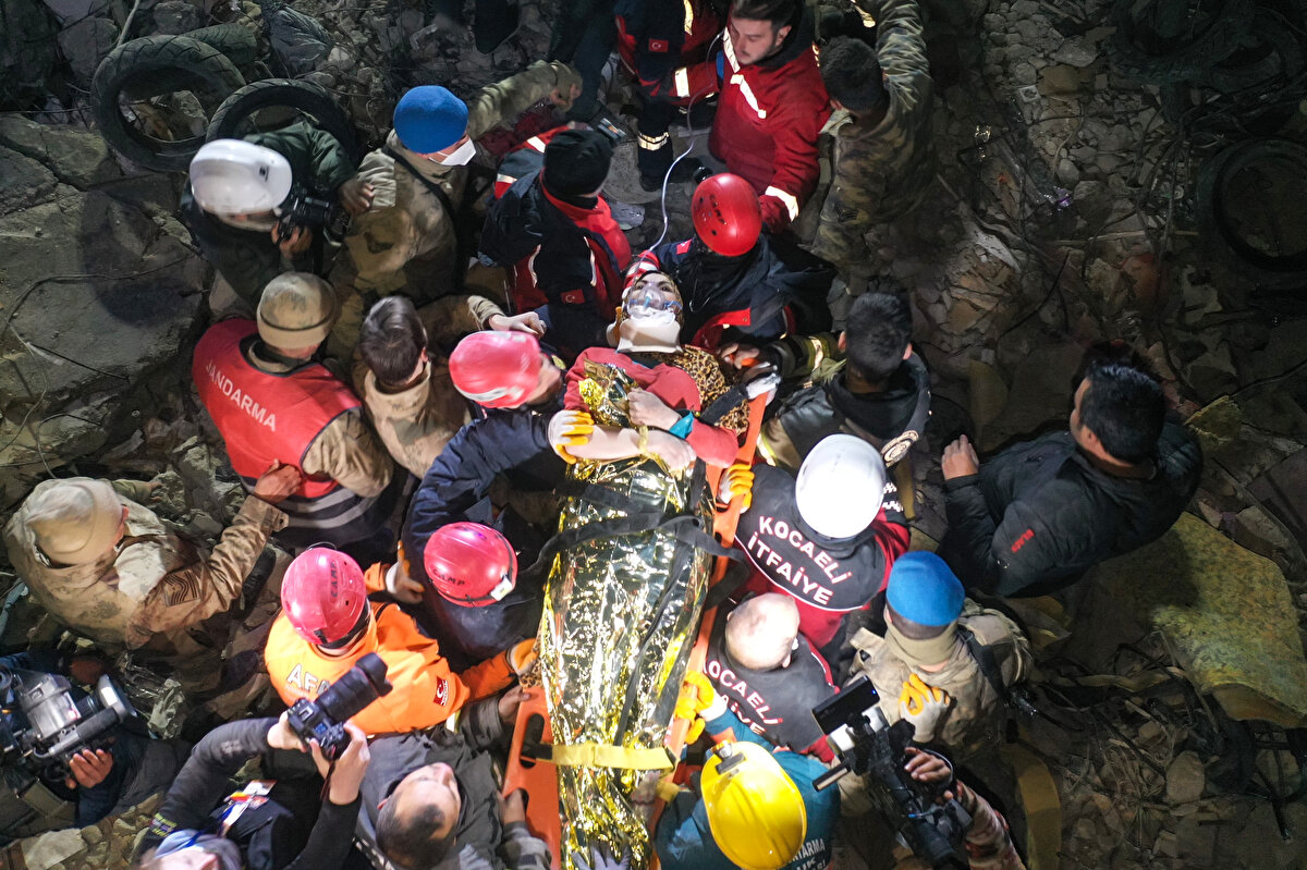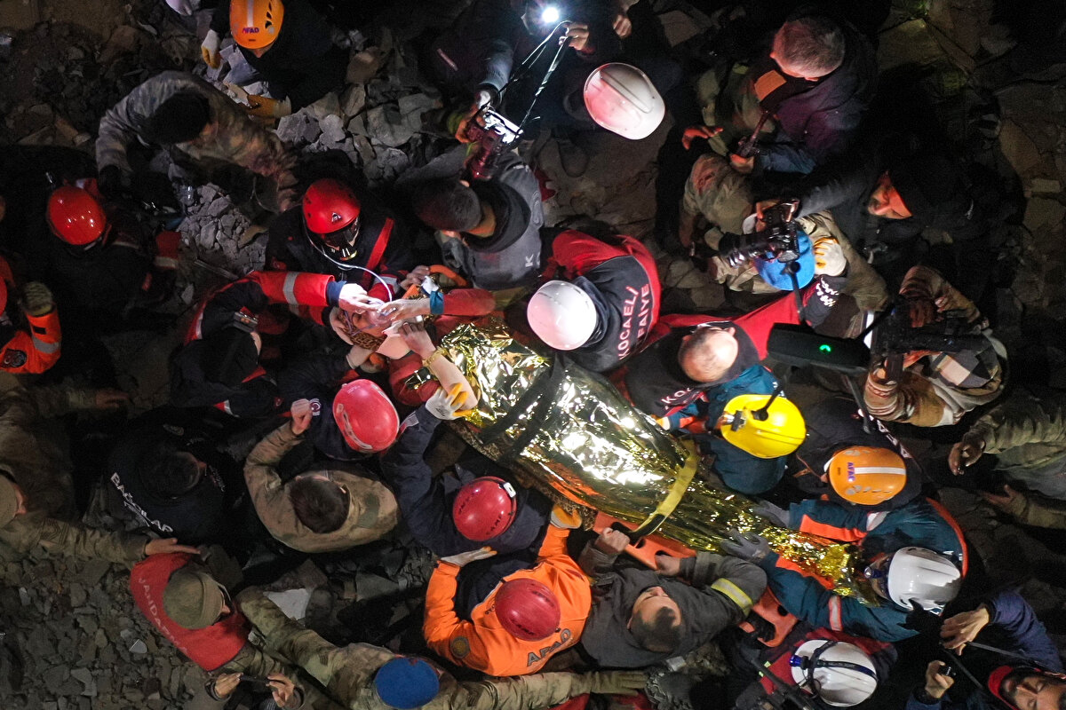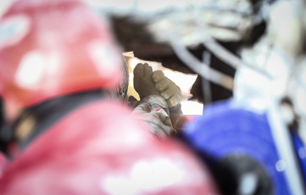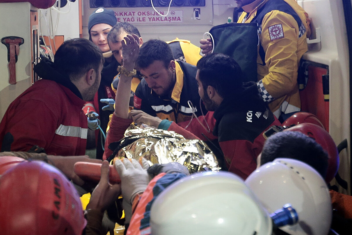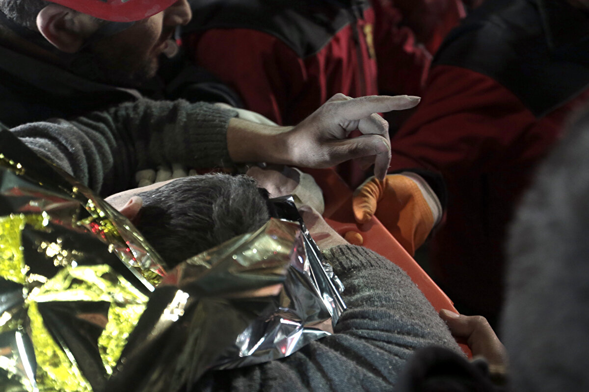 Kahramanmaraş merkezli depremlerin 209'uncu saatinde, Hatay'ın merkez Antakya ilçesinde enkaz altında kalan yabancı uyruklu karı koca kurtarıldı.