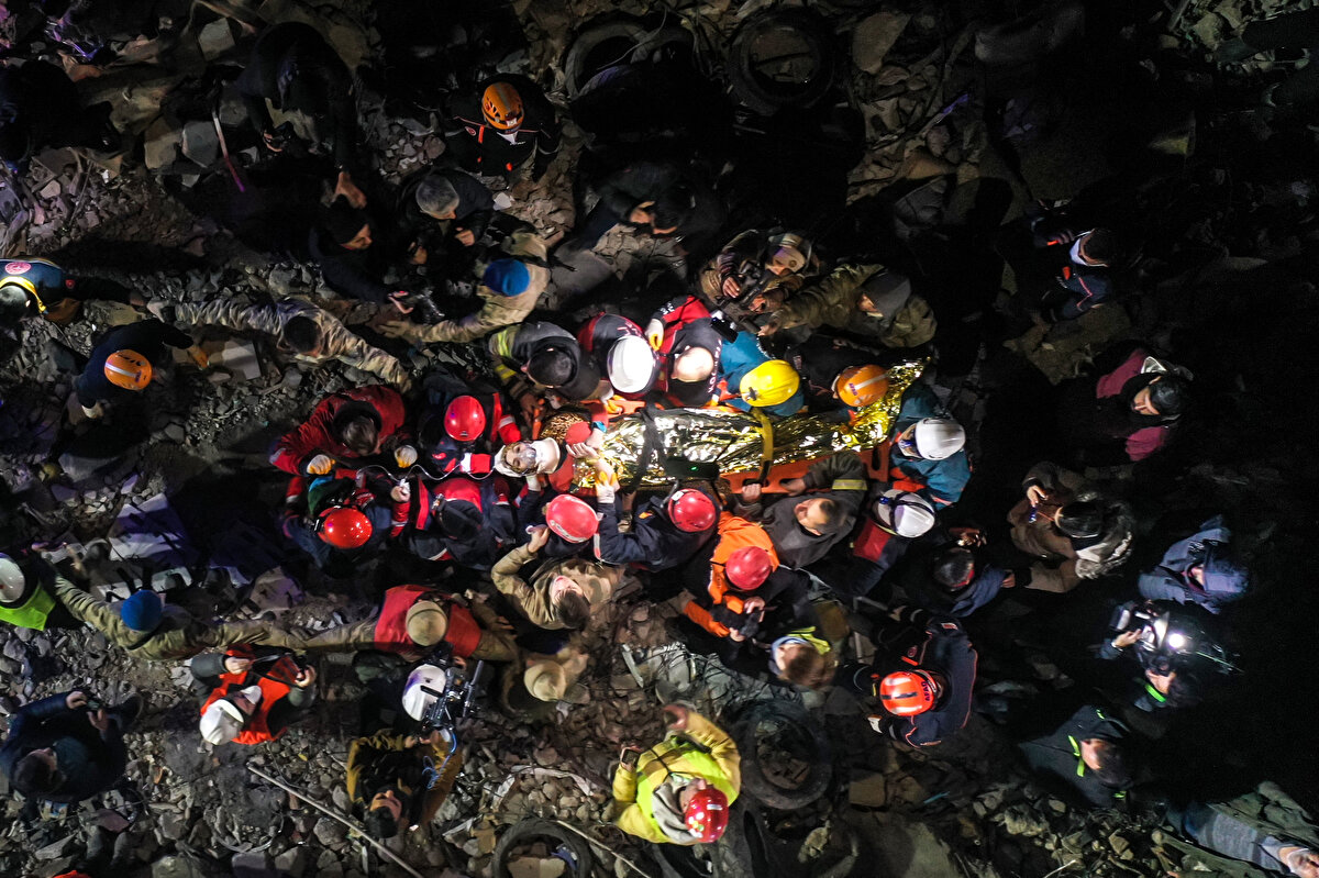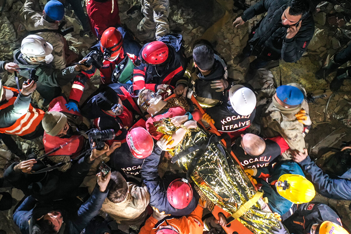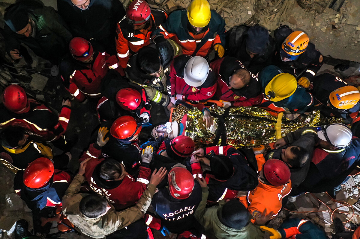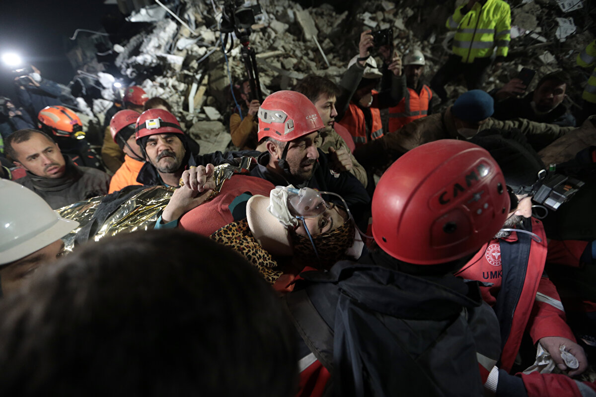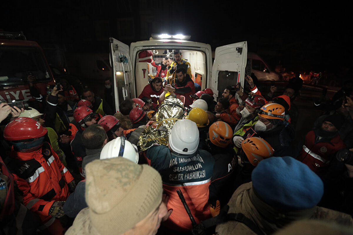 Kahramanmaraş merkezli depremlerin 209'uncu saatinde, Hatay'ın merkez Antakya ilçesinde enkaz altında kalan yabancı uyruklu karı koca kurtarıldı.