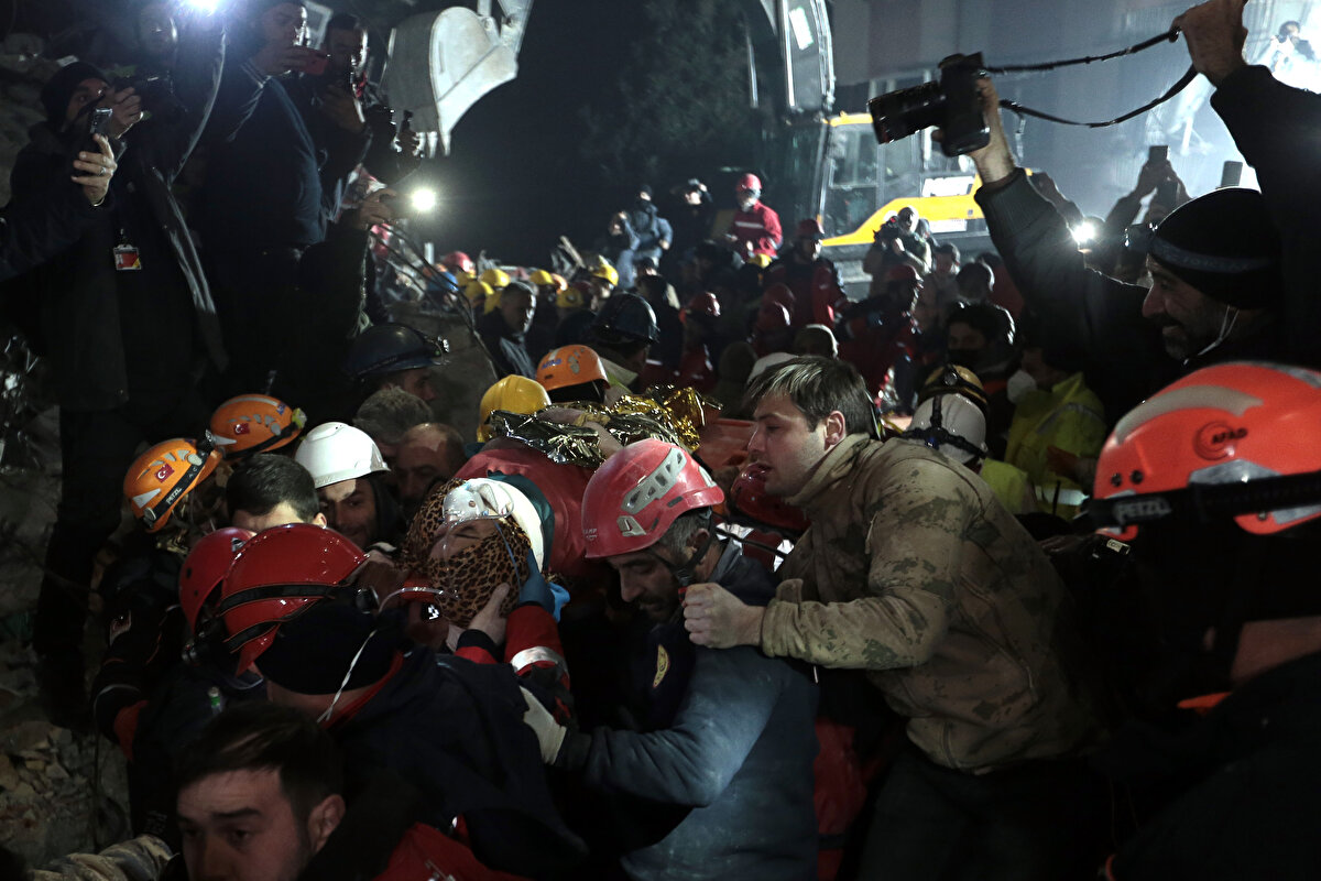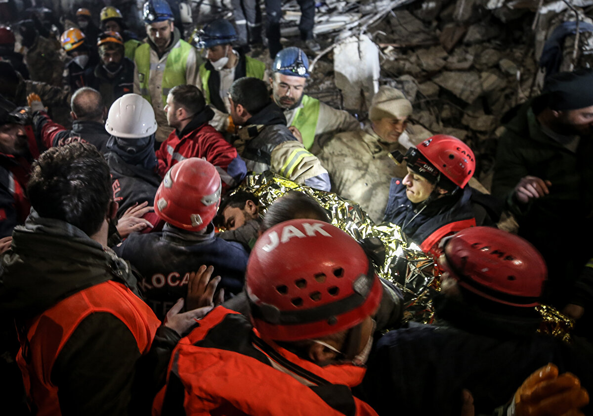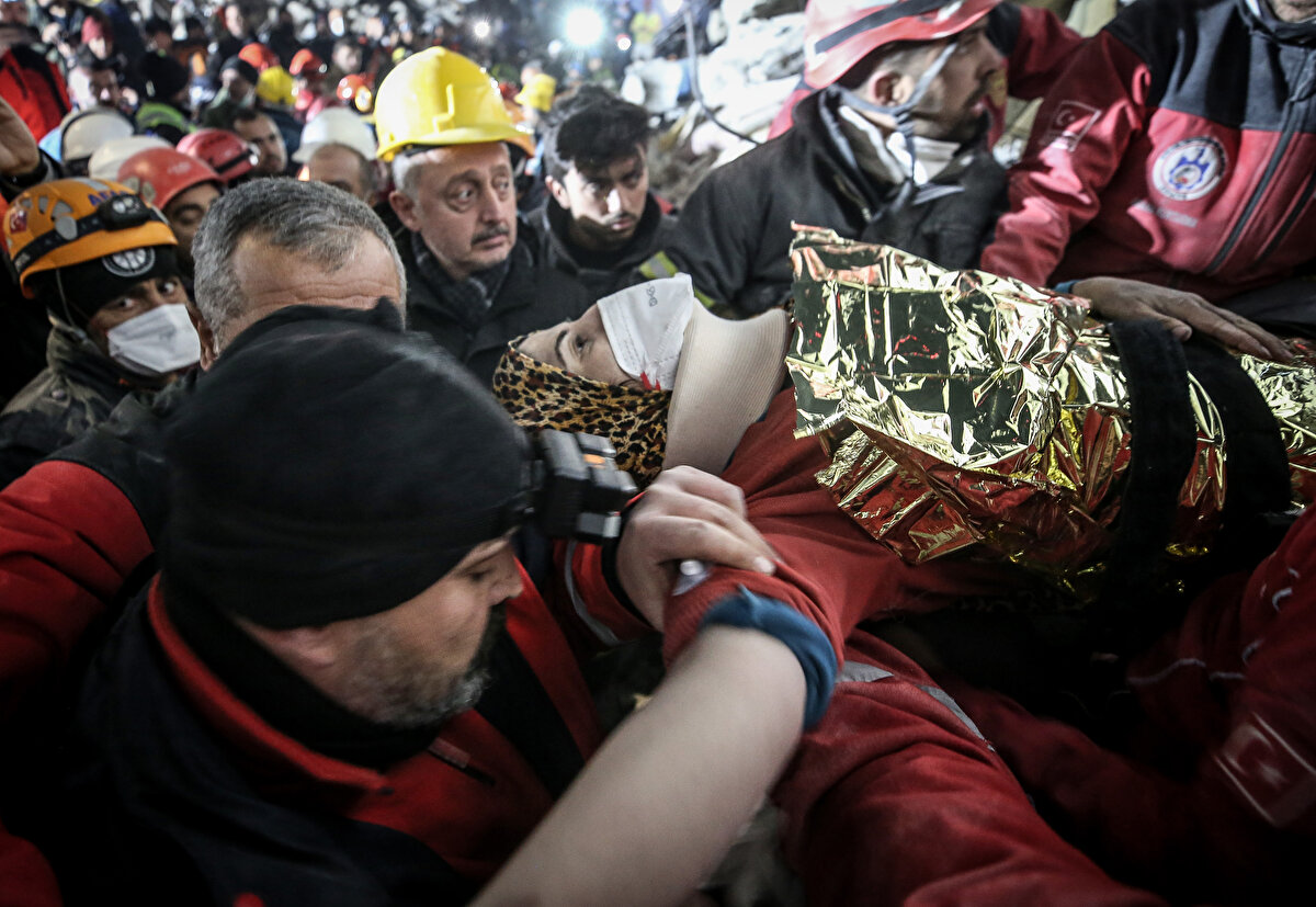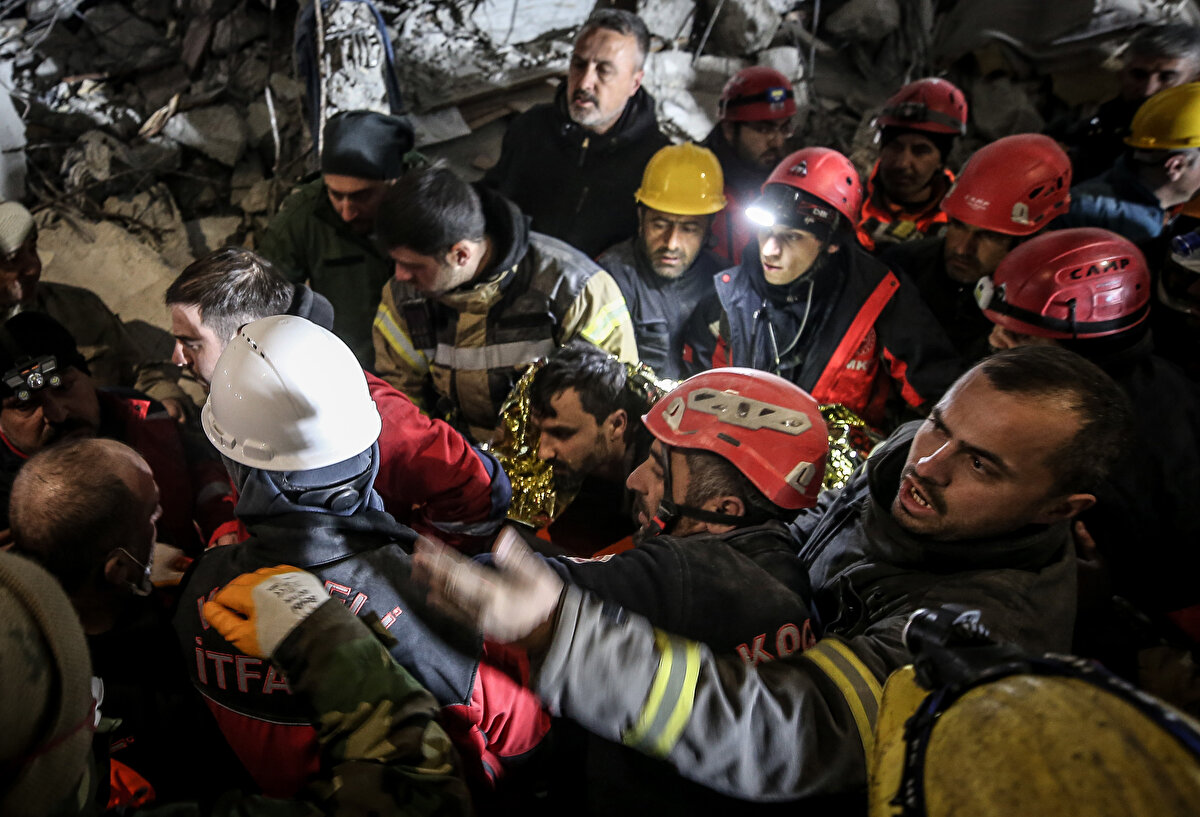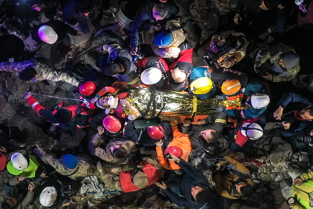 Kahramanmaraş merkezli depremlerin 209'uncu saatinde, Hatay'ın merkez Antakya ilçesinde enkaz altında kalan yabancı uyruklu karı koca kurtarıldı.