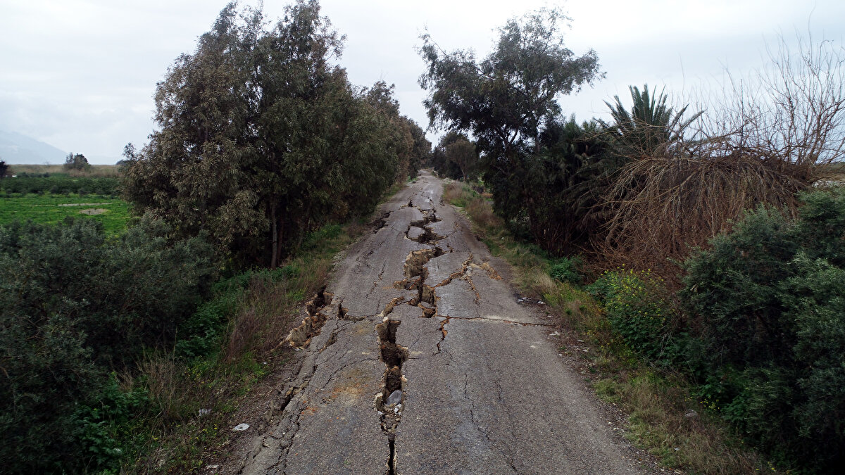 Hatay'ın Samandağ ilçesindeki bazı yollarda, depremler nedeniyle metrelerce yarıklar oluştu. Bir insanın girebileceği boyutta boşlukların olduğu yollar yakından görüntülendi.