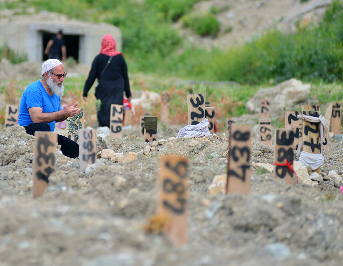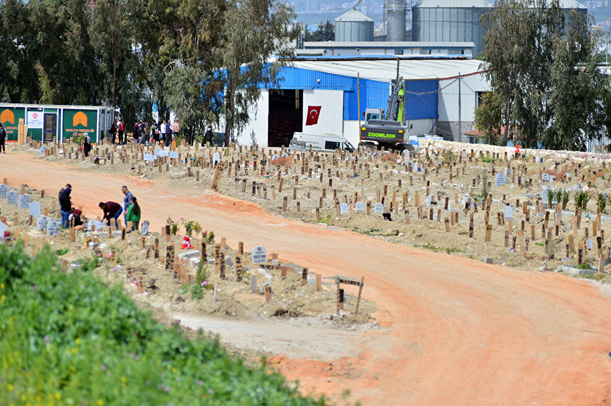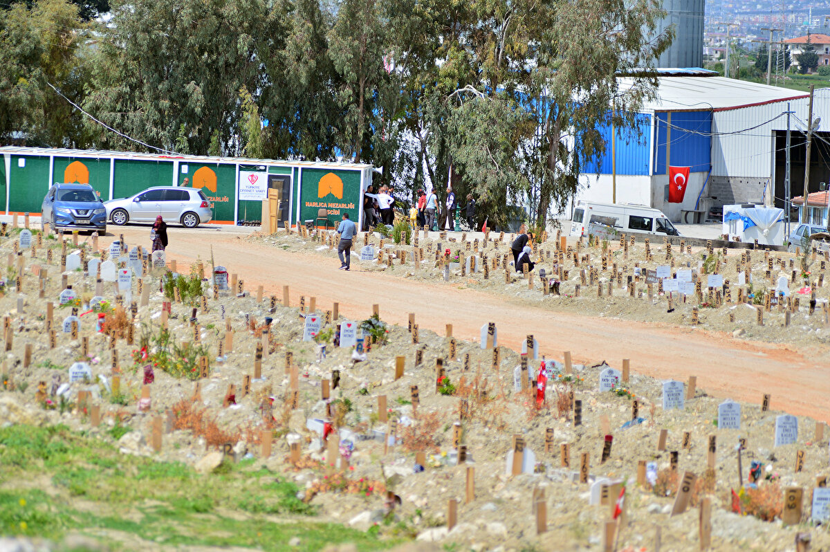 Hatay'da depremde hayatını kaybedenler için oluşturulan mezarlıklarda, Ramazan Bayramı arifesinde yoğunluk oluştu.