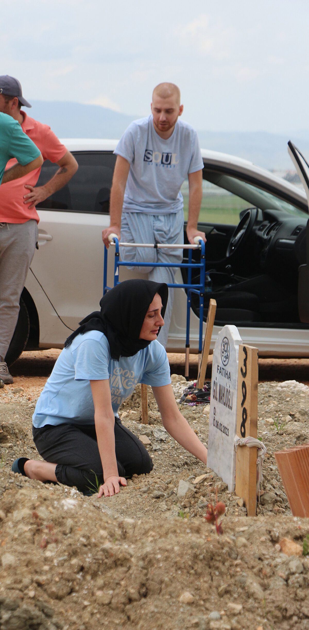 Depremde enkaz altından kurtarılan ancak bazı uzuvlarını kaybeden depremzedeler de hayatını kaybeden akrabalarının mezarlarını ziyaret etti.