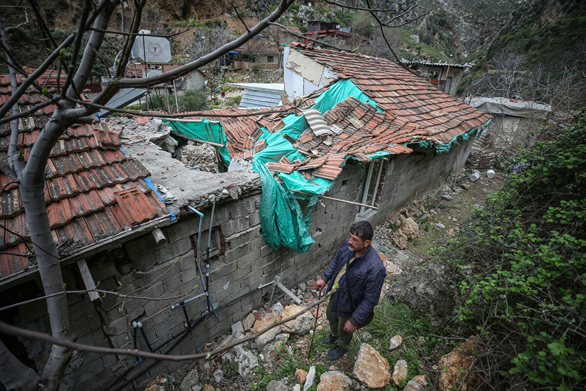 Hatay'da depremde yıkılmayan evleri dağdan kopan kayalar yıktı