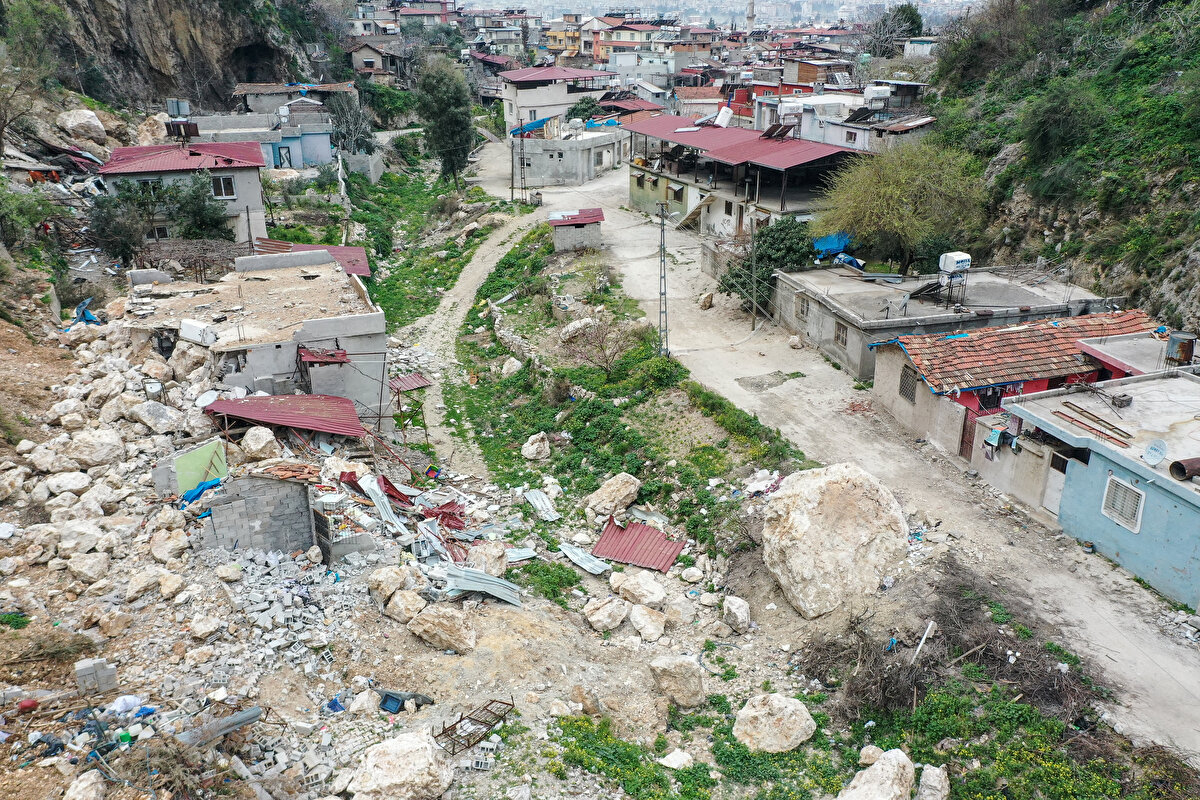 Kahramanmaraş ve Hatay merkezli depremler, Antakya ilçesinde ovada kurulu mahallelerde büyük yıkıma yol açtı. "Dağ mahallesi" olarak adlandırılan müstakil evlerin bulunduğu Hacı Ömer Alpagot Mahallesi`nde ise bazı evler, deprem nedeniyle dağdan kopan kayalarla yıkıldı.