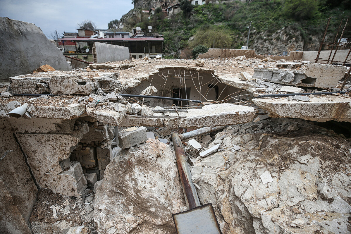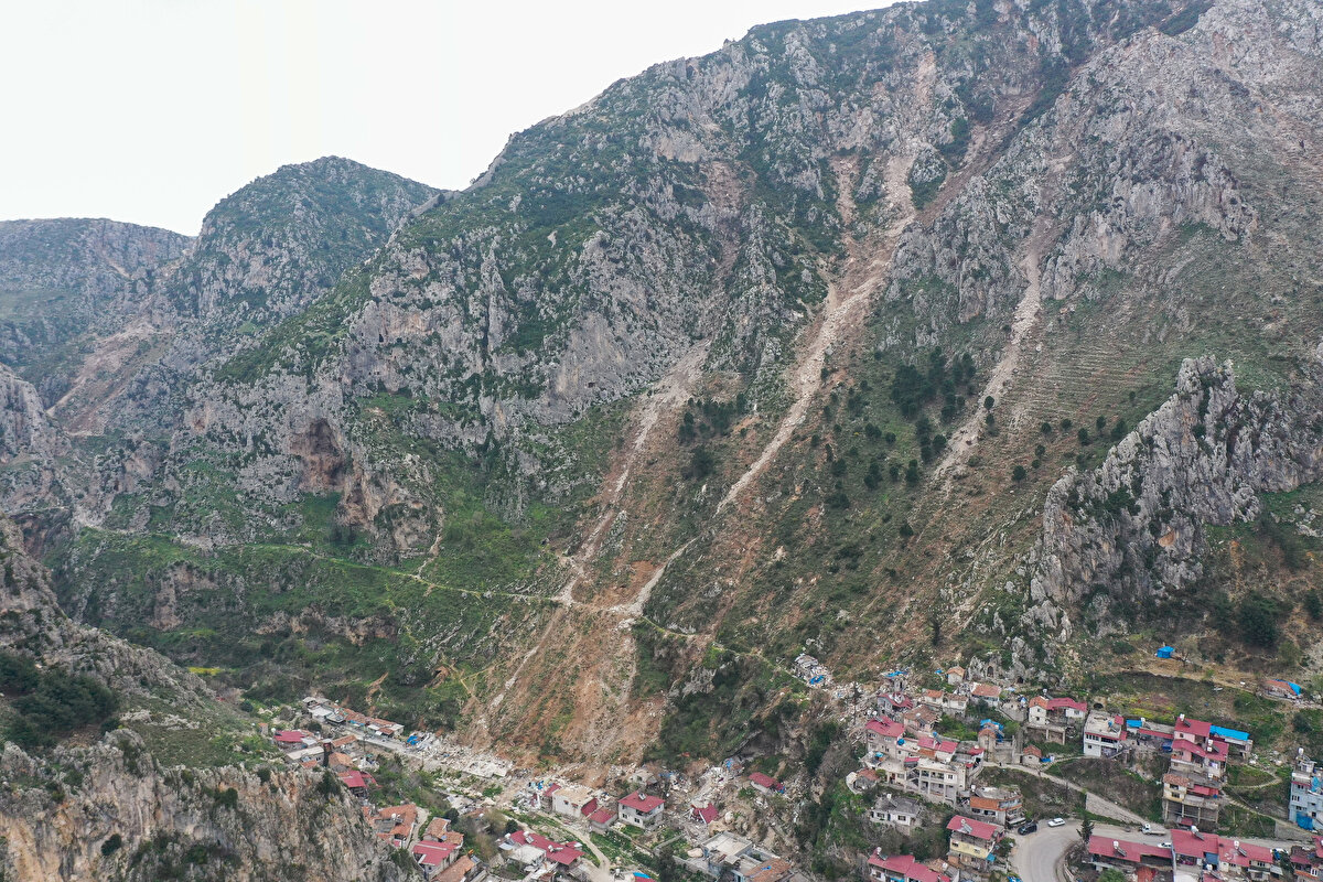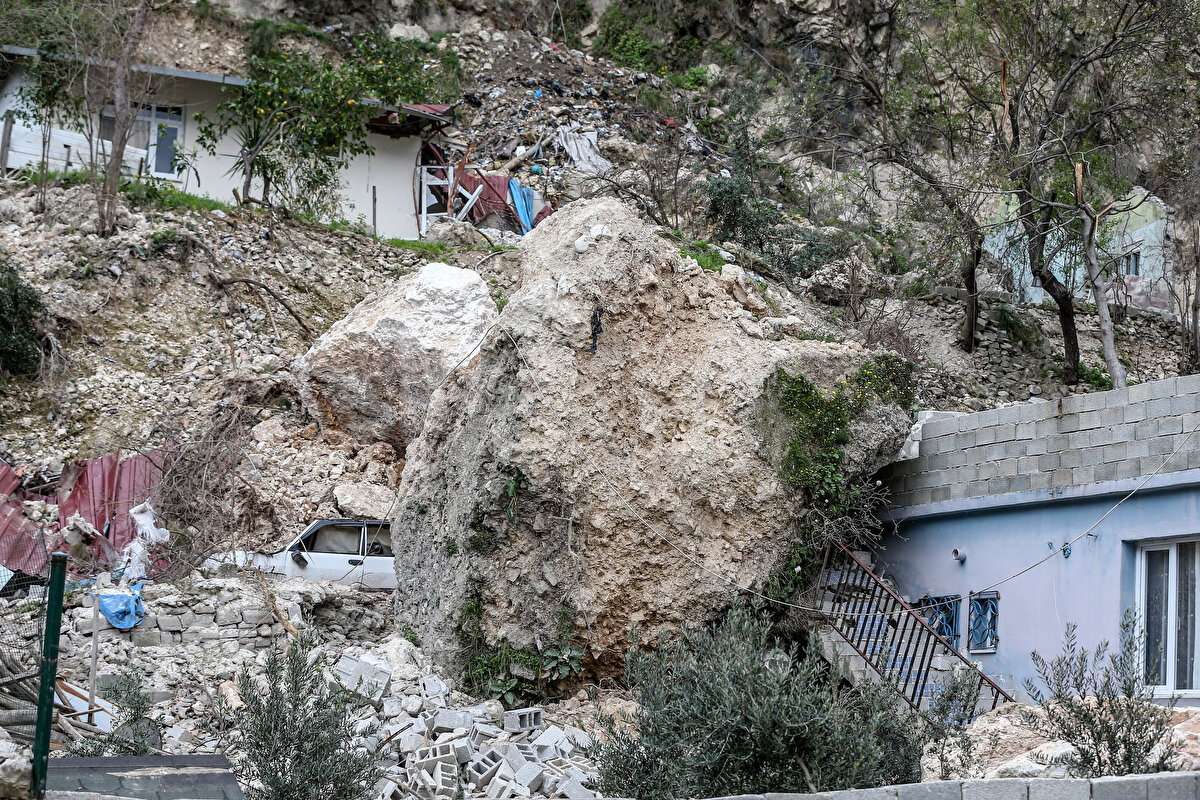 Hatay'ın Antakya ilçesinde depremin etkisiyle Habib-i Neccar Dağı'ndan kopan kayalar, dağın eteklerinde kurulu Hacı Ömer Alpagot Mahallesi'ndeki bazı evlerin yıkılmasına neden oldu.