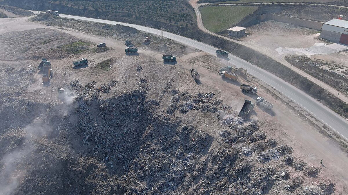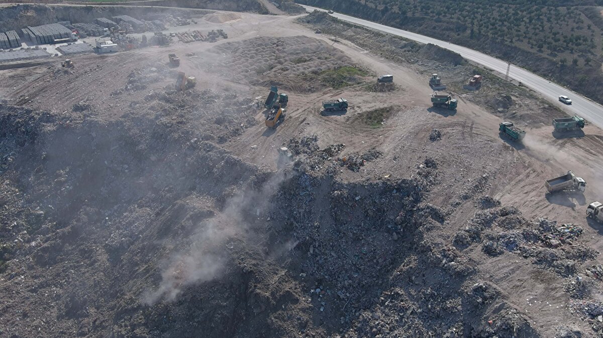 DHA'da yer alan habere göre binalardan kaldırılan moloz yığınları, enkaz döküm sahasına getirilerek belirlenen noktalara dökülüyor.
