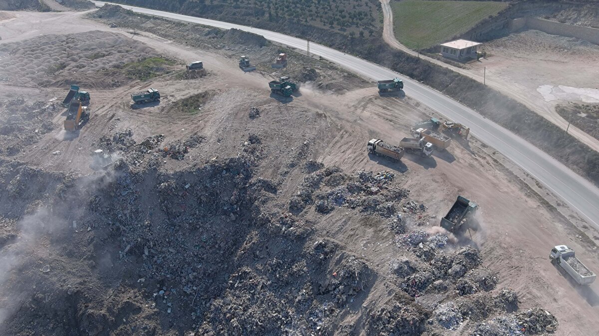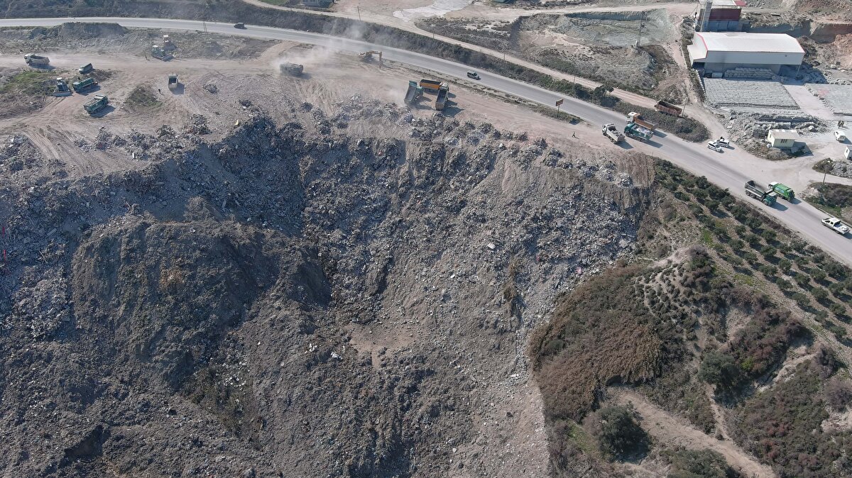 Hatay'da enkaz döküm sahası havadan görüntülendi