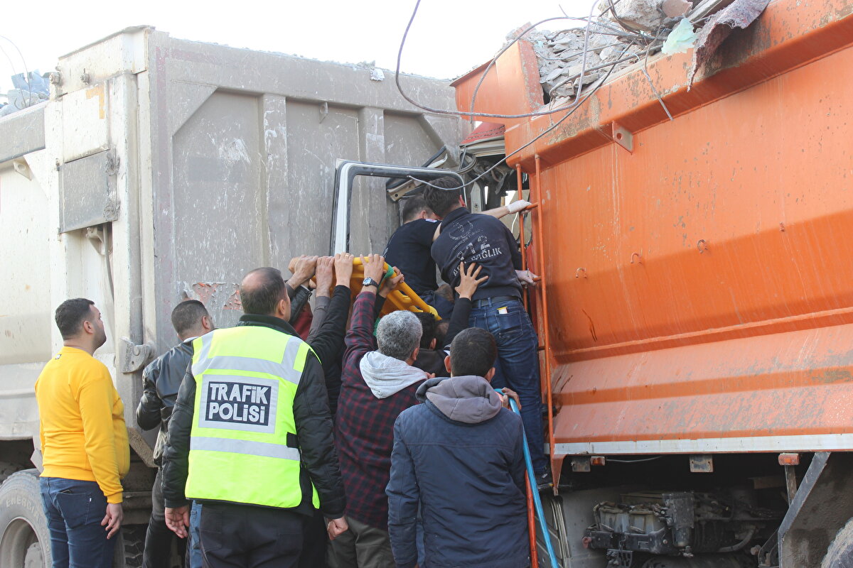 Kahramanmaraş merkezli depremlerin ardından yıkılan binaların enkazlarının kaldırılması çalışmalarında kullanılan Y.D. (49) yönetimindeki 06 DFY 762 plakalı kamyon, İskenderun-Arsuz kara yolu Nardüzü Mahallesi'nde seyir halindeyken trafik ışıklarında bekleyen bir kamyona ve iki otomobile çarptı.