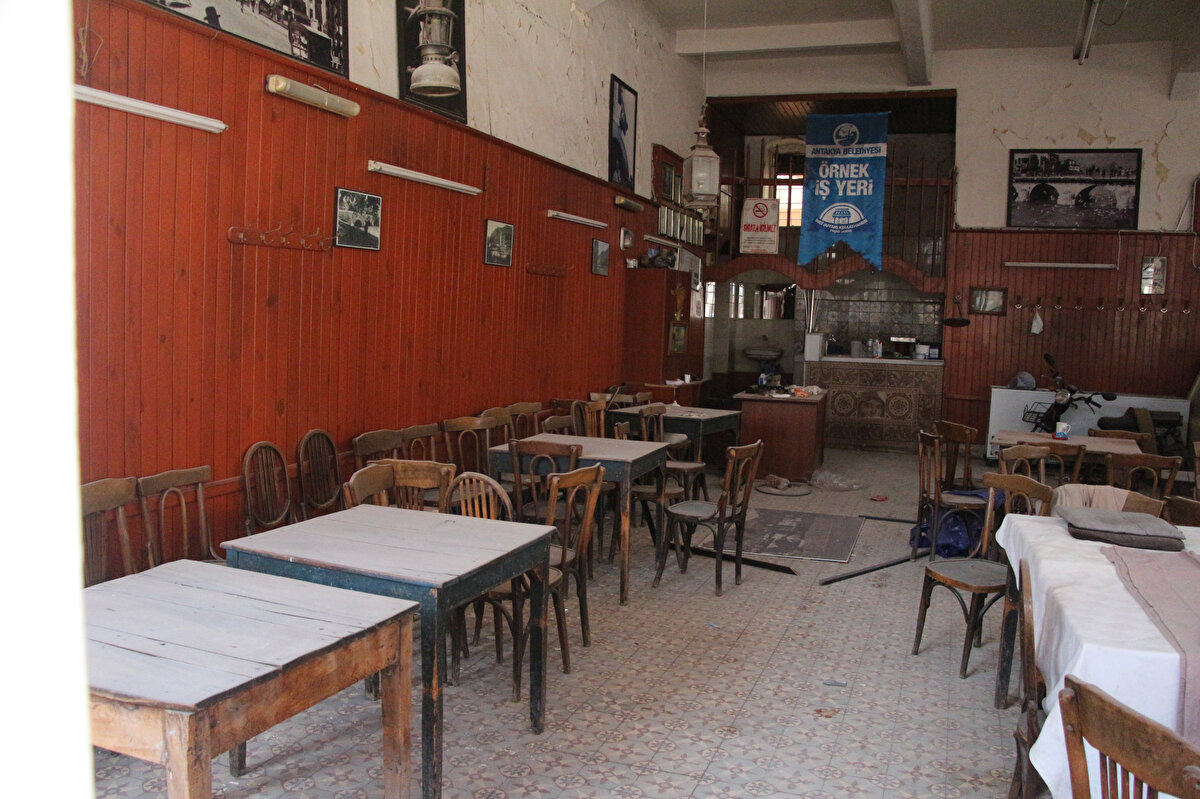 Hatay'da dünyanın ilk kez ışıklandırılan caddesi olarak bilinen turistik Kurtuluş Caddesi'nde, yıkıntılar arasında çevreye moral vermek isteyen bir antikacı hafif hasarlı iş yerini açarak, kasetçalarıyla nostaljik şarkılar dinletmeye başladı.