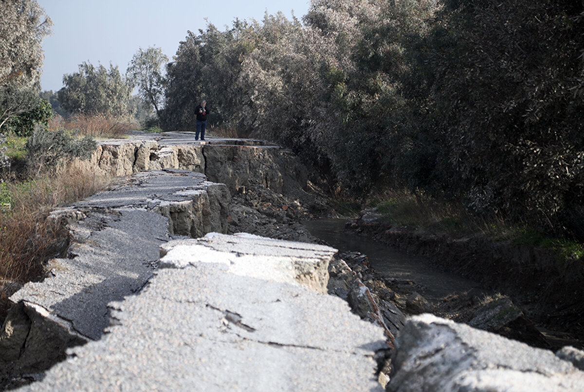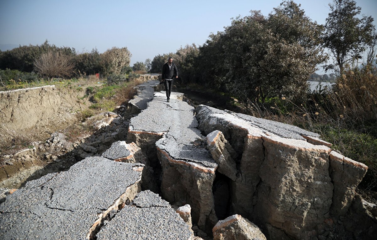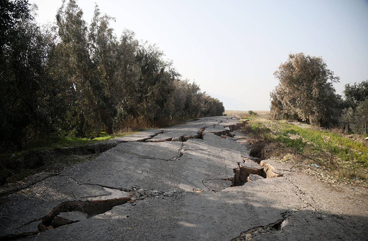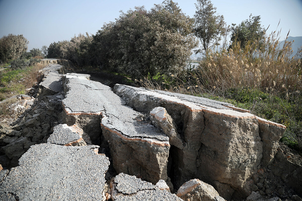 Hatay'ın Samandağ ilçesinde Mileyha Kuş Cenneti'nin bulunduğu Liman Mahallesi'nde Asi Nehri boyunca denize doğru uzanan asfalt yolun 2 kilometreden fazla kısmında, 6 Şubat'taki depremlerde büyük yarıklar oluştuğu görüldü.
