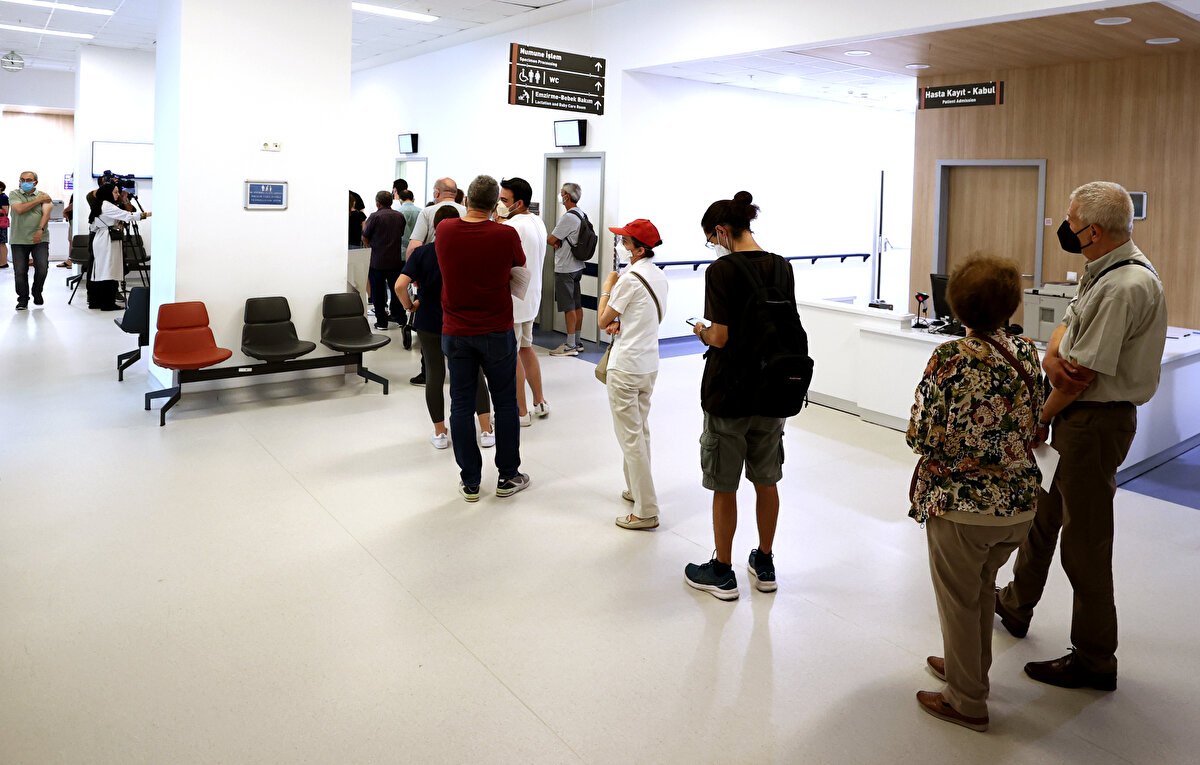 Sağlık Bakanlığınca COVID-19'a karşı yeni hatırlatma dozu randevularının tanımlanmasının ardından hastanelerde aşılarını olmak için gelen vatandaşlar uzun kuyruk oluşturdu.