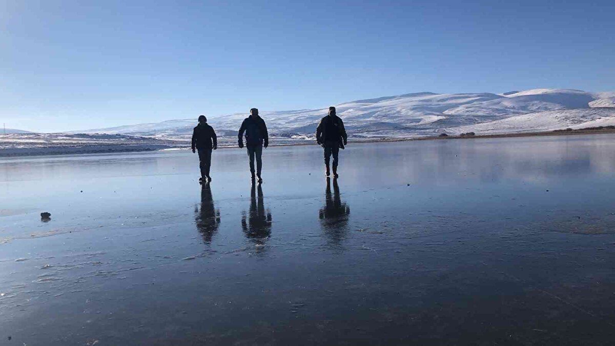 Kurt, “Biraz ürküyorum şu an, biraz su çıktı. Çıldır Gölü’nün tam ortasındayız. Tam olarak donduğunu düşünmüyorum ama sağlam gibi bir sıkıntımız yok. Gerçekten çok güzel bir heyecan herkesin yaşaması gereken bir şey, herkese tavsiye ederim” şeklinde konuştu.