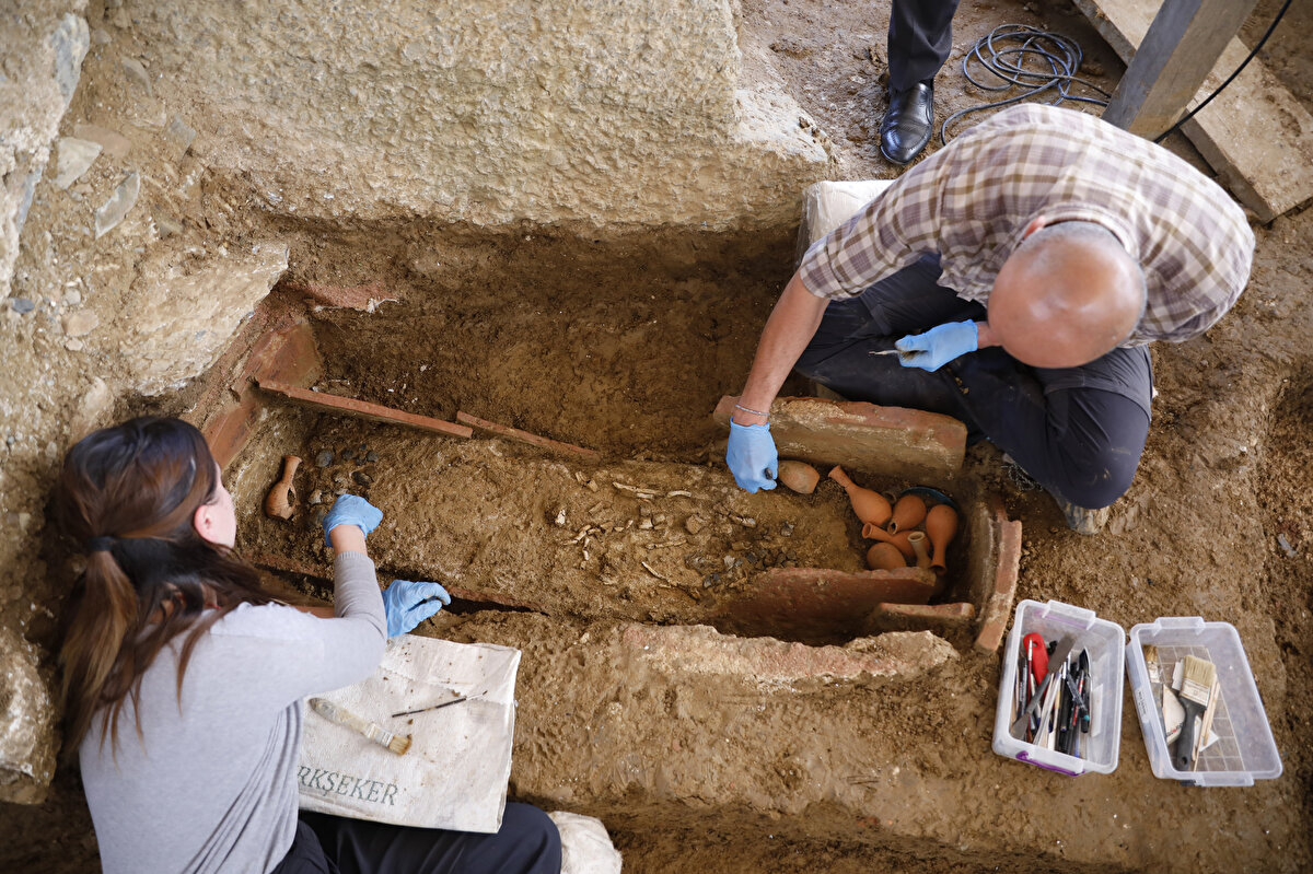 Daha sonra kazılar ilerledikçe, peronlar da alındıktan sonra mimari bütünlük ortaya çıktı. Yaklaşık 5 gün önce yeni bir bulguyla karşı karşıya kaldık. Geç Helenistik Döneme ait bir mezar ortaya çıktı. Mezarın kendi içinde buluntuları da olduğu için dönemsel olarak çok net bir veri sağlıyor. Mezar içinde ölü hediyesi olarak konulmuş pişmiş topraktan şişelerden mezarın tarihini de netleştirebildik. Geç Helenistik Döneme ait bir mezar. İstanbul için inanılmaz bir buluntu, çok büyük bir sürpriz. Helenistik Döneme ait ne yazık ki, elimizde çok veri yok. Hele hele mimari ve mezarda çok az. Bu nedenle çok çok önemli bir buluntu ile karşı karşıyayız. İstanbul'un tarihi yeniden yazılıyor deniyor ya bu metro ve marmaray kazıları ile beraber. İstanbul Arkeoloji Müzeleri gerçekten sonra 20 yıldır İstanbul'un tarihini değiştiriyor" dedi.