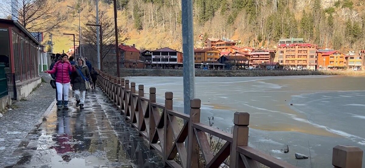 Trabzon'un Çaykara ilçesinde dünyaca ünlü turizm merkezi Uzungöl'ün büyük bir bölümü yörede etkili olan soğuk hava nedeniyle buz tuttu. Hafta sonu tatilcileri büyük bölümü buzla kaplanan gölün çevresinde yürüyüş yaparak bol bol fotoğraf çekti.