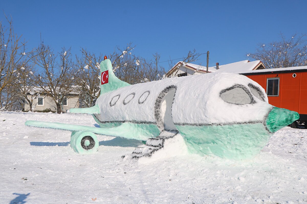Sakarya'nın Serdivan ilçesinde İbrahim Kurt, bahçesinde yaklaşık 5 metre uzunluğunda 2 metre yüksekliğinde kardan uçak yaptı. Hayatında hiç uçağa binmediğini söyleyen Kurt, “Yamaç paraşütü yapıyorum. O yüzden uçuş konusunda meraklıyım. Hiç uçakla uçamadığım için kardan uçak yapmayı düşündüm. İnşa etmesini biraz uğraştırmasına rağmen 4 günde tamamladım” dedi.
