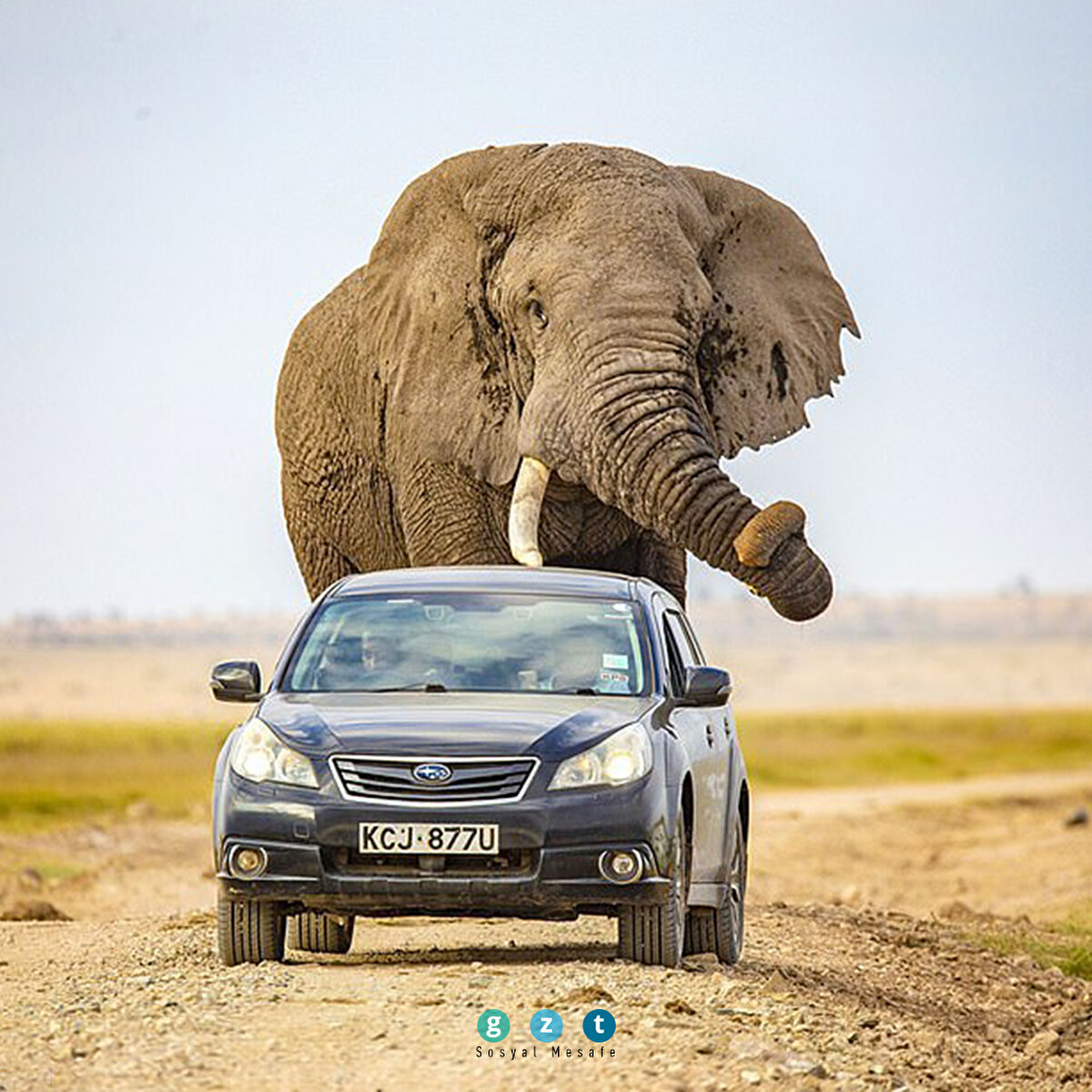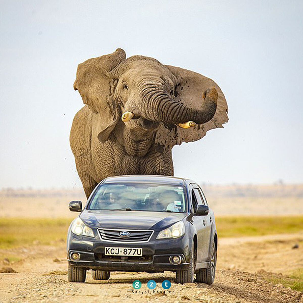 Kenya'da bir anne fil, toprak yolda hızla ilerleyen araçlar nedeniyle ürkünce, neredeyse başka bir arabayı eziyordu. "Nereye gittiklerini bilmiyorum ama aceleleri vardı ve parkın hız sınırını aşıyorlardı. Bunun filleri böyle tedirgin edeceğini düşünmemiştim. Sonra arabamın içinden fil sürüsünün annesinin başka bir arabaya yaklaştığını gördüm. O arabada diğer fotoğrafçılar vardı ve filin tehdidine maruz kaldılar. O anda denklanşöre basmaya karar verdim. Gözlerime inanamadım, fil otomobile göre çok büyüktü."