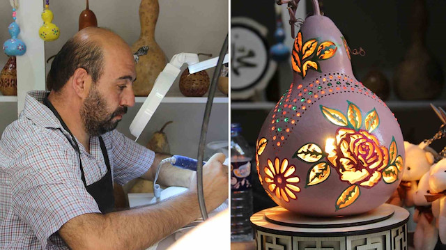 Aynı zamanda servis aracı şoförlüğü yaptığını belirten Deniz Midiliç, "7 yıl önce sosyal medyada gördüğüm yumurta kabuğu ve su kabağı oymacılığına merak saldım.