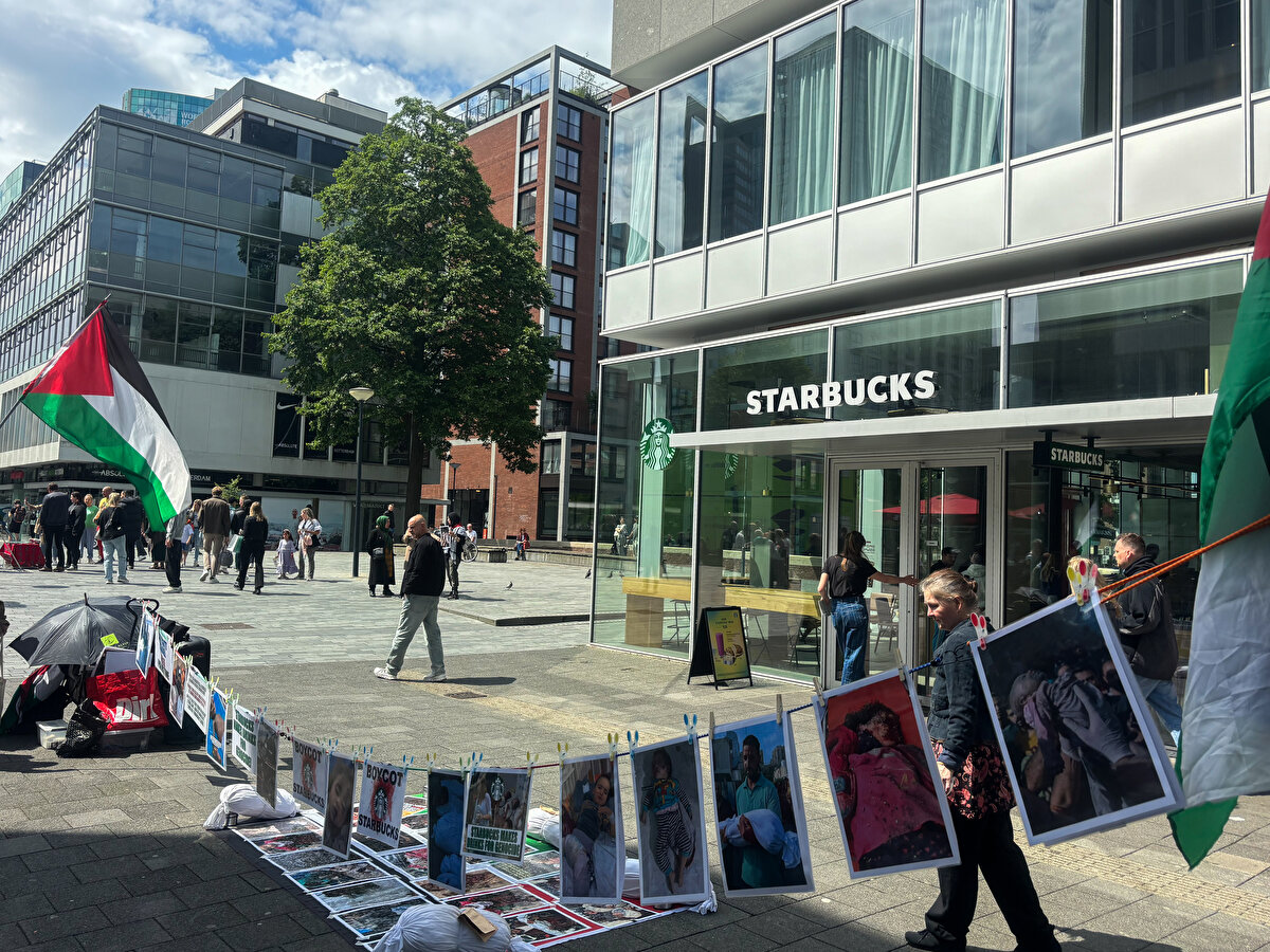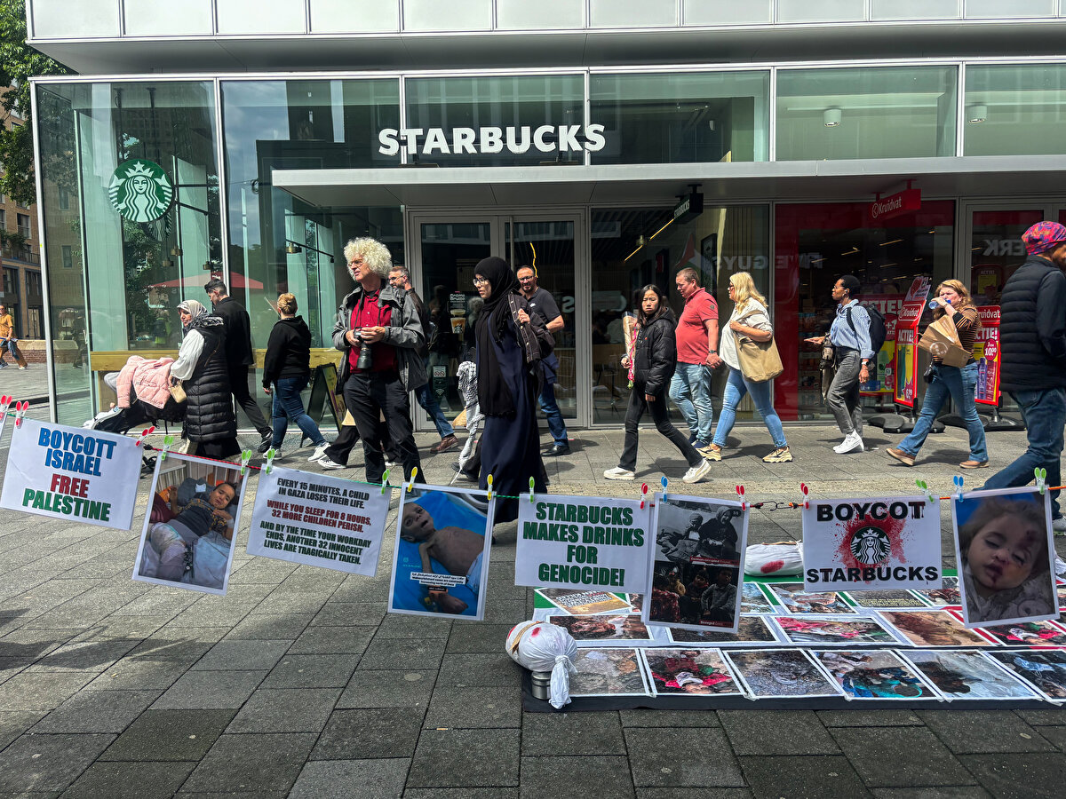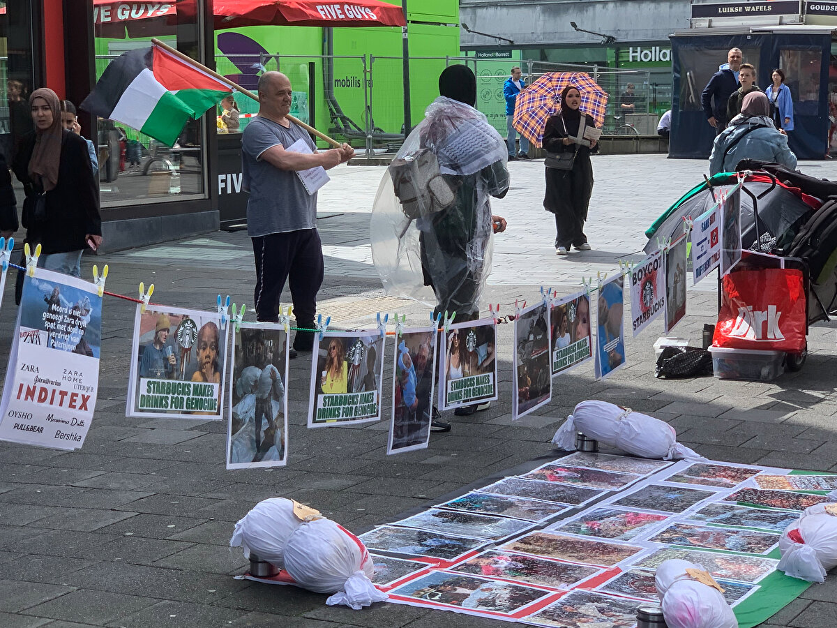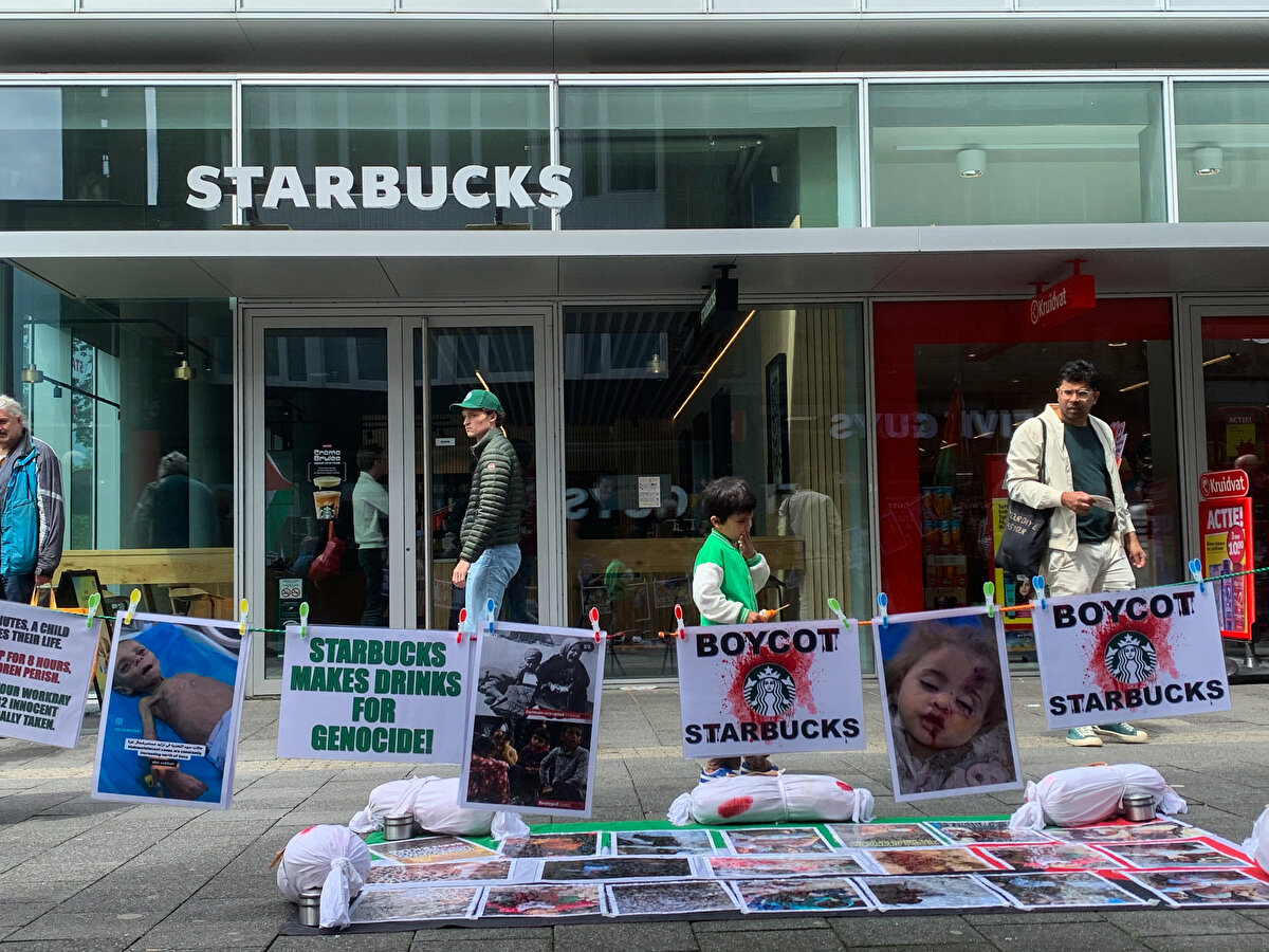 Hollanda'da, İsrail'in Gazze'ye saldırılarını protesto eden gruplar, kahve zinciri Starbucks'ın çeşitli kentlerdeki şubelerinin önünde gösteri yaptı.