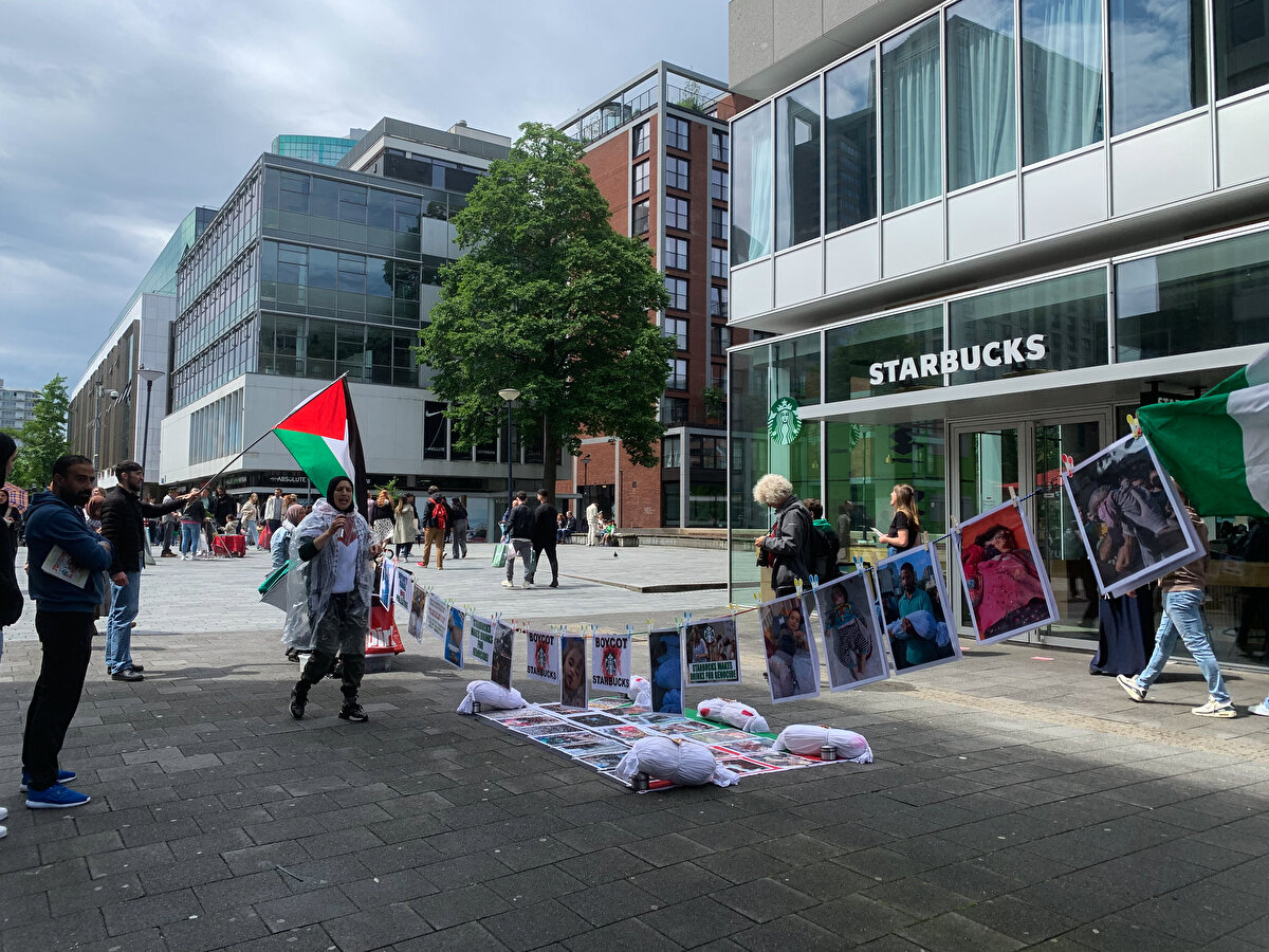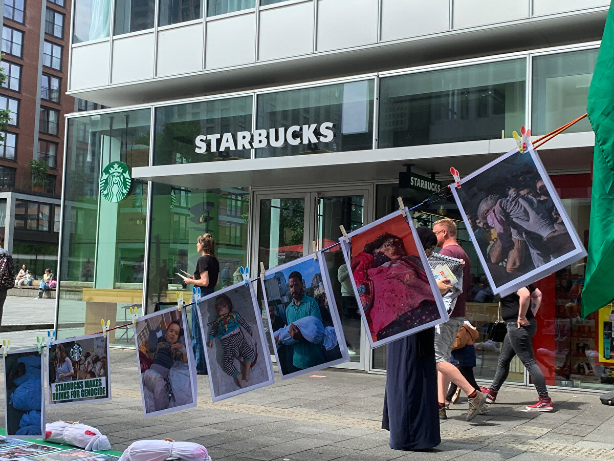 ​Hollanda'da Starbucks şubelerinin önünde İsrail protesto edildi