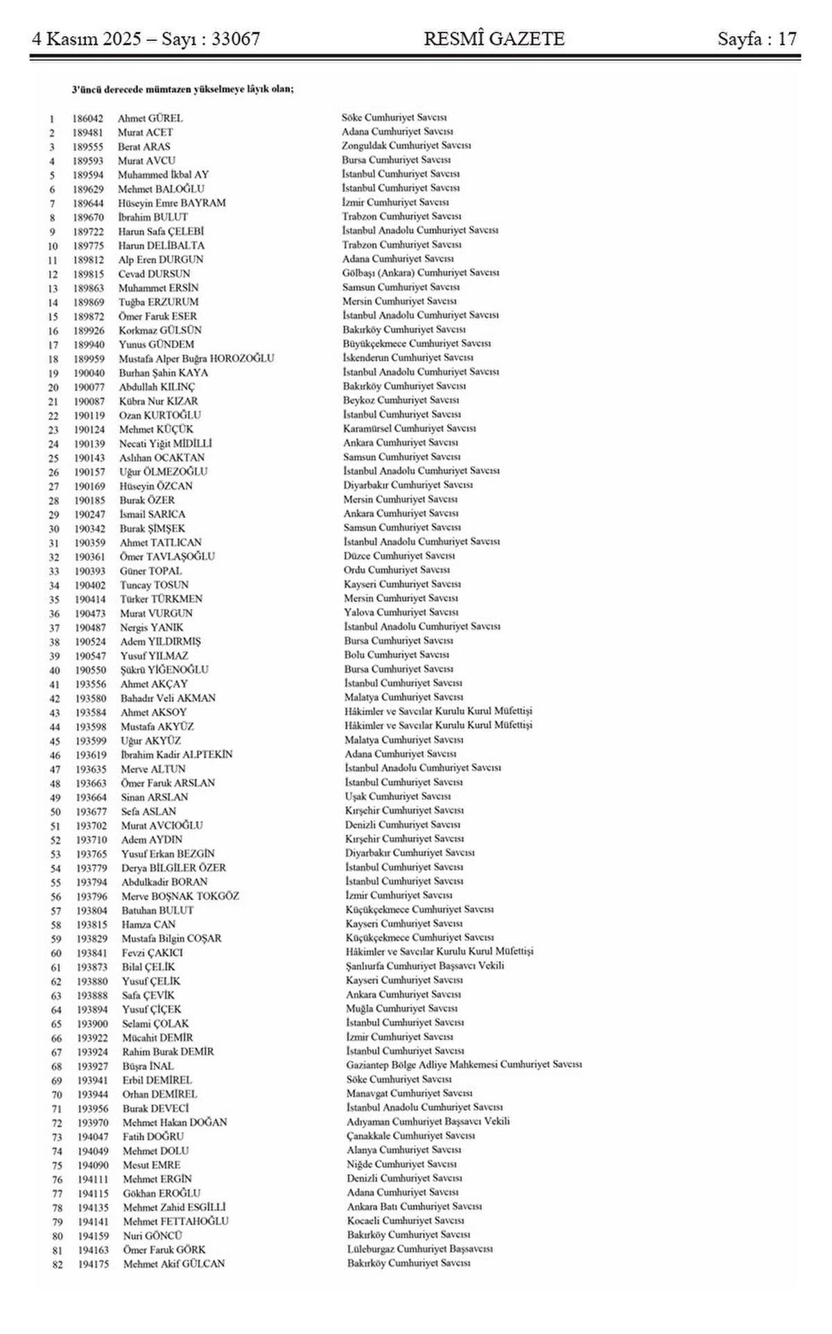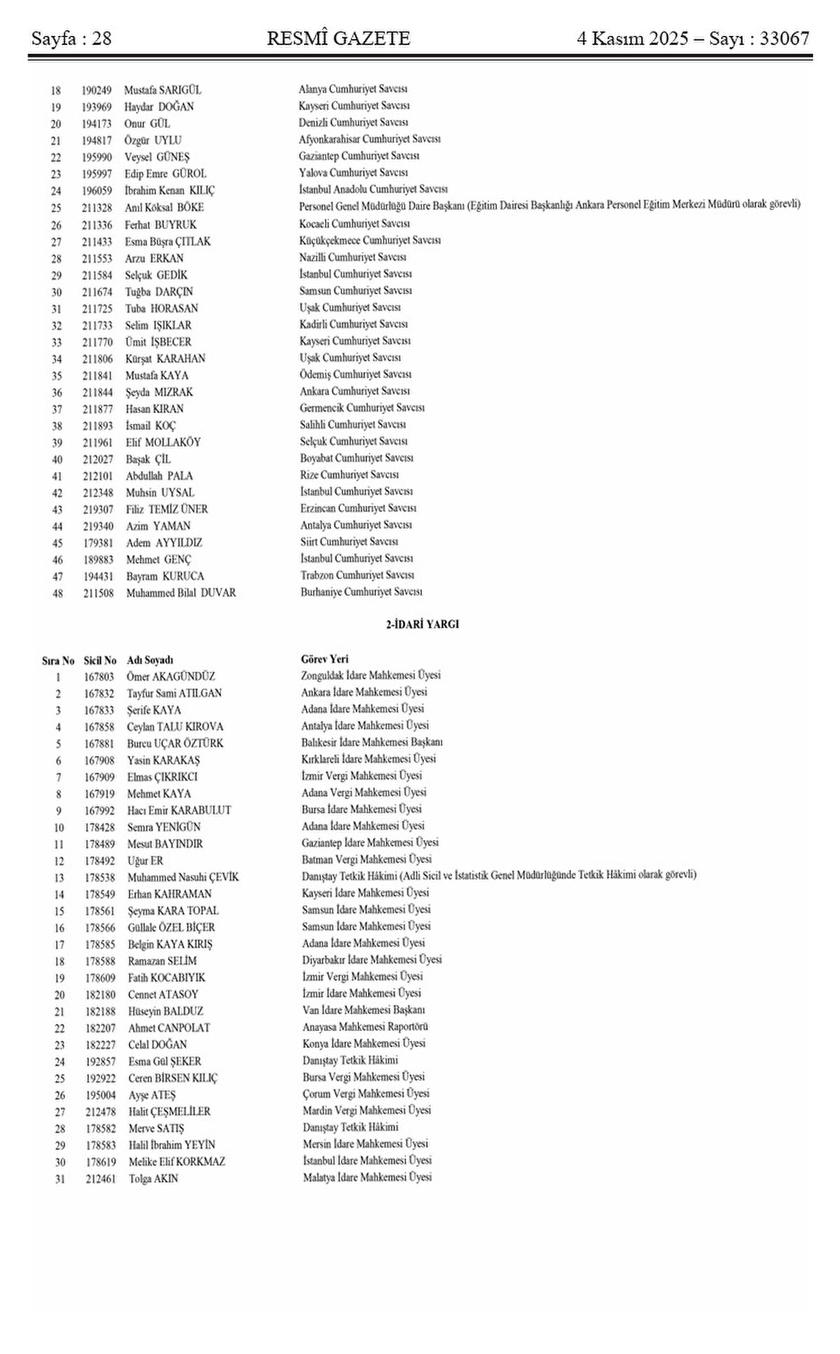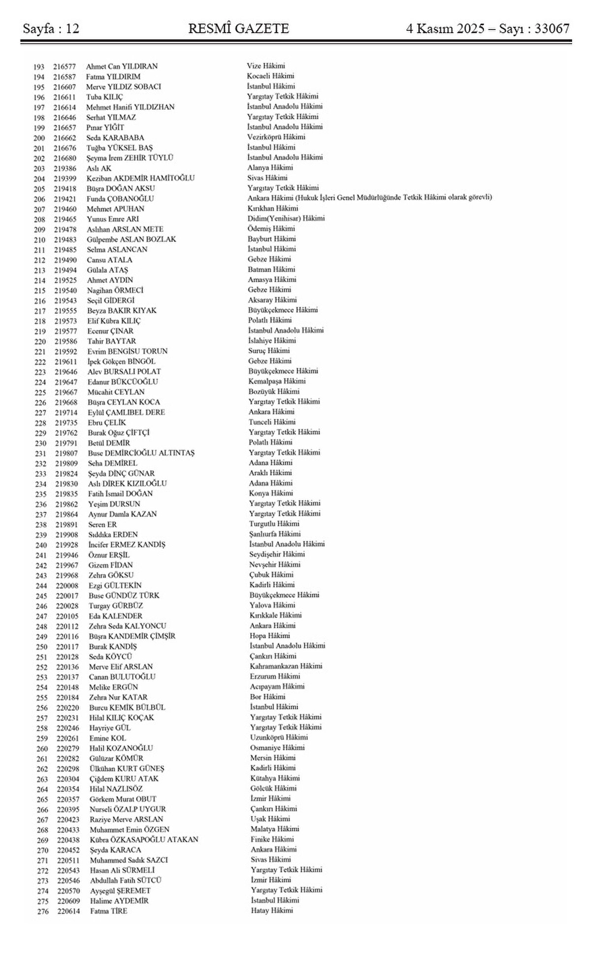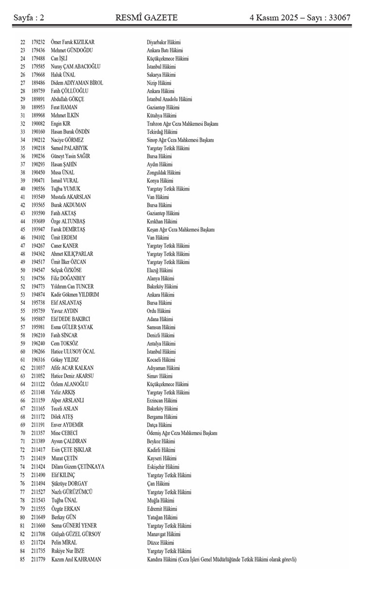 Hakimler ve Savcılar Kurulu'nun (HSK) 2025 Ağustos dönemi kararları Resmi Gazete'de yayımlandı. Karara göre, görev sürelerini tamamlayan 21 adli yargı hakimi, ikinci derecede mümtazen yükselmeye layık görüldü.