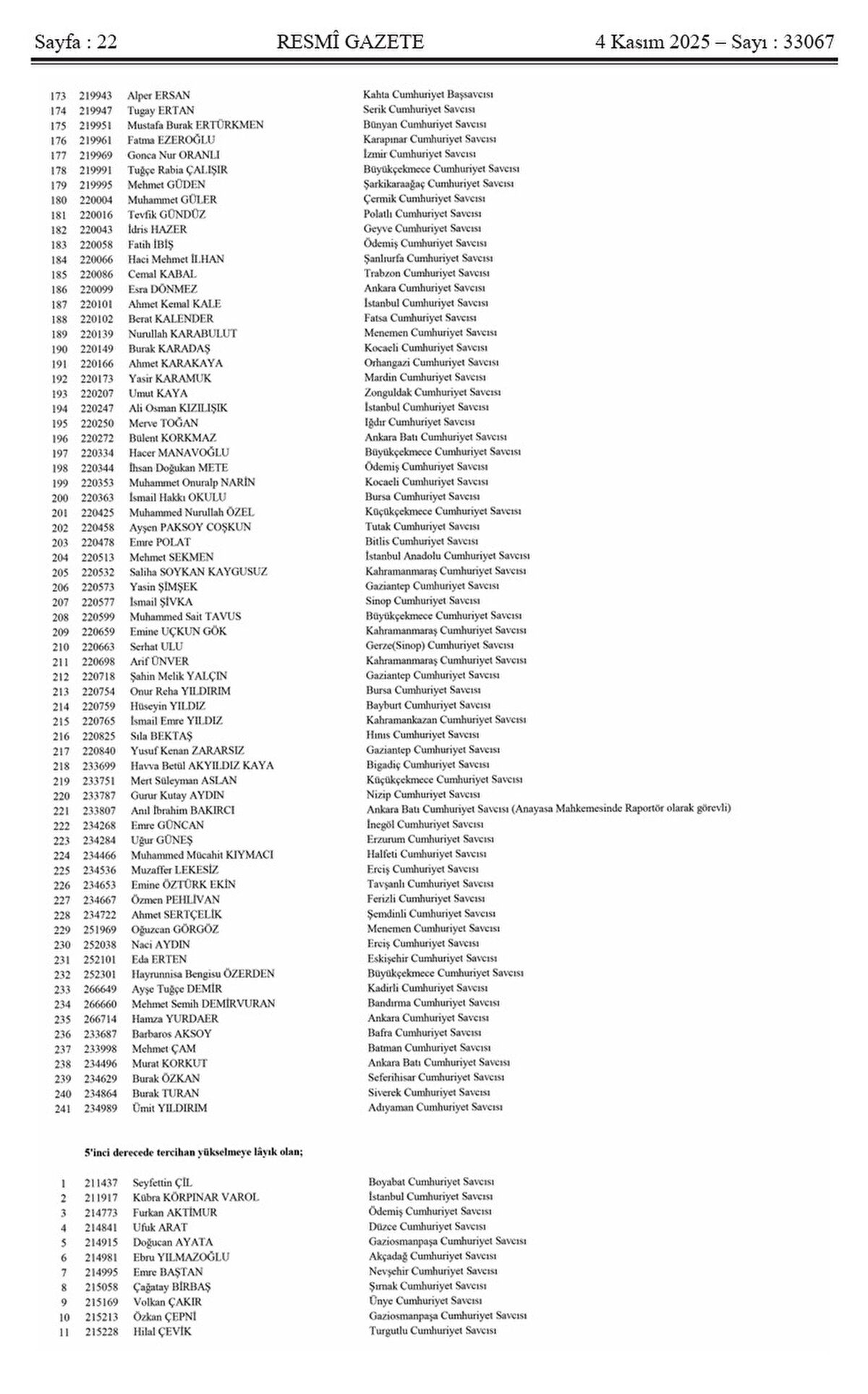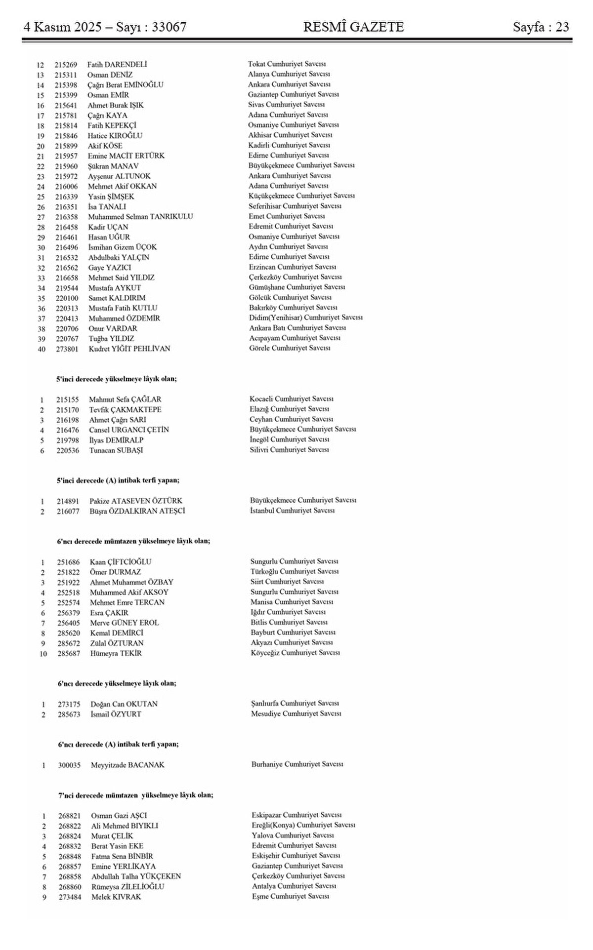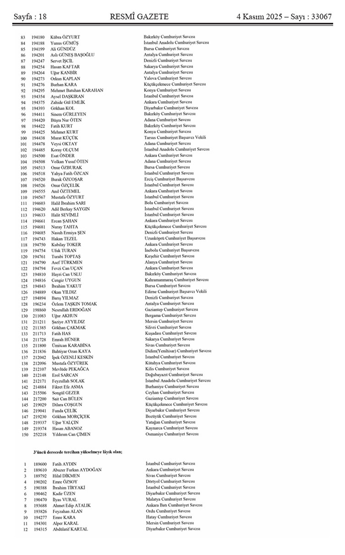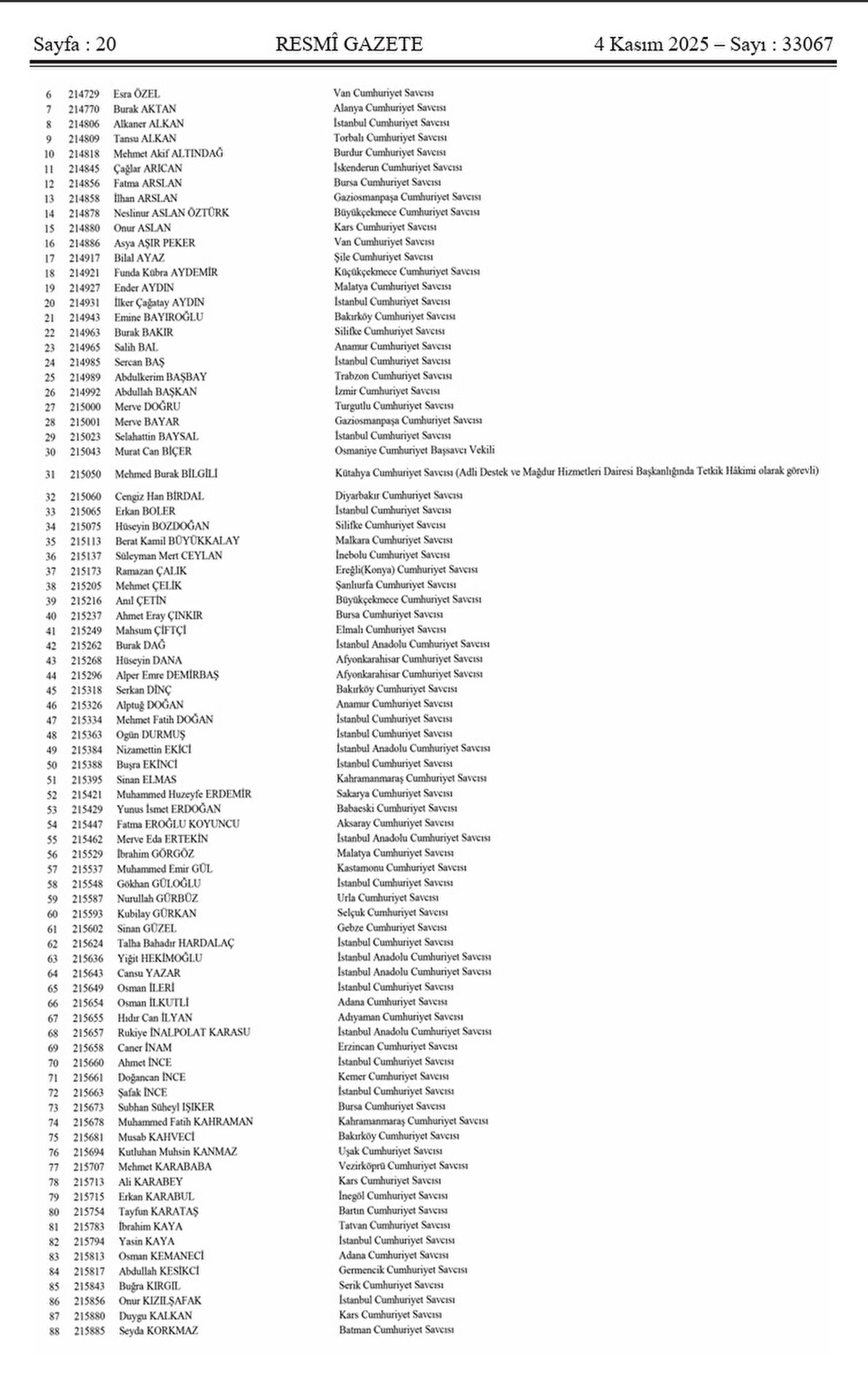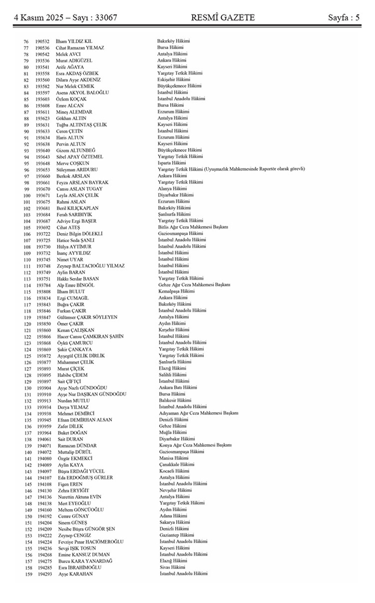 Hakimler ve Savcılar Kurulu'nun (HSK) 2025 Ağustos dönemi kararları Resmi Gazete'de yayımlandı. Karara göre, görev sürelerini tamamlayan 21 adli yargı hakimi, ikinci derecede mümtazen yükselmeye layık görüldü.