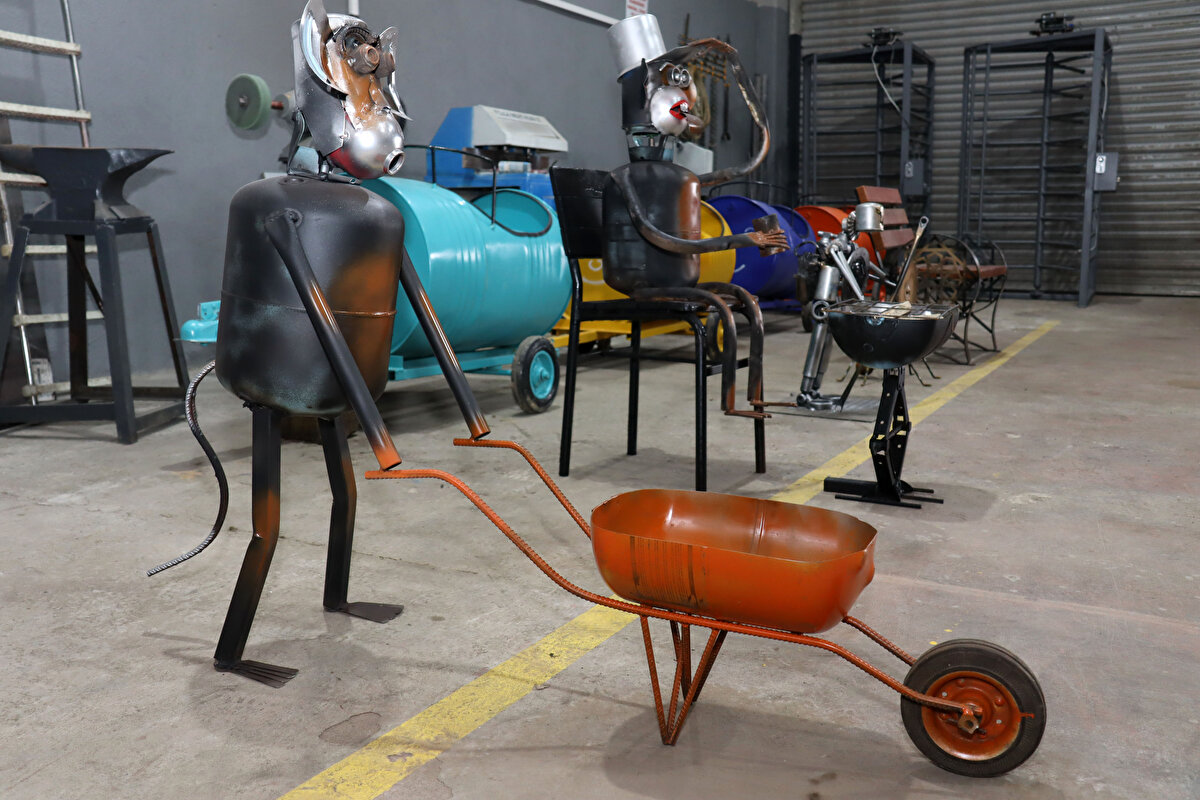 Daha sonra elimizdeki atık metallerin bolluğu beni oldukça cezbetti. Metal üzerine gördüğümüz, hoşumuza giden objelerden yapıyoruz. Görenler ilk başta bizim yaptığımıza inanmıyorlar ama yapım aşamalarını gördükten sonra baya olumlu tepkiler alıyoruz.