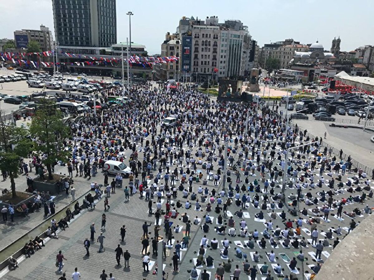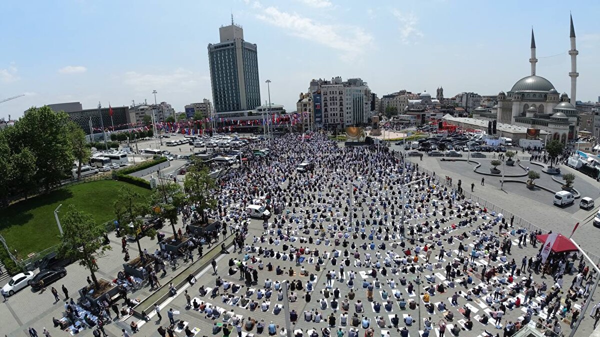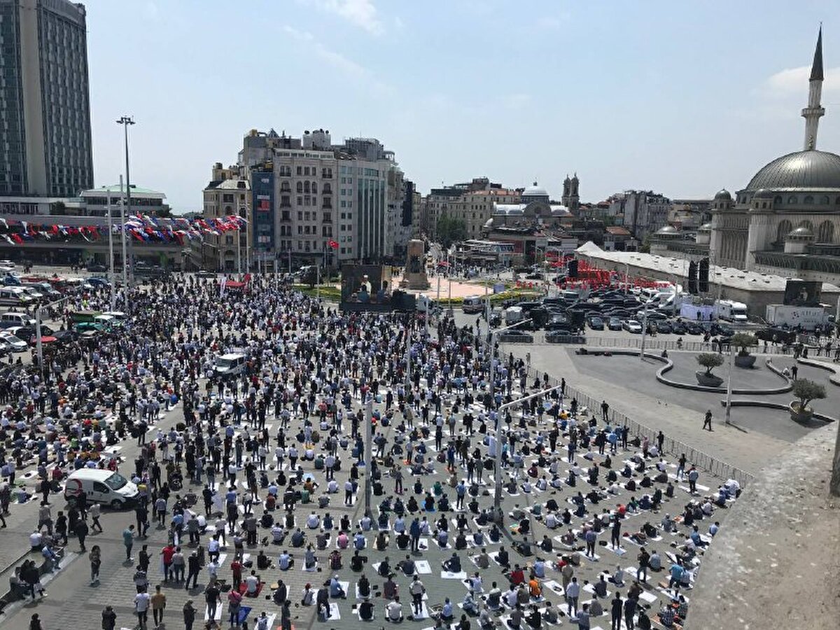 Cumhurbaşkanı Recep Tayyip Erdoğan, Cuma namazı ile birlikte açılışı yapılacak olan Taksim Camii’ne geldi. Taksim Camii'nde ilk ezan okundu. Taksim Meydan'ını namaz kılmak isteyen vatandaşlar doldurdu.