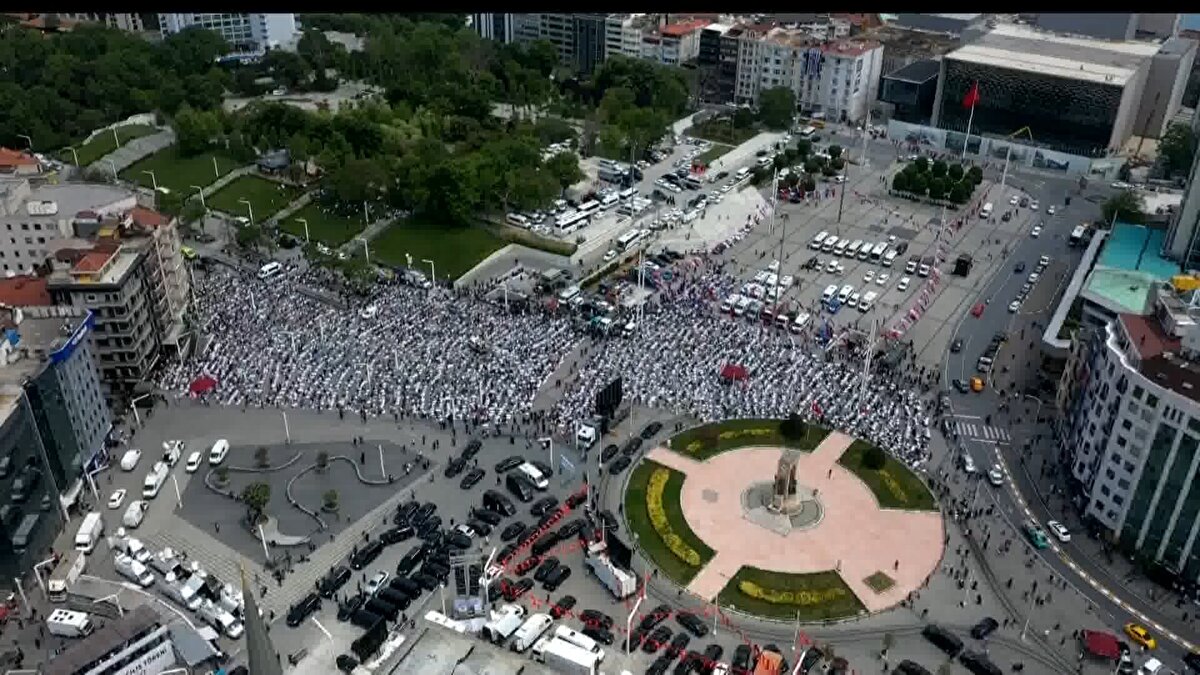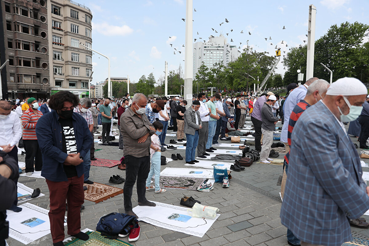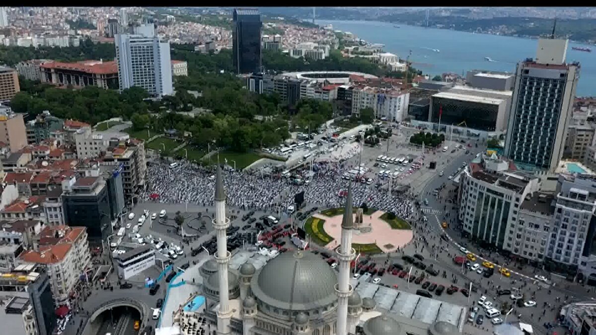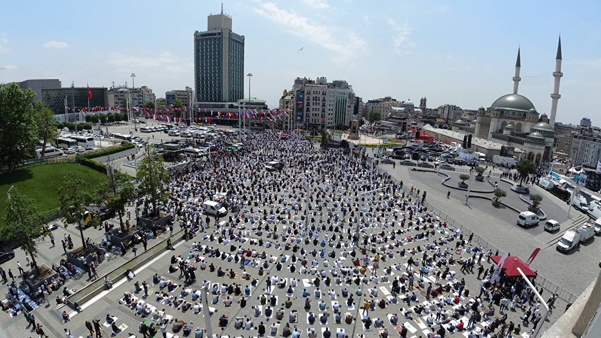 Cumhurbaşkanı Recep Tayyip Erdoğan, Cuma namazı ile birlikte açılışı yapılacak olan Taksim Camii’ne geldi. Taksim Camii'nde ilk ezan okundu. Taksim Meydan'ını namaz kılmak isteyen vatandaşlar doldurdu.