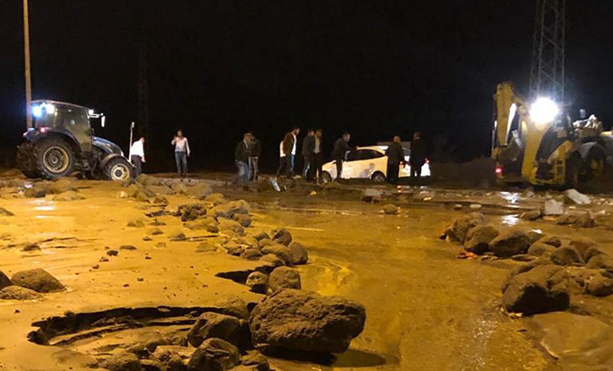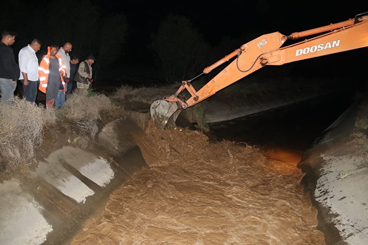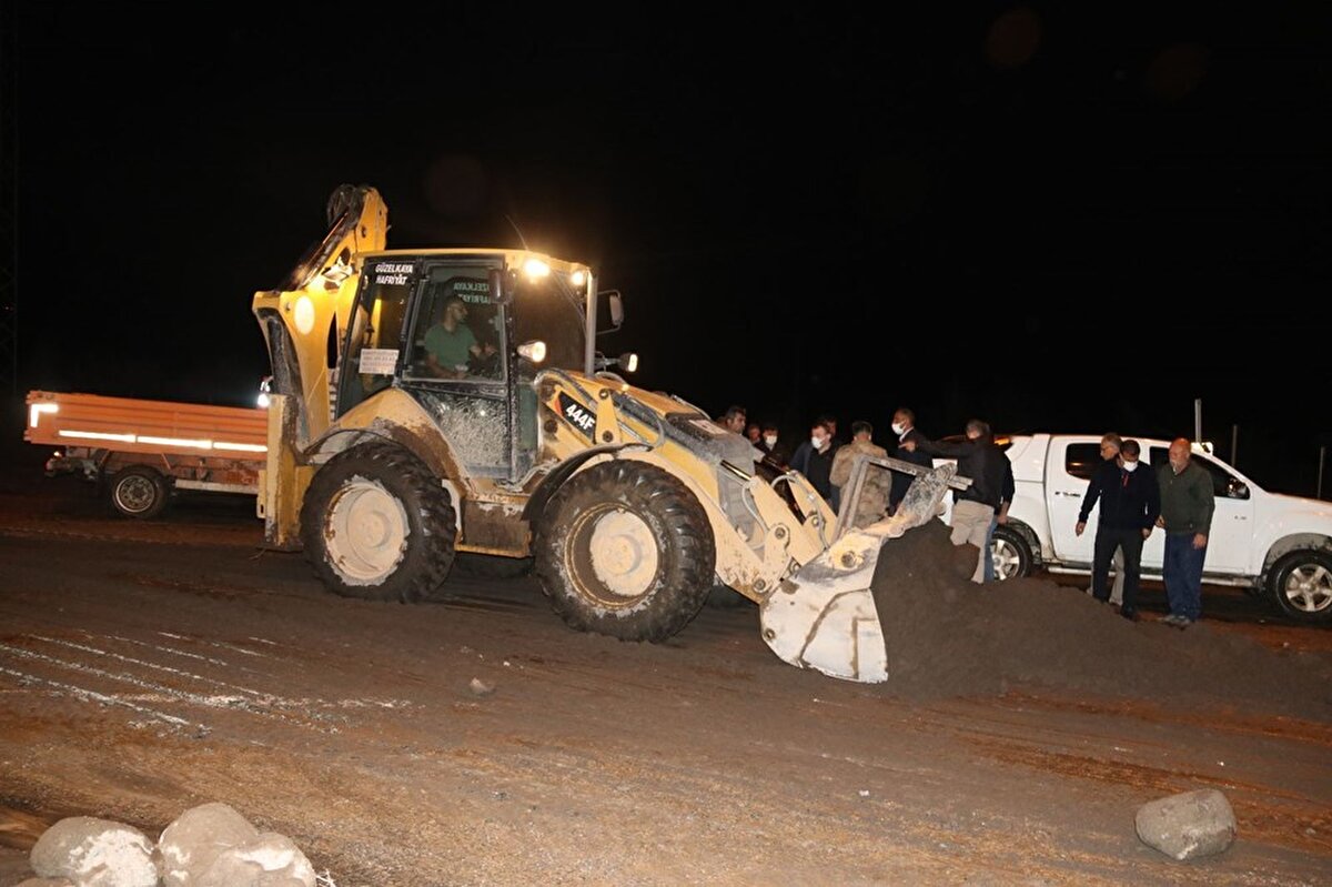 Yolun açılması için ekipler seferber oldu. Menfezler ve sulama kanalları çamurla doldu, bölgedeki tarım arazileri su altında kaldı.