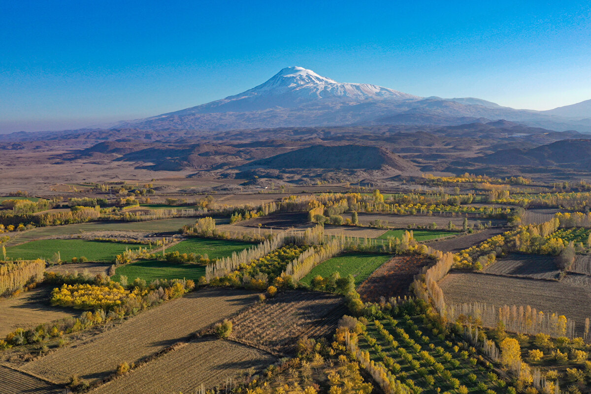 Yurdun en kurak alanlarından olan Ağrı Dağı eteklerindeki arazilerde yer alan bahçelerin bulunduğu alan bir vahayı andırıyor.