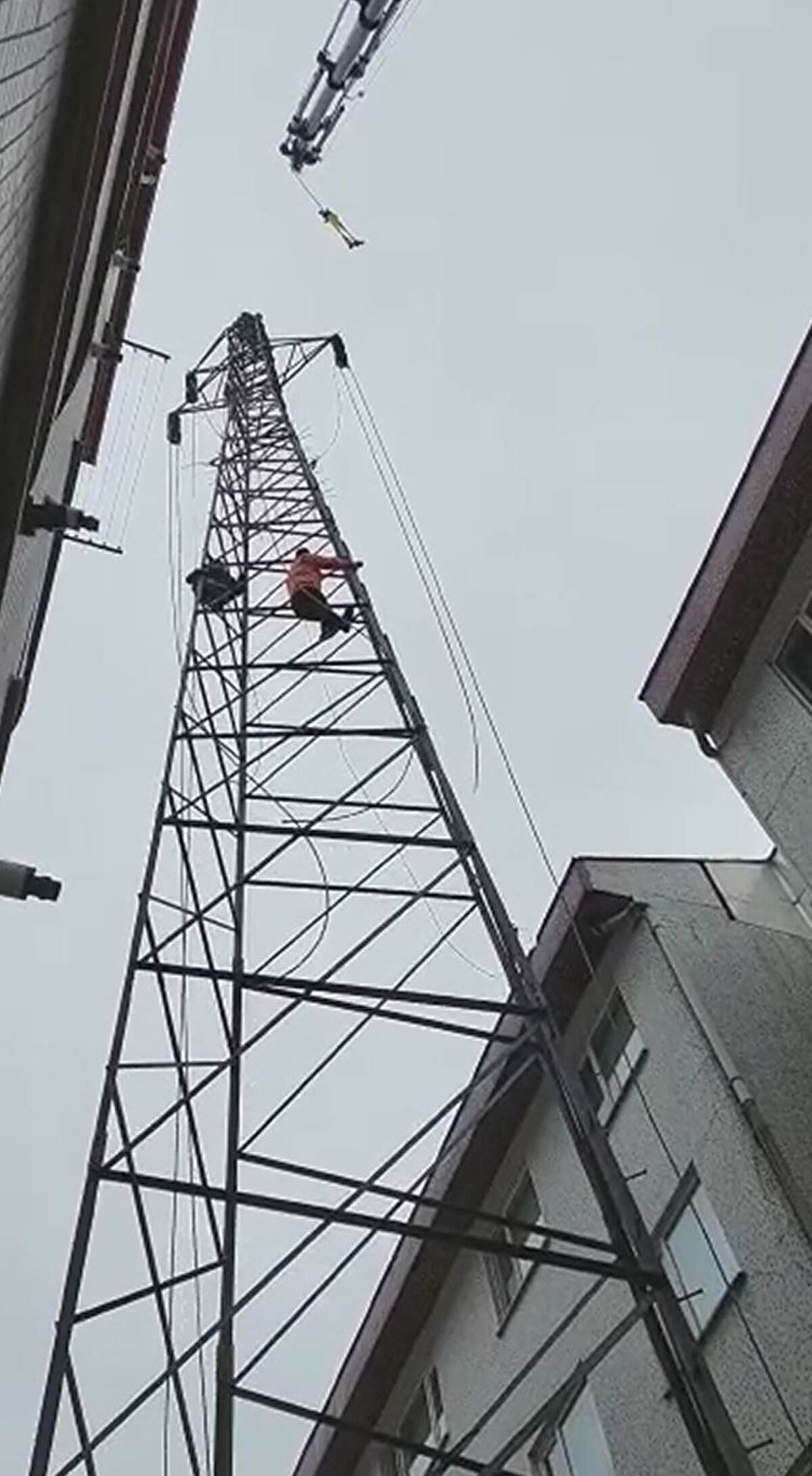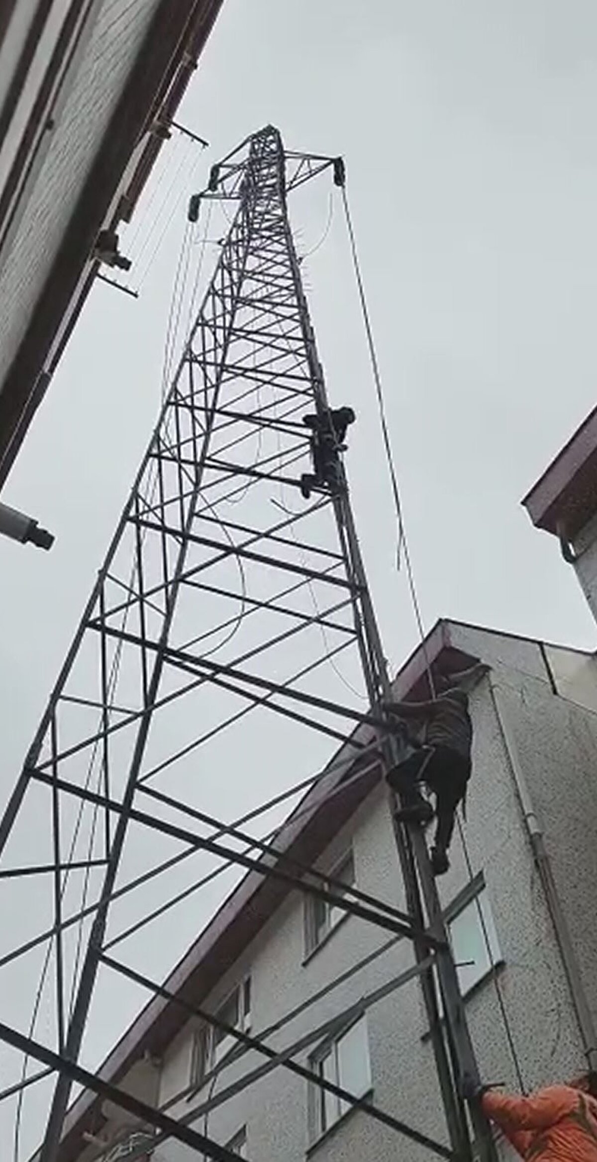 İki bina arasındaki 40 metrelik elektrik direği görenleri hayrete düşürdü