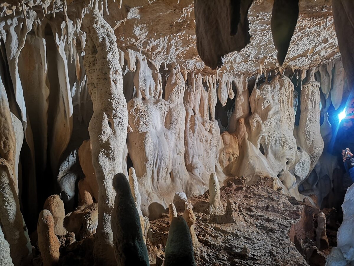 Kent merkezine 20 kilometre uzaklıktaki 3 bin 650 rakımlı Sümbül Dağı'nın yamacında bulunan, 2 galeriden oluşan mağara, görüntüsüyle de ilgi çekiyor.
