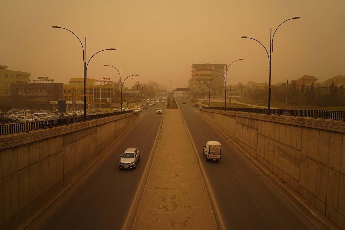 Irak'ın birçok kentinde kum fırtınası oldu. Görüş mesafesi yer yer birkaç adıma düştü. Kerkük'te 90 kişi boğulma tehlikesi geçirdi.