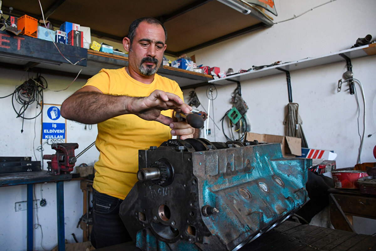 Çocukluk yıllarında, babasından klasik otomobil tamir işini öğrenen 37 yaşındaki Murat Yapru, hobi ve tutku olarak başladığı bu arabaların restorasyon işini son 10 yıldır profesyonel şekilde devam ettiriyor.