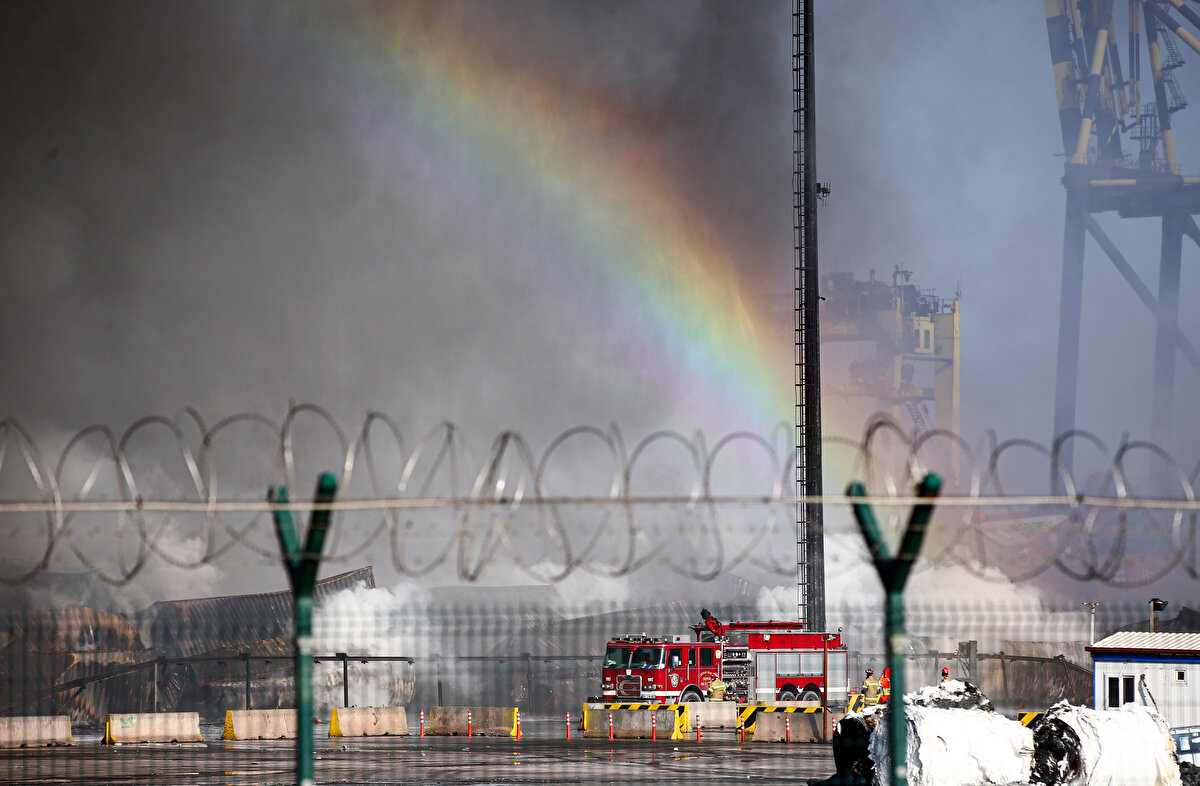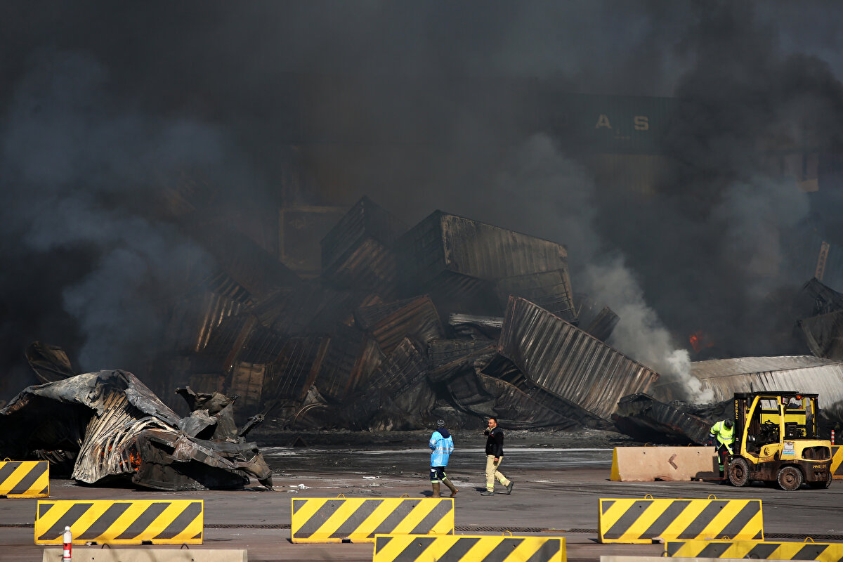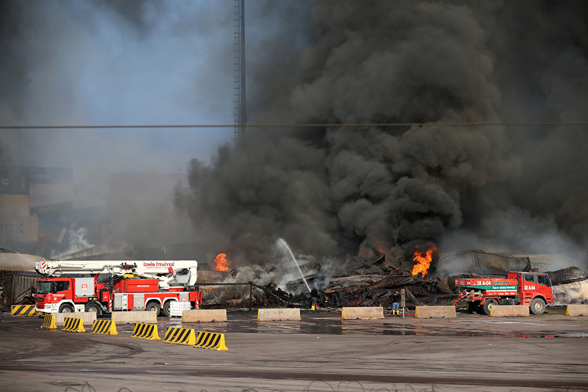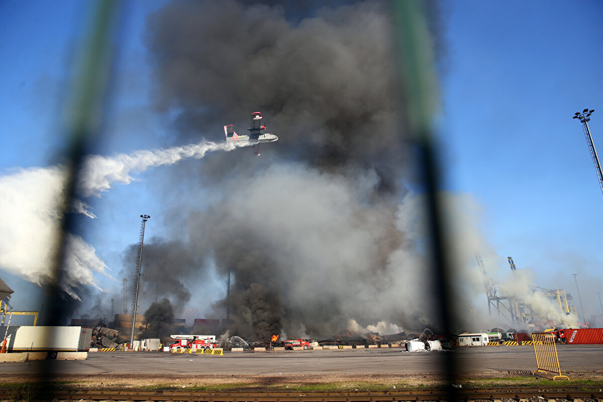 İskenderun Limanı sahasında, 6 Şubat'ta 7,7 ve 7,6 büyüklüğündeki depremler sonrasında konteynerlerde çıkan yangın karadan, havadan ve denizden müdahaleyle kontrol altına alındı.