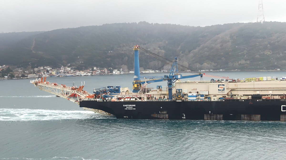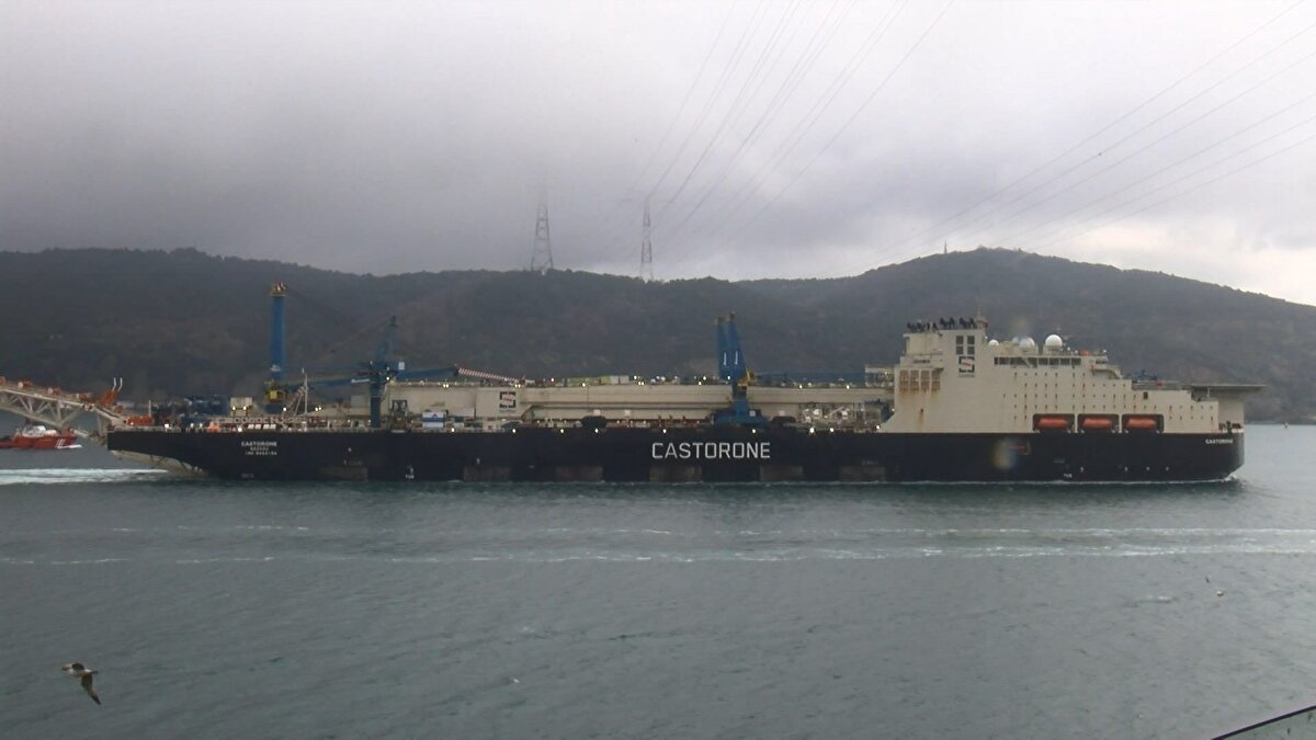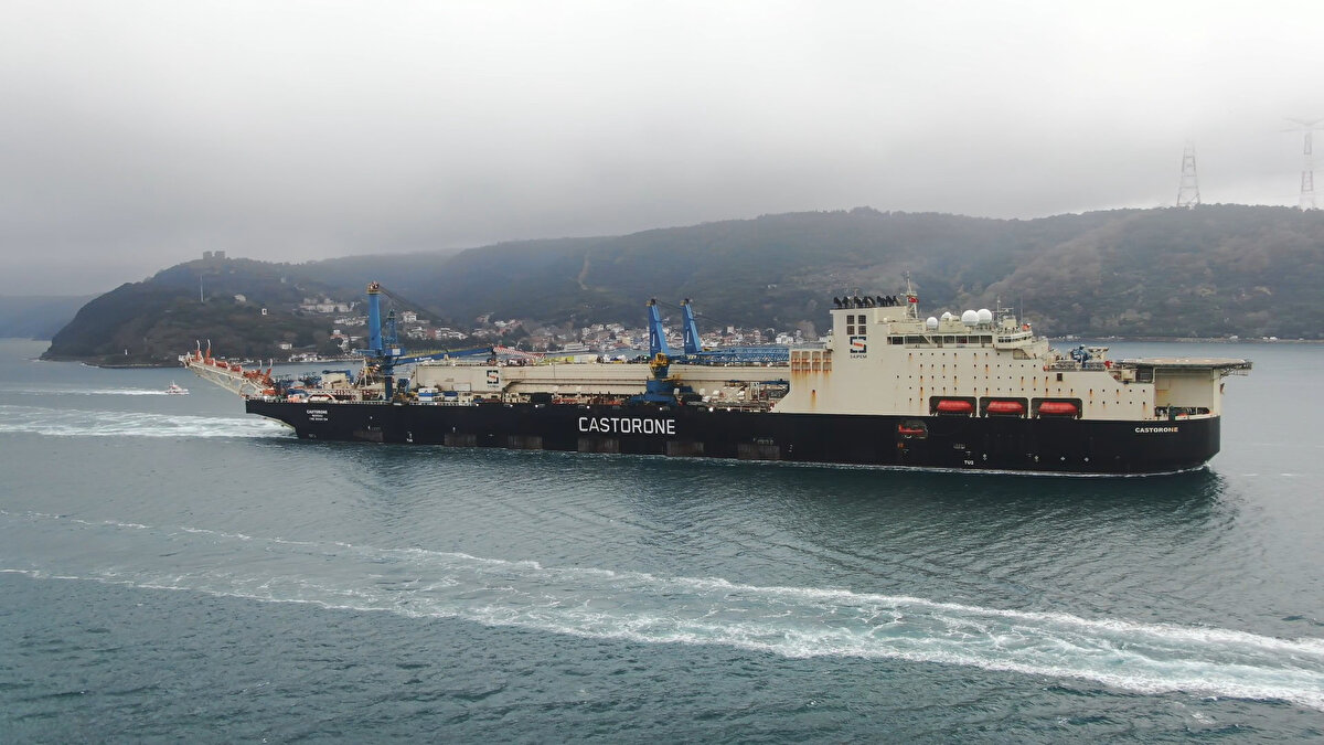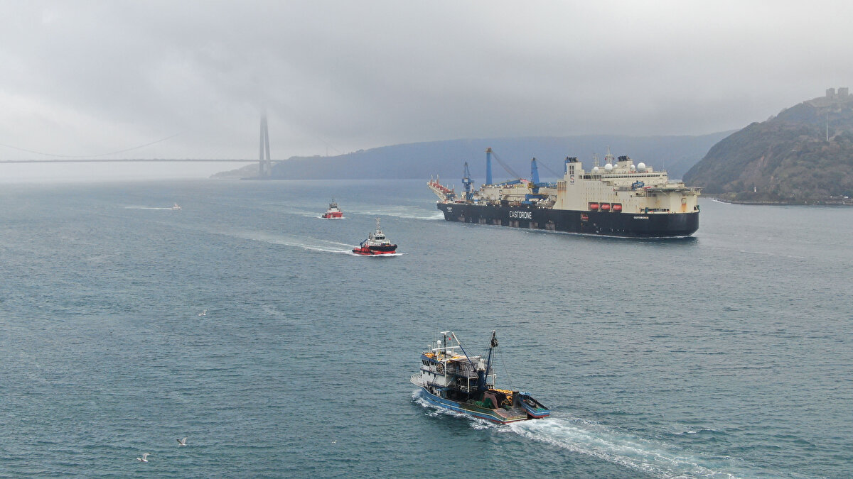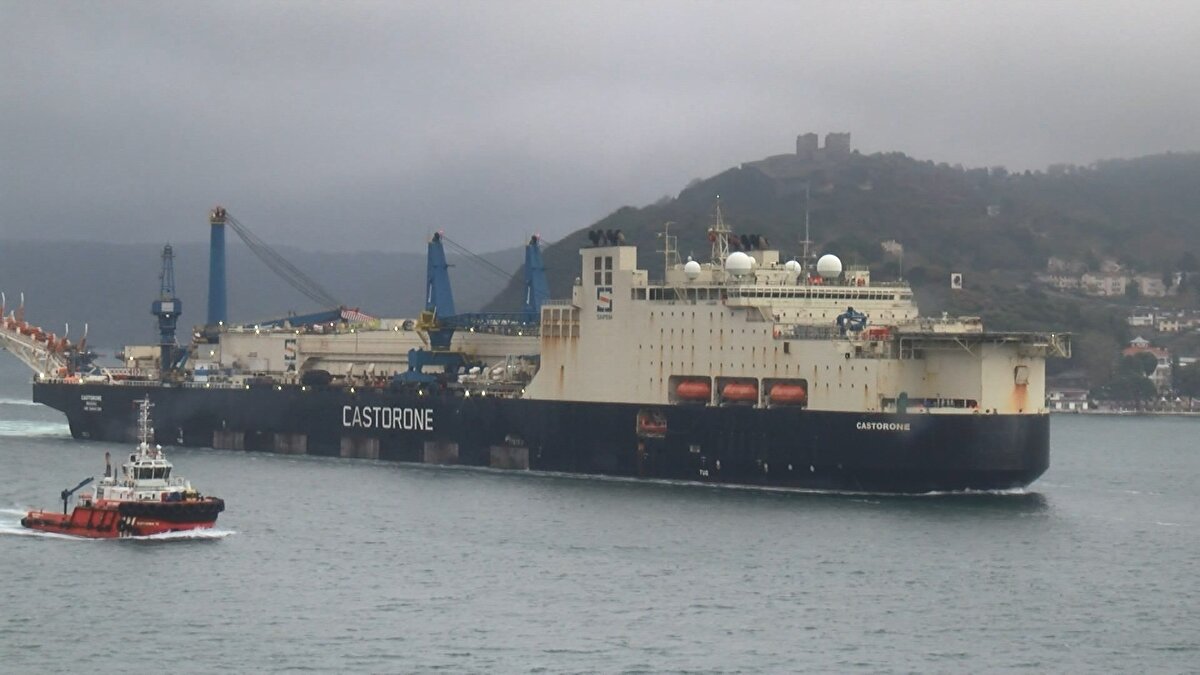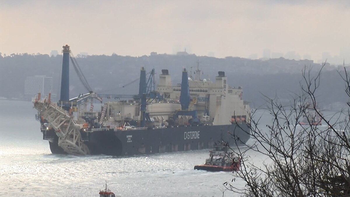 Karadeniz'de bulunan gazın taşınması için derin sularda doğalgaz boru serim işlemini tamamlayan dev gemi geniş güvenlik önlemleri altında İstanbul Boğazı'ndan geçiyor. Gemi geçişini tamamlayana kadar İstanbul Boğazı diğer gemilerin geçişine kapatıldı.