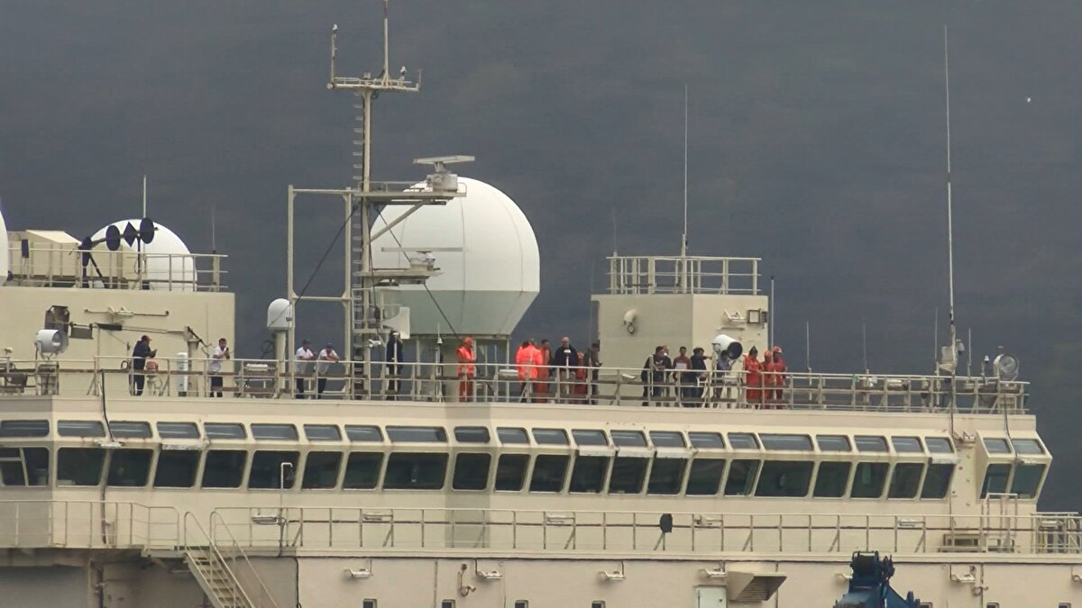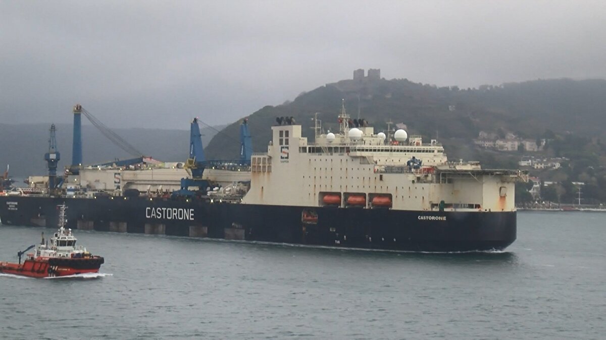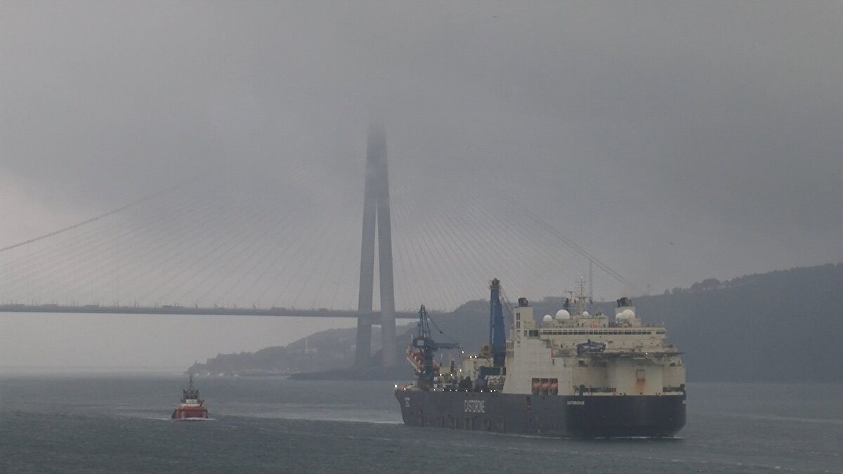 Karadeniz'de doğalgaz bulunan sahada boru serim işlemlerini tamamlayan dev gemi bugün saat 13.30 sıralarından Karadeniz'den İstanbul Boğazı'na girdi.