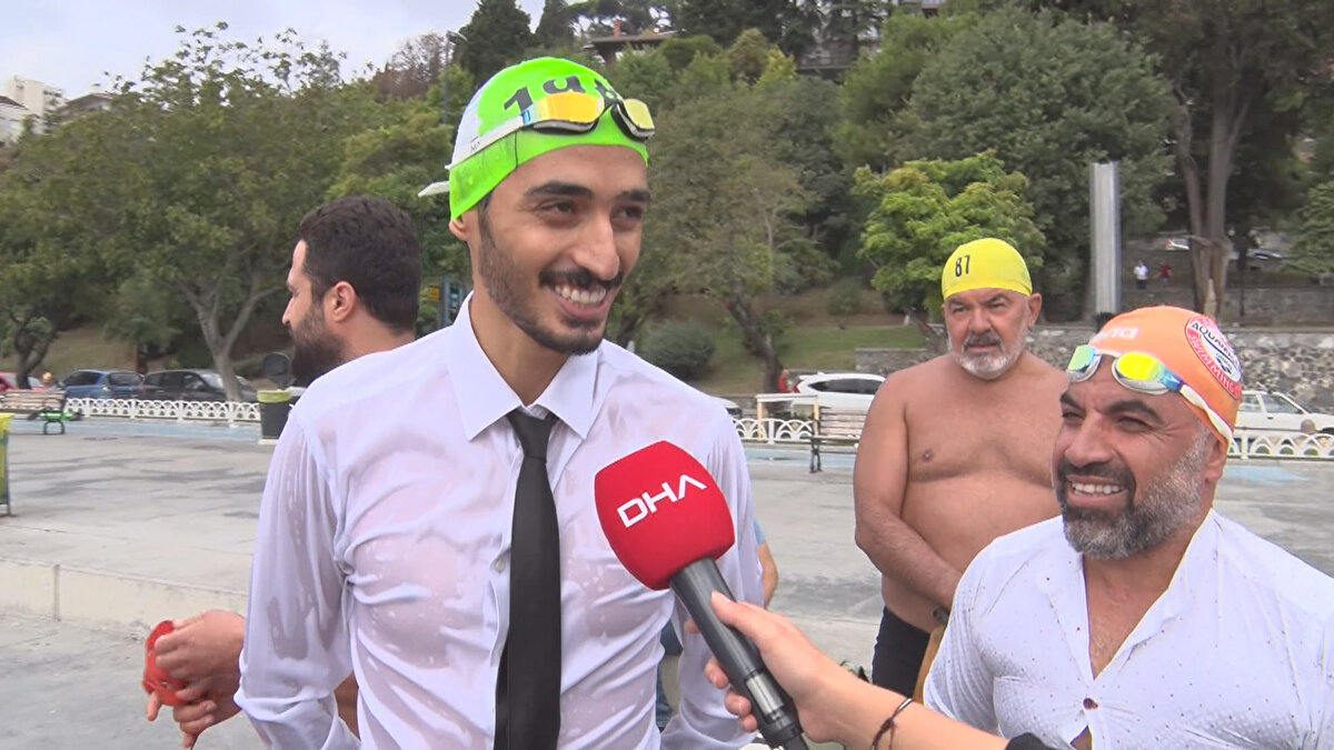 İstanbul Boğazı'na saygılarını takım elbiseyle yüzerek gösterdiler