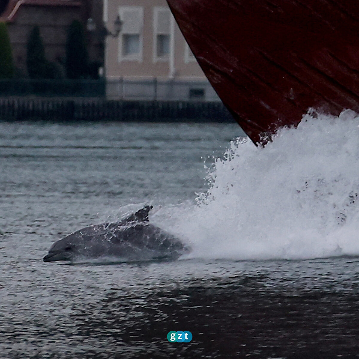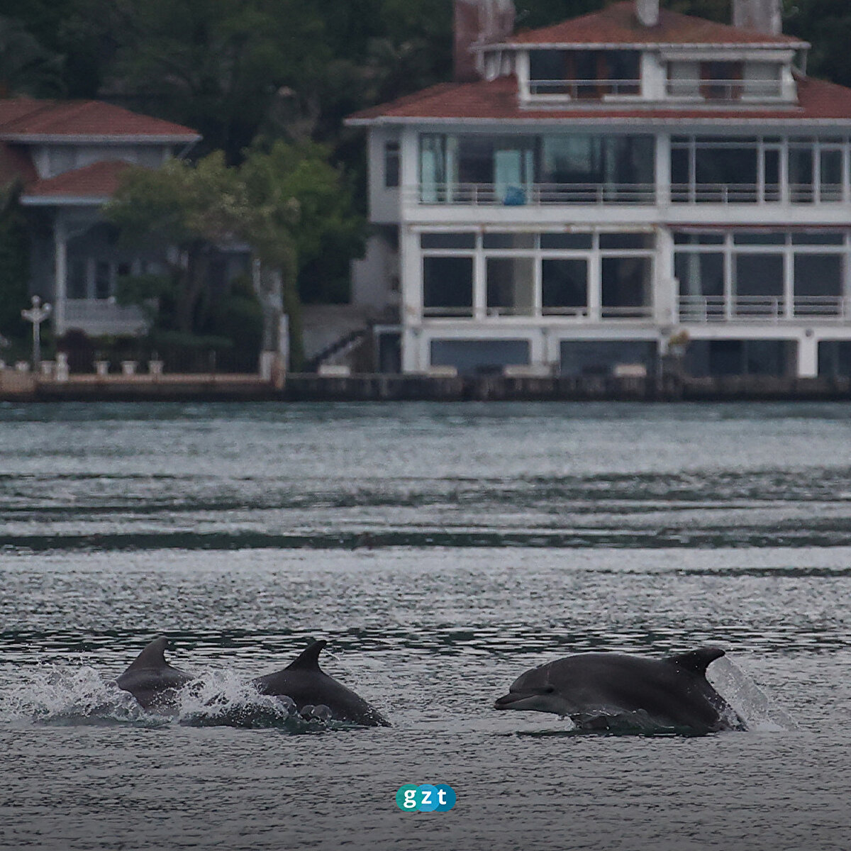 İstanbul Boğazı'nın müdavimleri yunuslar, seyir halindeki gemilere eşli ederken hoş görüntüler oluşturdu.