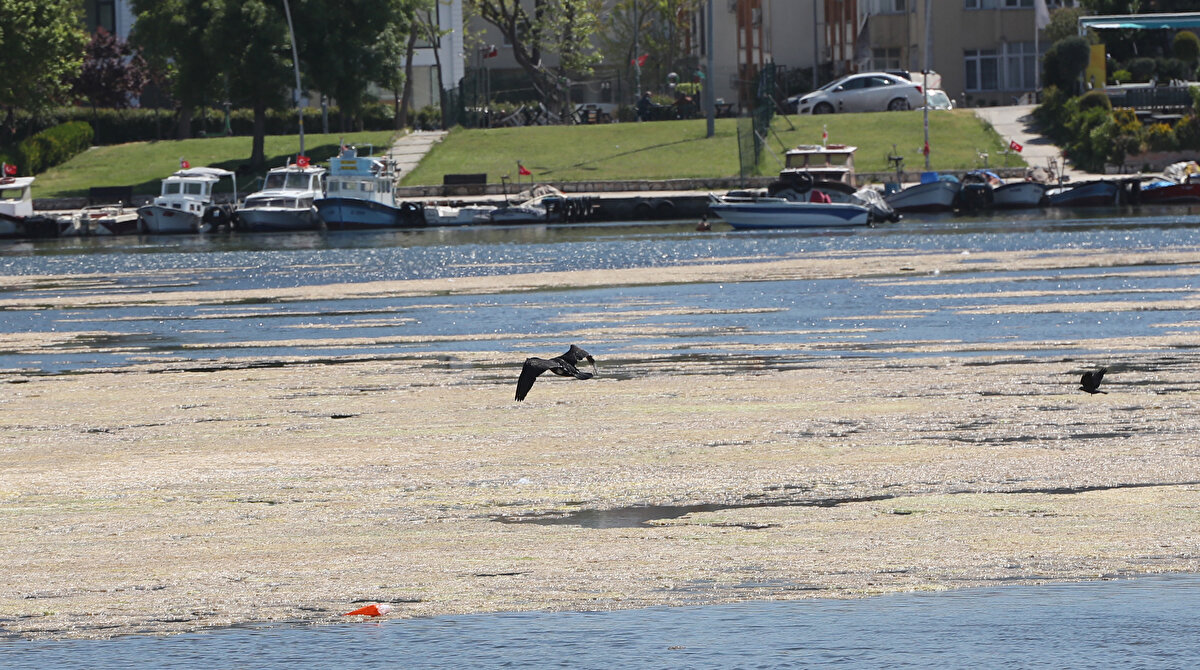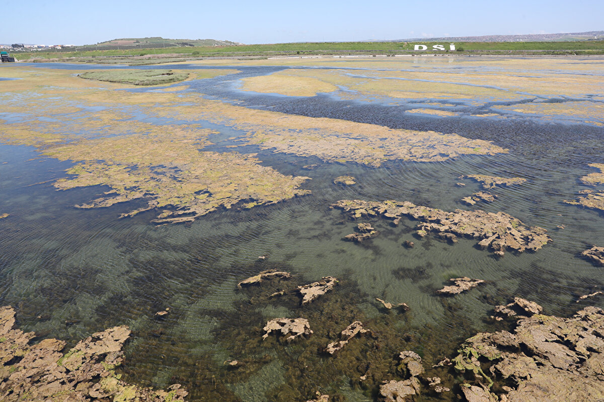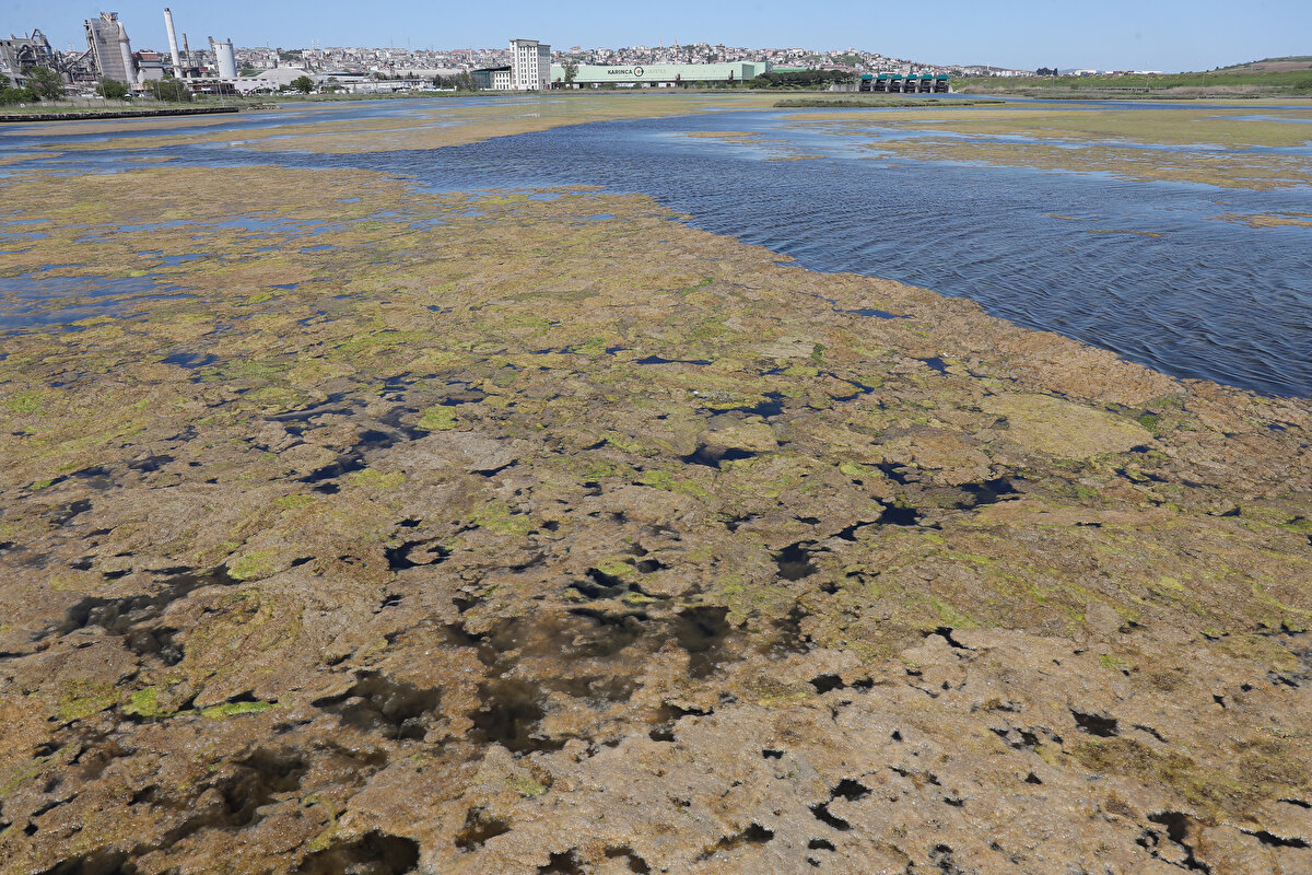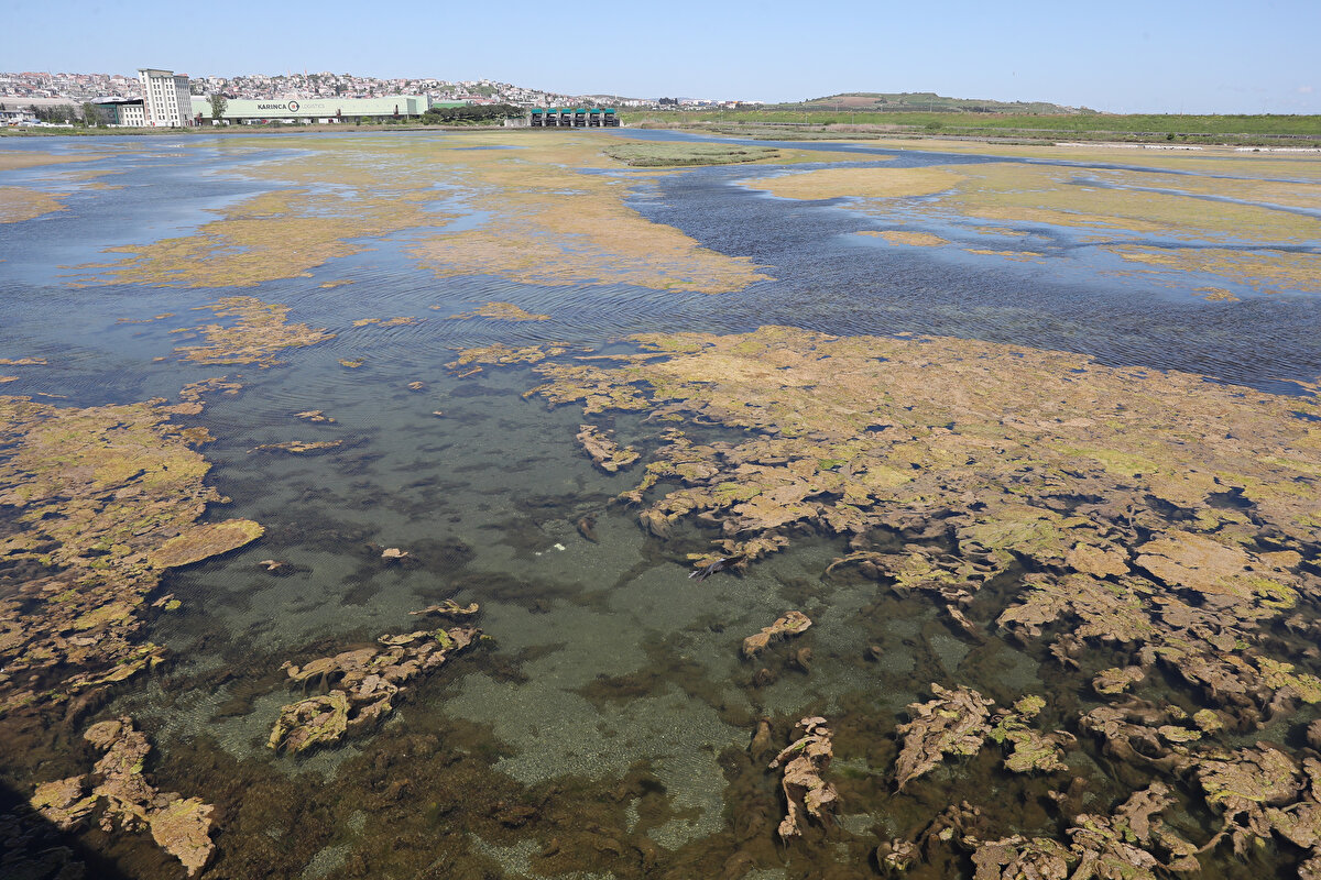 İstanbul Büyükçekmece Gölü yosunla kaplandı