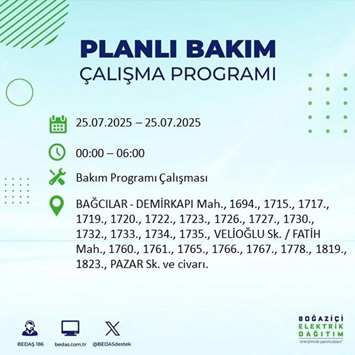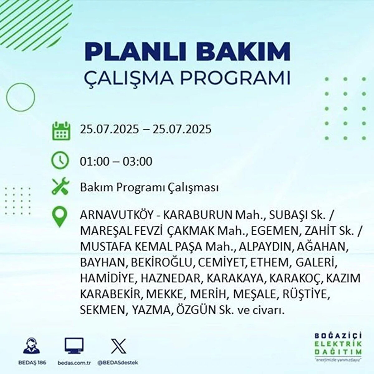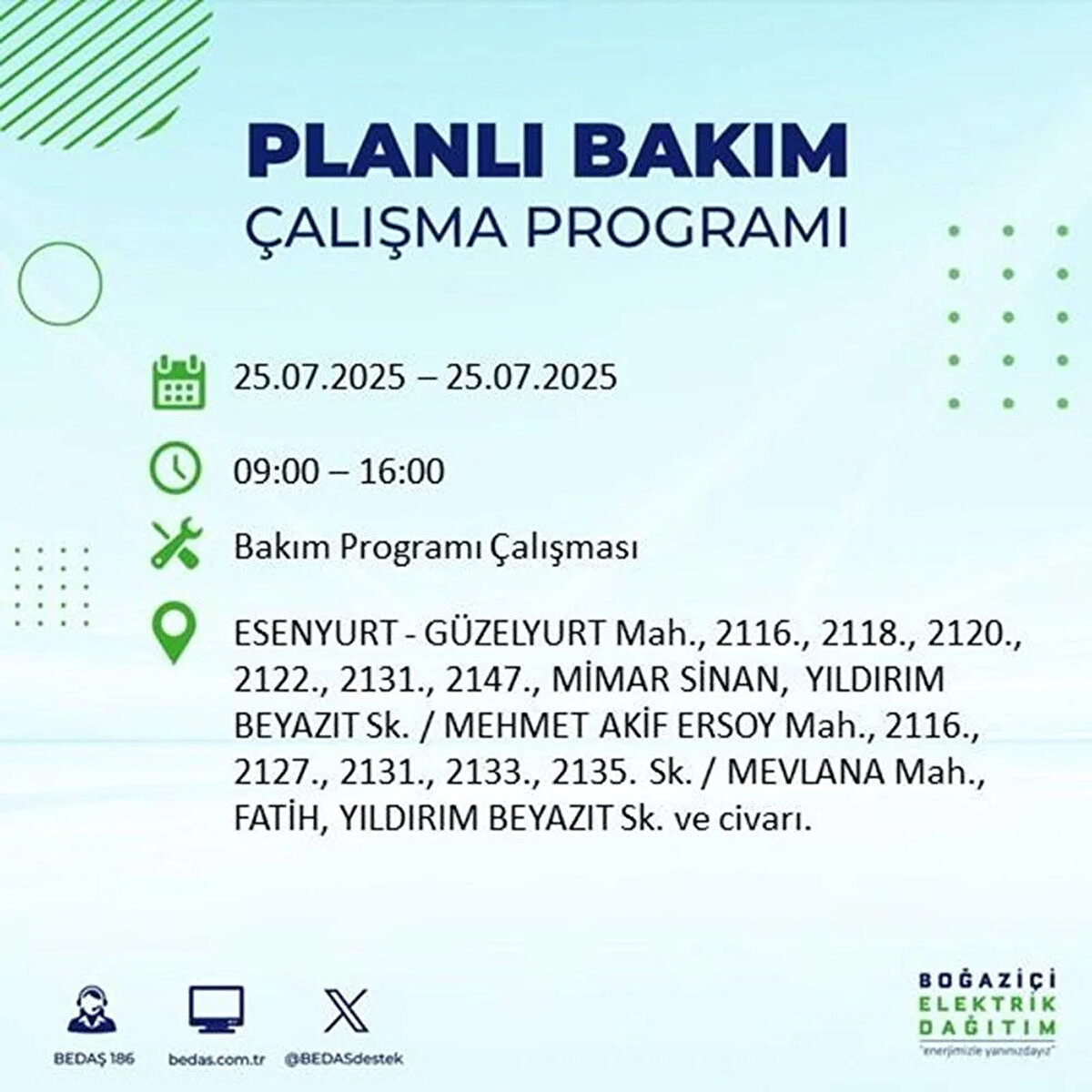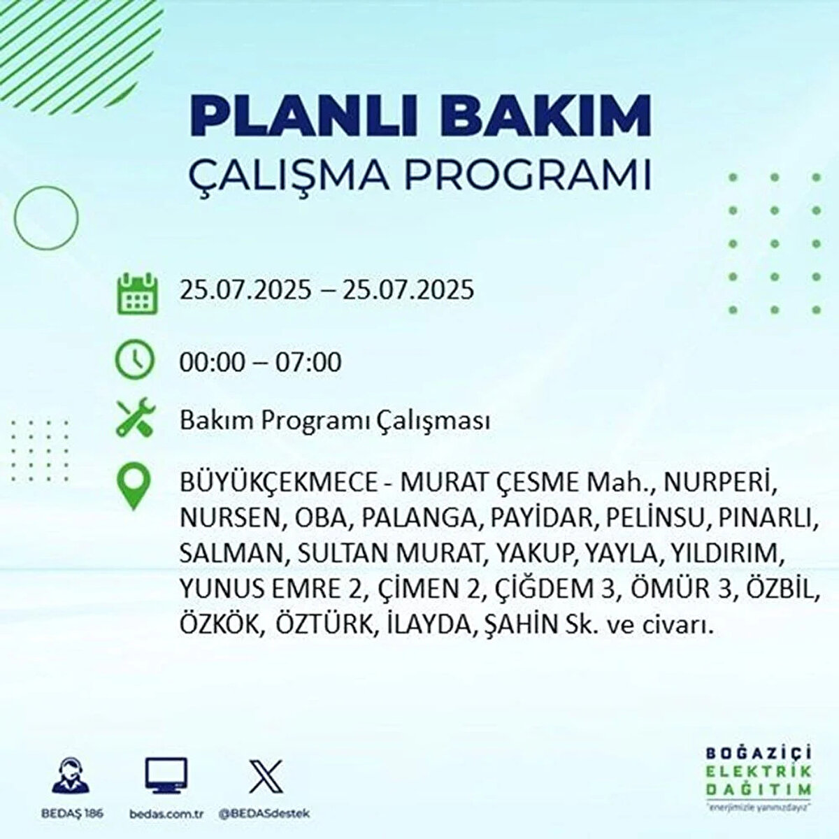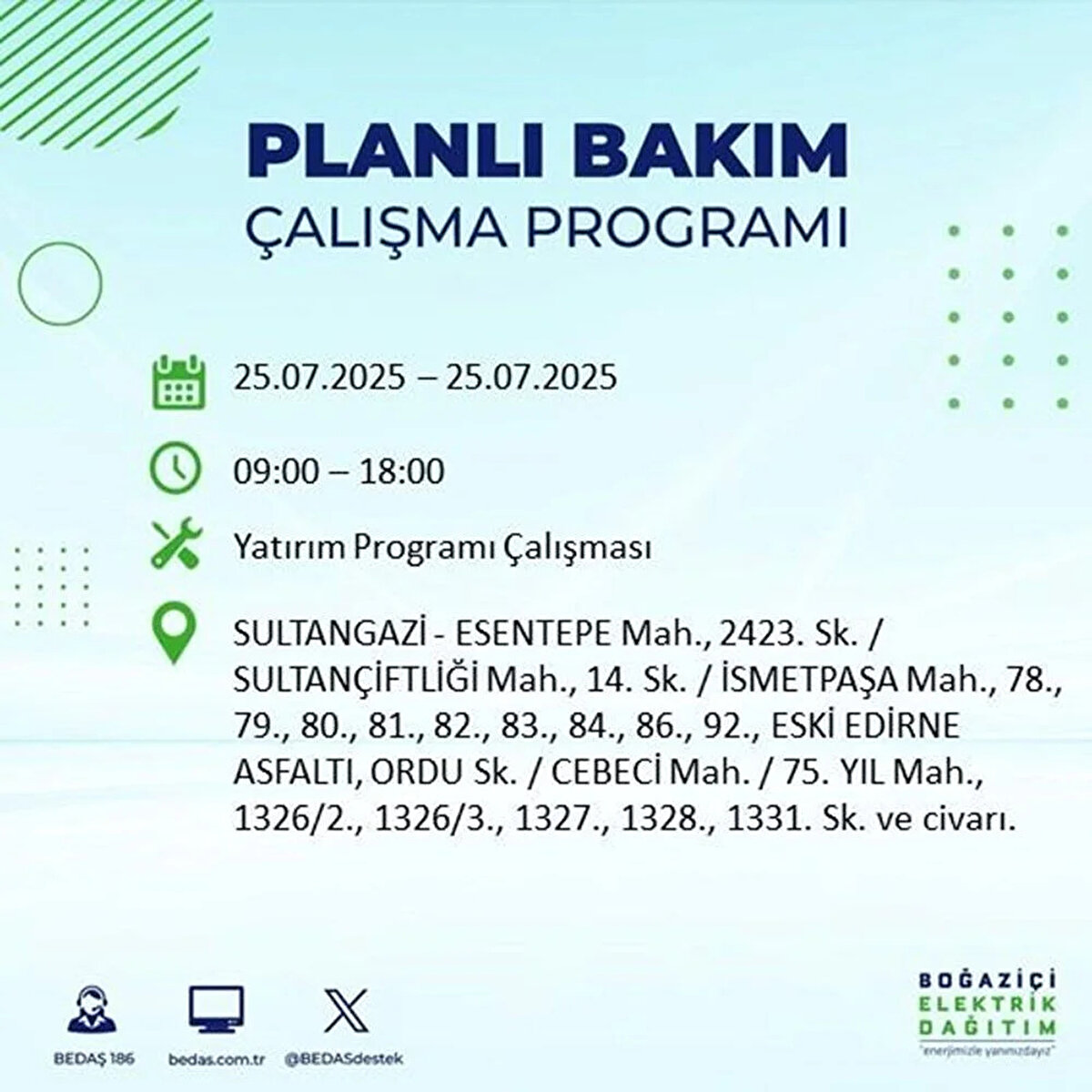 İstanbul elektrik kesintisi: BEDAŞ duyurdu... 21 ilçede 2 gün boyunca 10 saat sürecek elektrik kesintisi listesi belli oldu | 25 Temmuz elektrik kesintisi yaşanacak ilçeler ve mahalleler