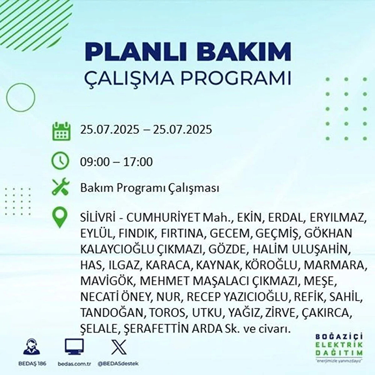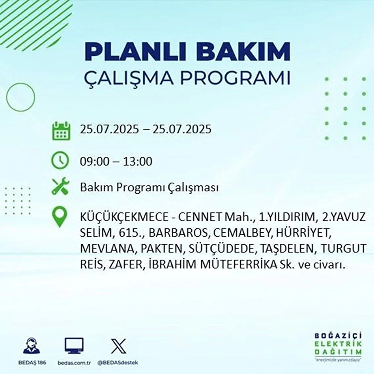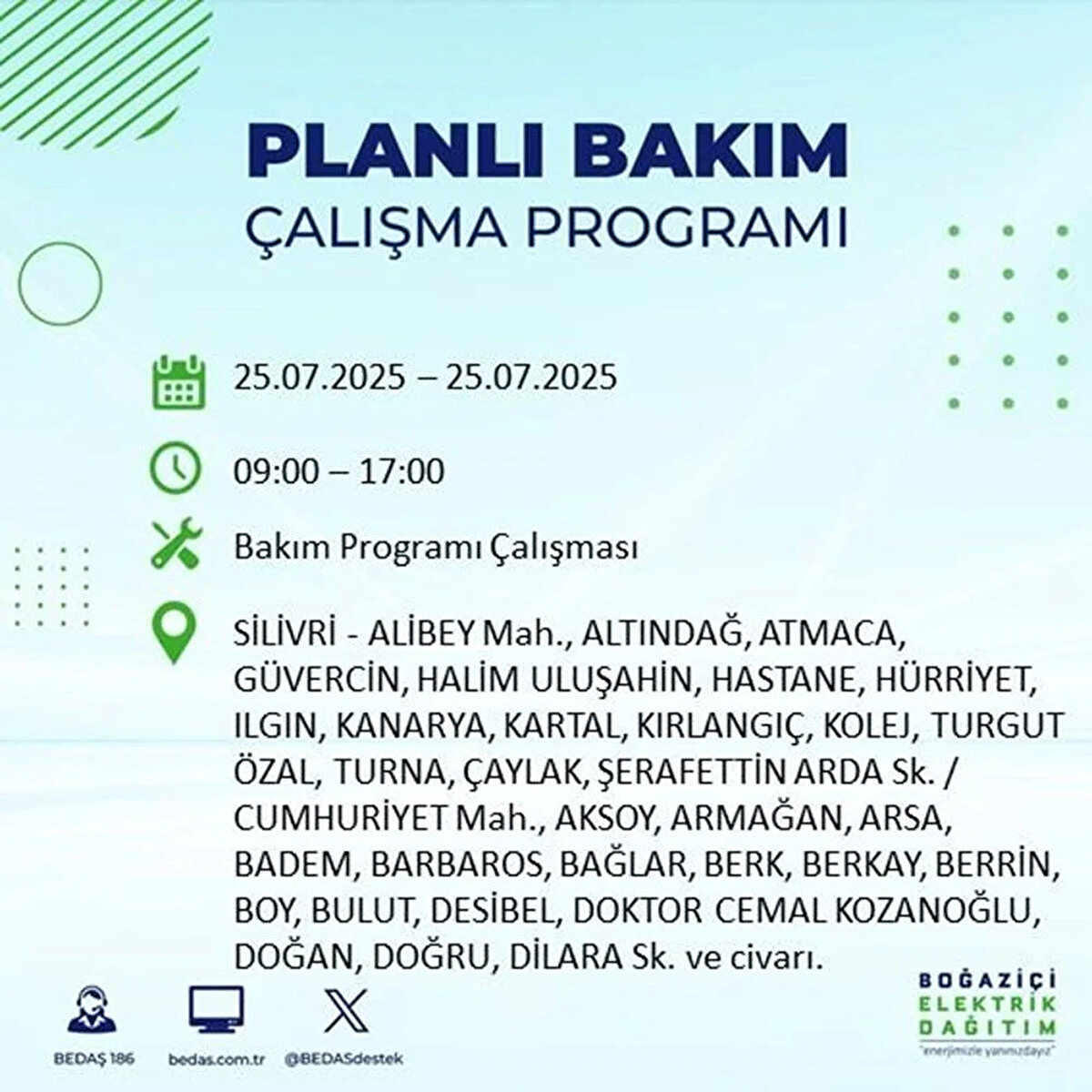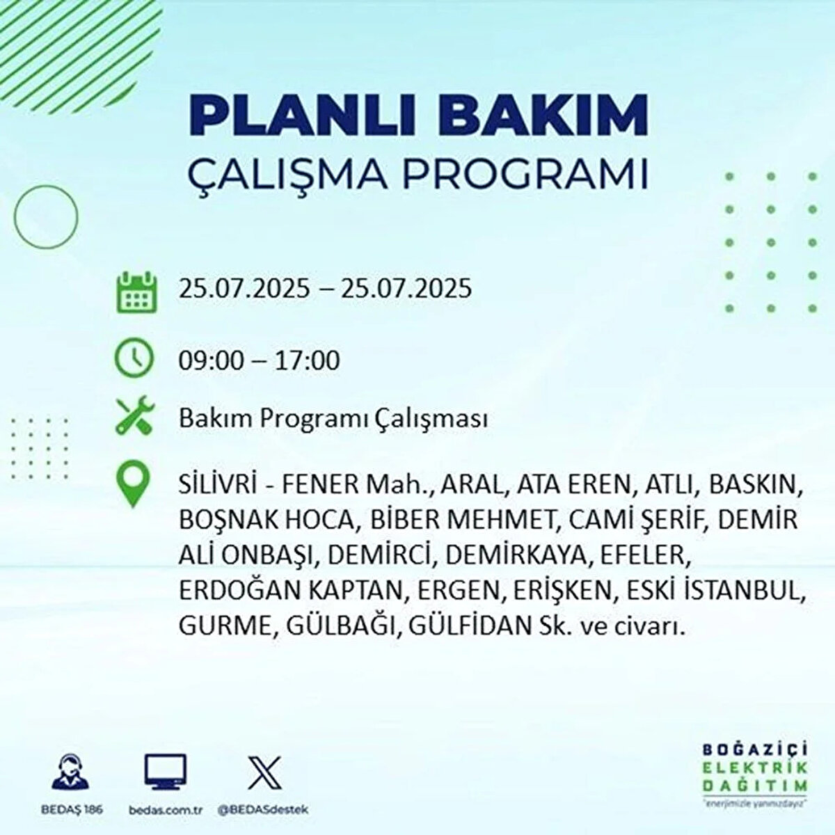 İstanbul elektrik kesintisi: BEDAŞ duyurdu... 21 ilçede 2 gün boyunca 10 saat sürecek elektrik kesintisi listesi belli oldu | 25 Temmuz elektrik kesintisi yaşanacak ilçeler ve mahalleler