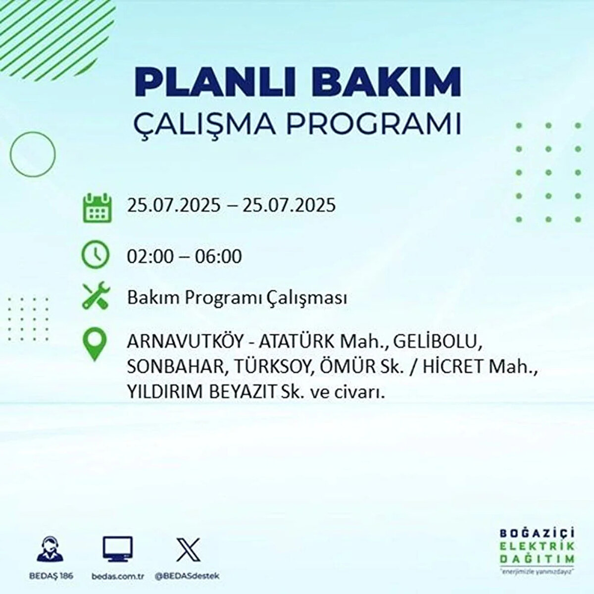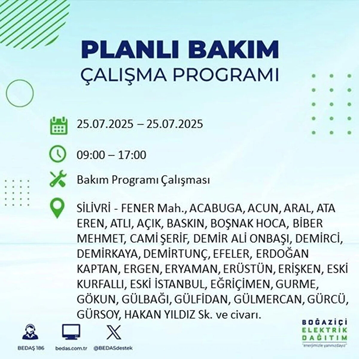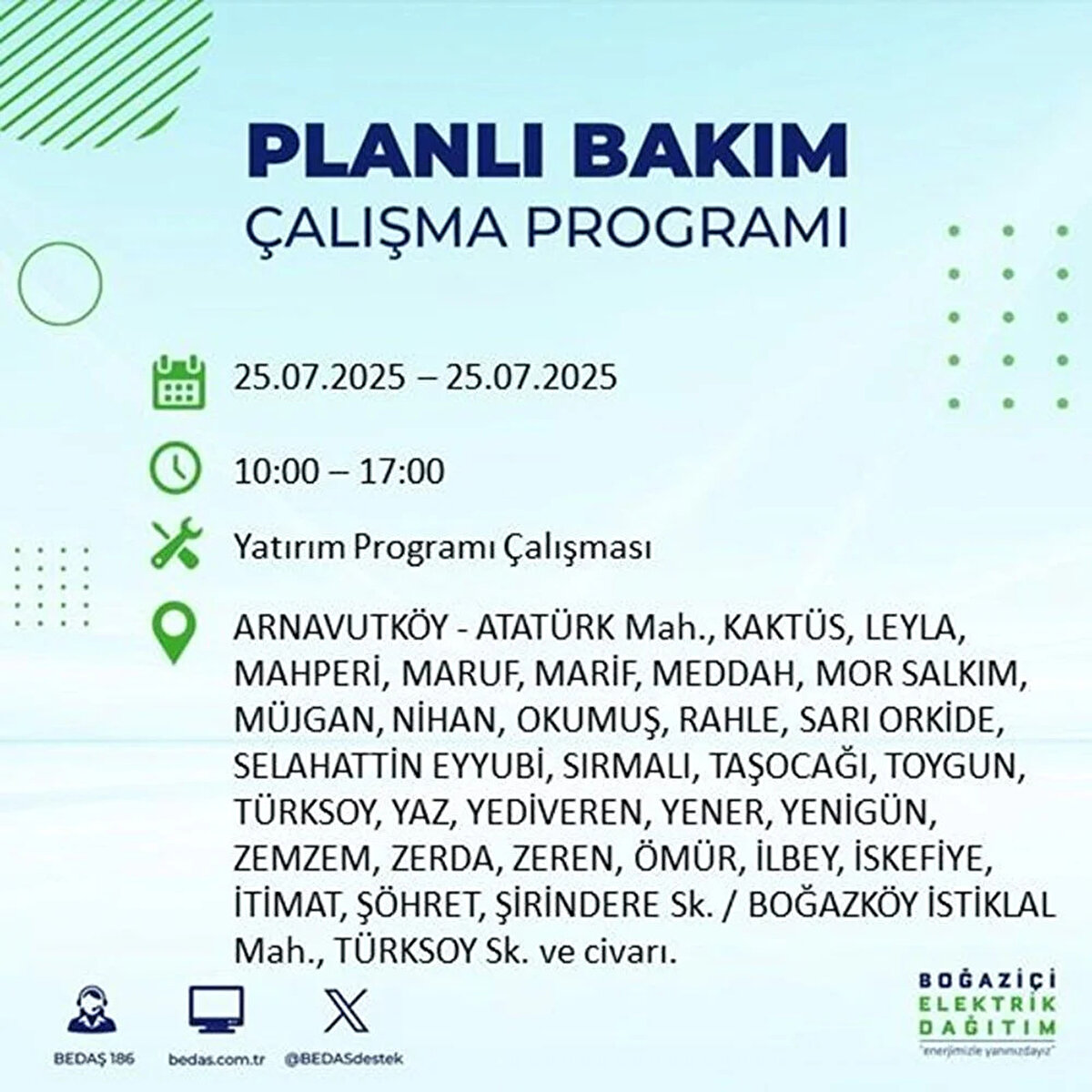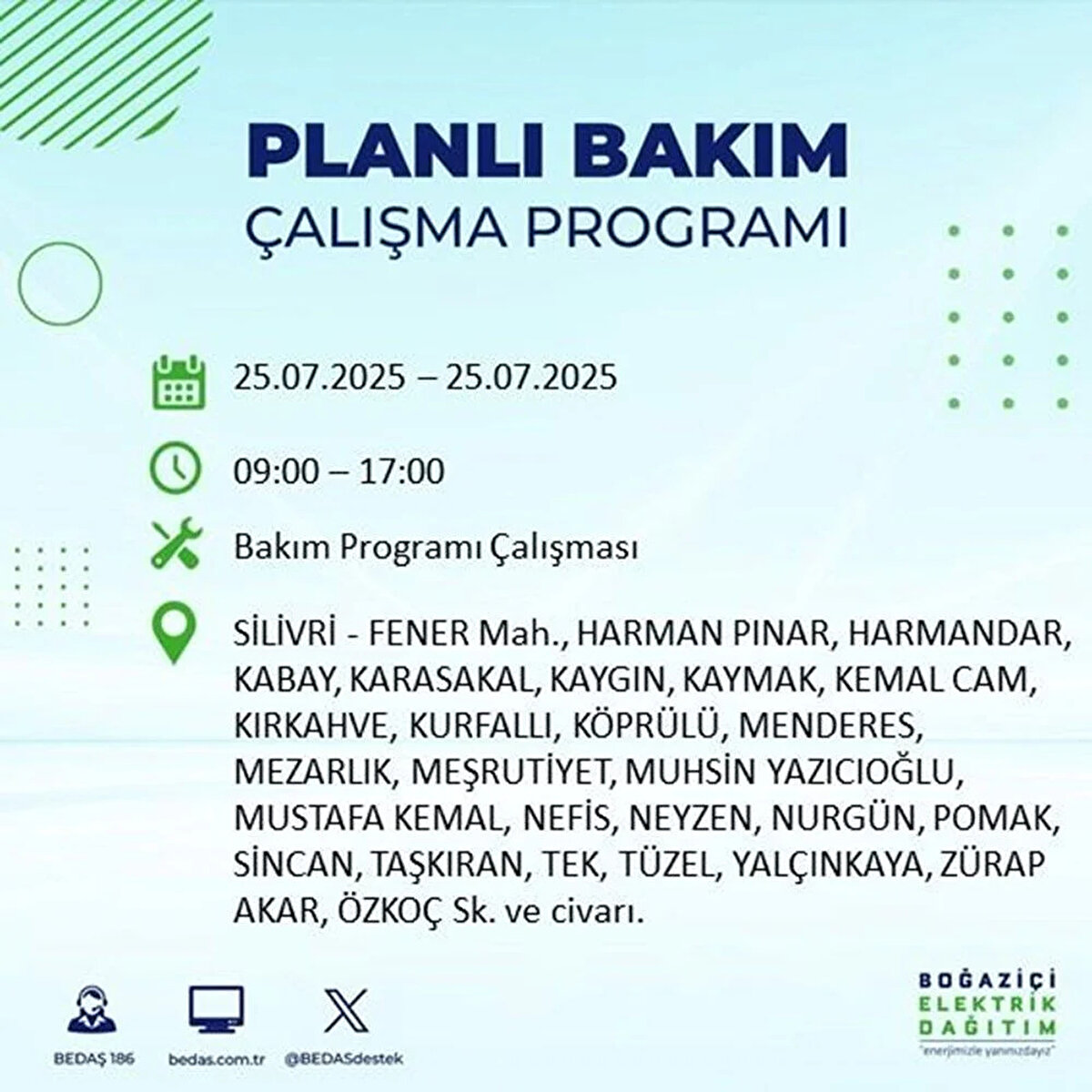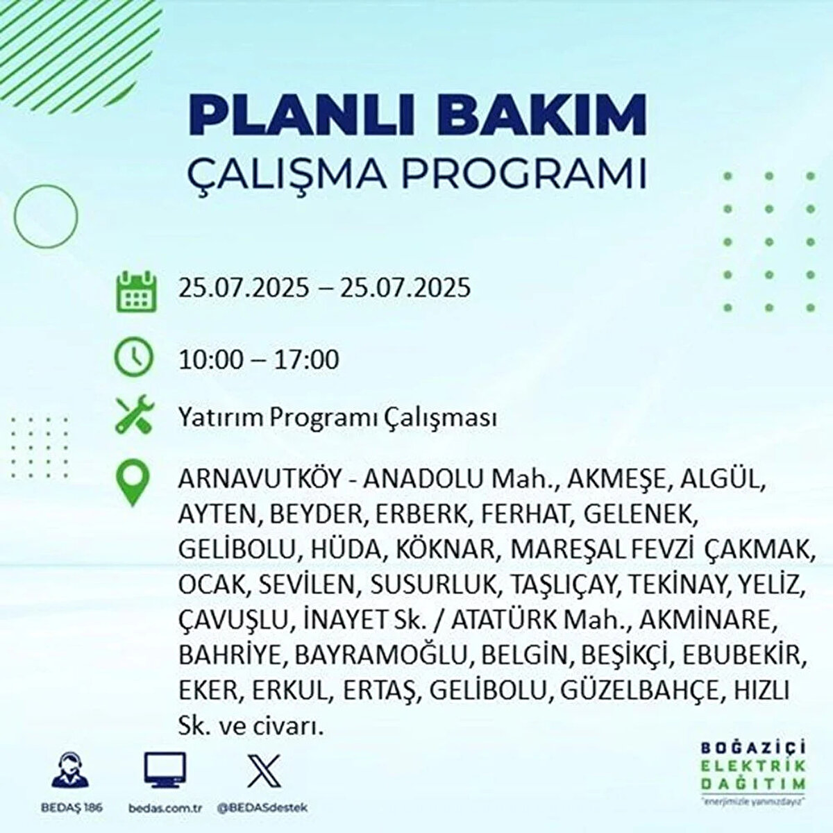 İstanbul elektrik kesintisi: BEDAŞ duyurdu... 21 ilçede 2 gün boyunca 10 saat sürecek elektrik kesintisi listesi belli oldu | 25 Temmuz elektrik kesintisi yaşanacak ilçeler ve mahalleler