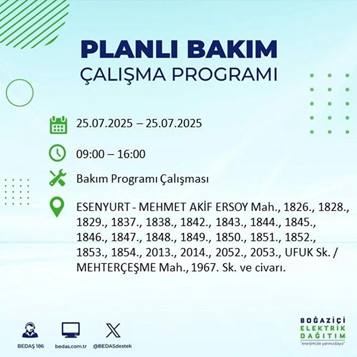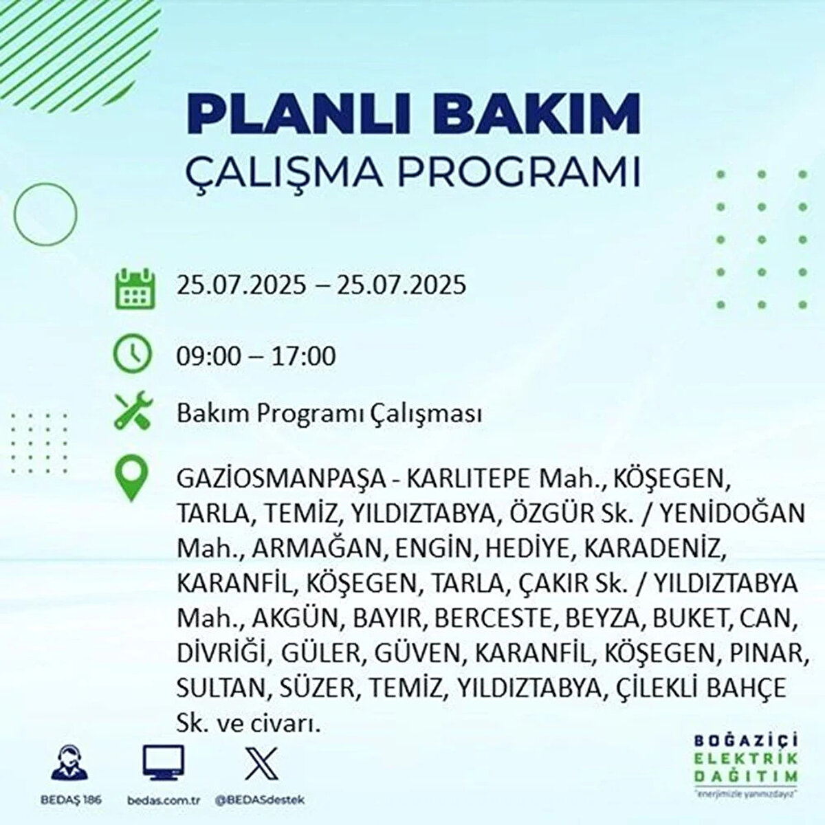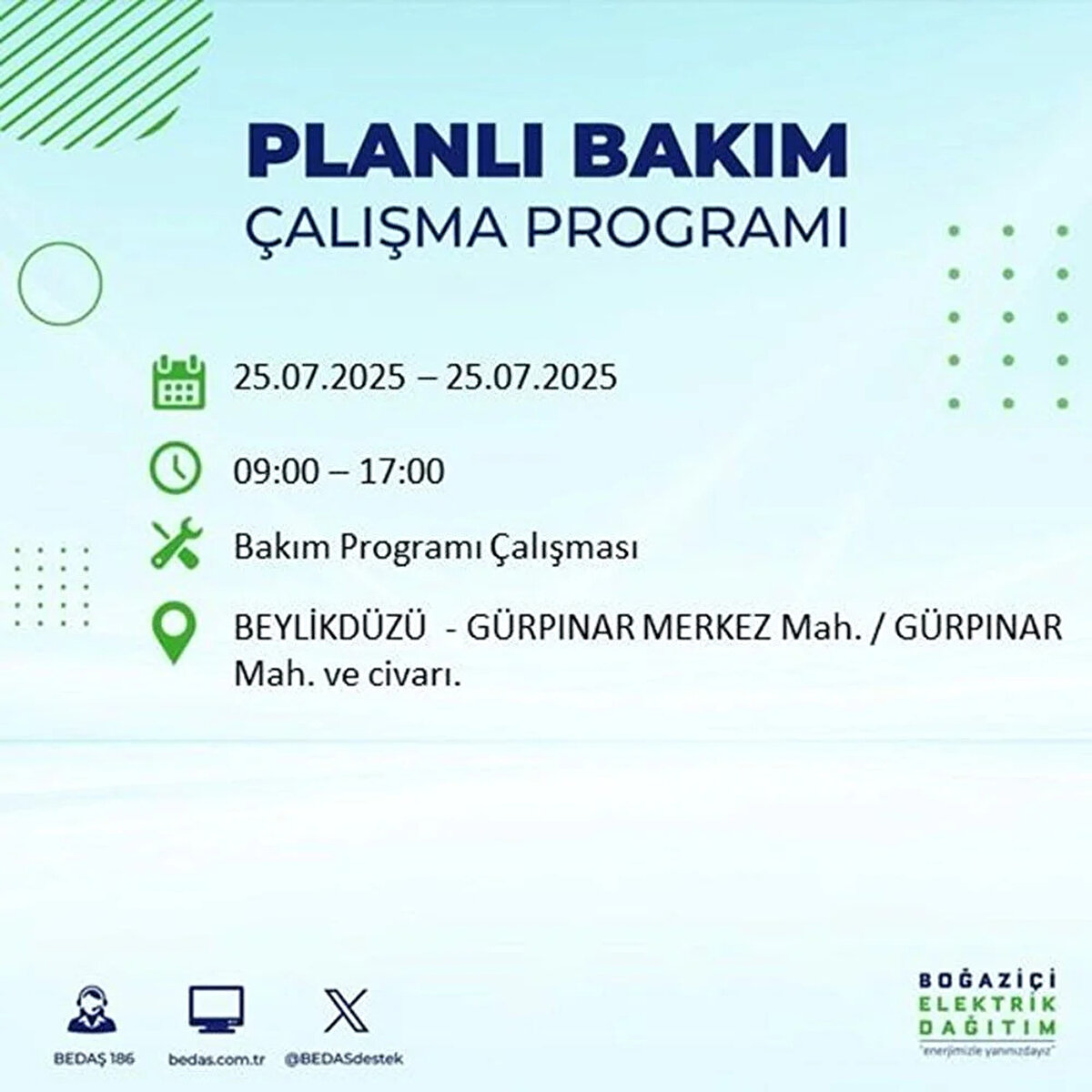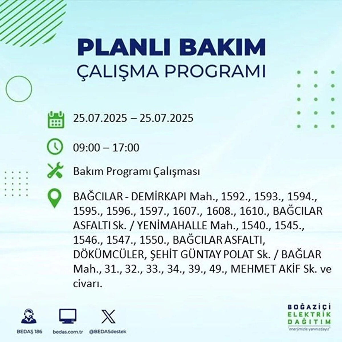 İstanbul elektrik kesintisi: BEDAŞ duyurdu... 21 ilçede 2 gün boyunca 10 saat sürecek elektrik kesintisi listesi belli oldu | 25 Temmuz elektrik kesintisi yaşanacak ilçeler ve mahalleler