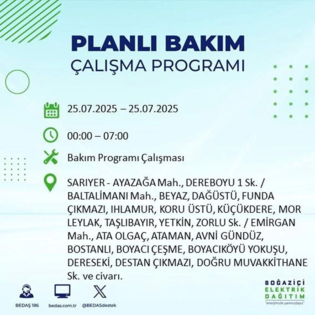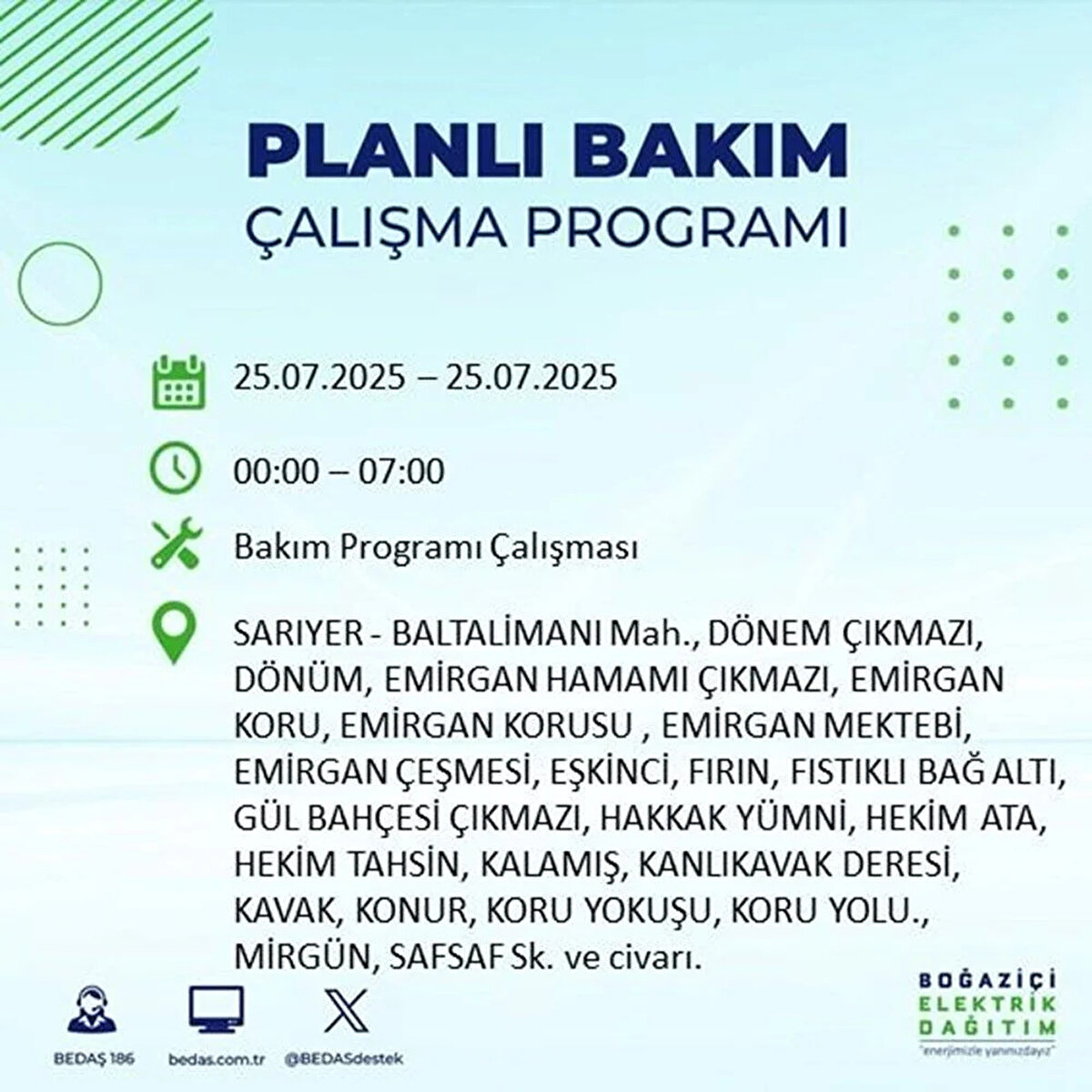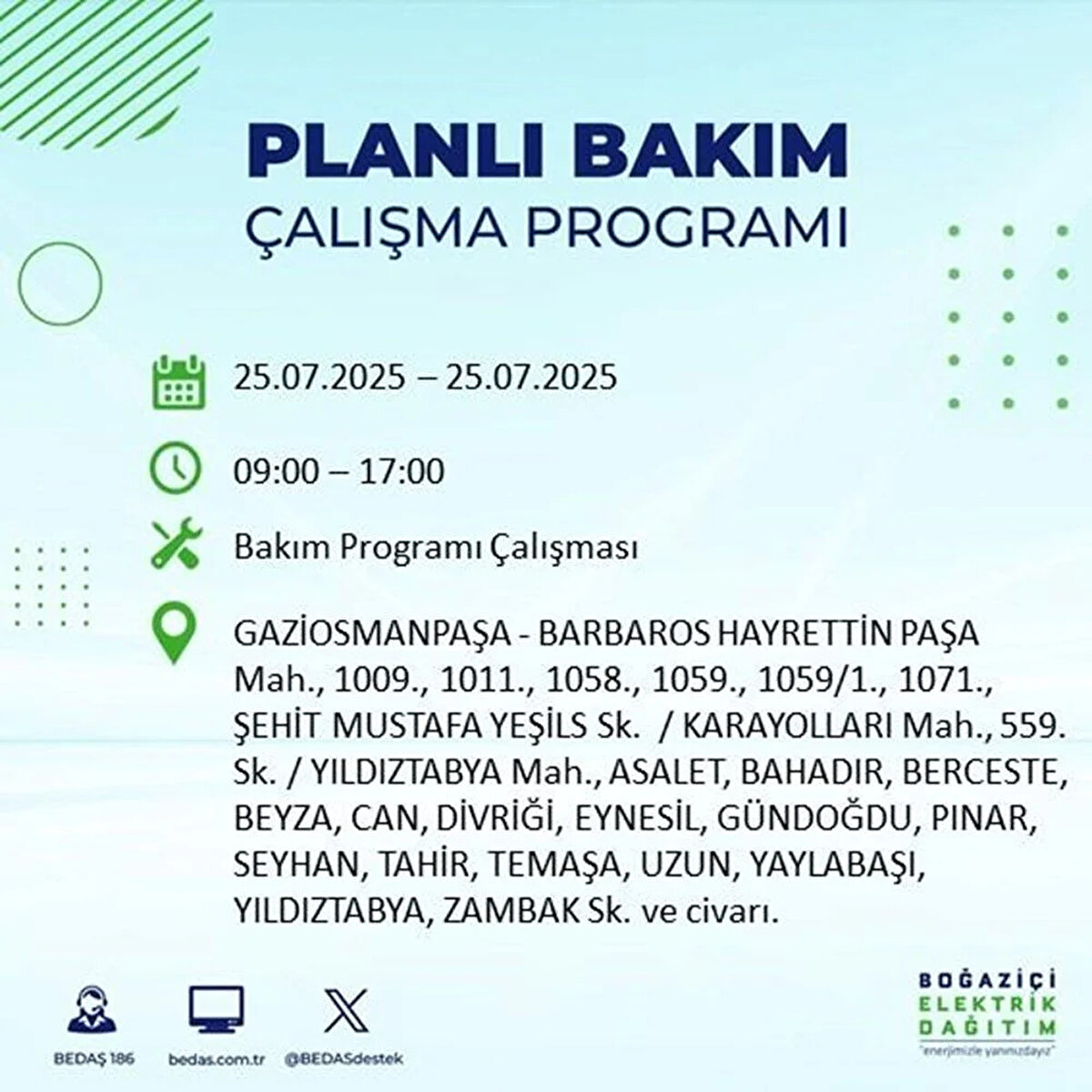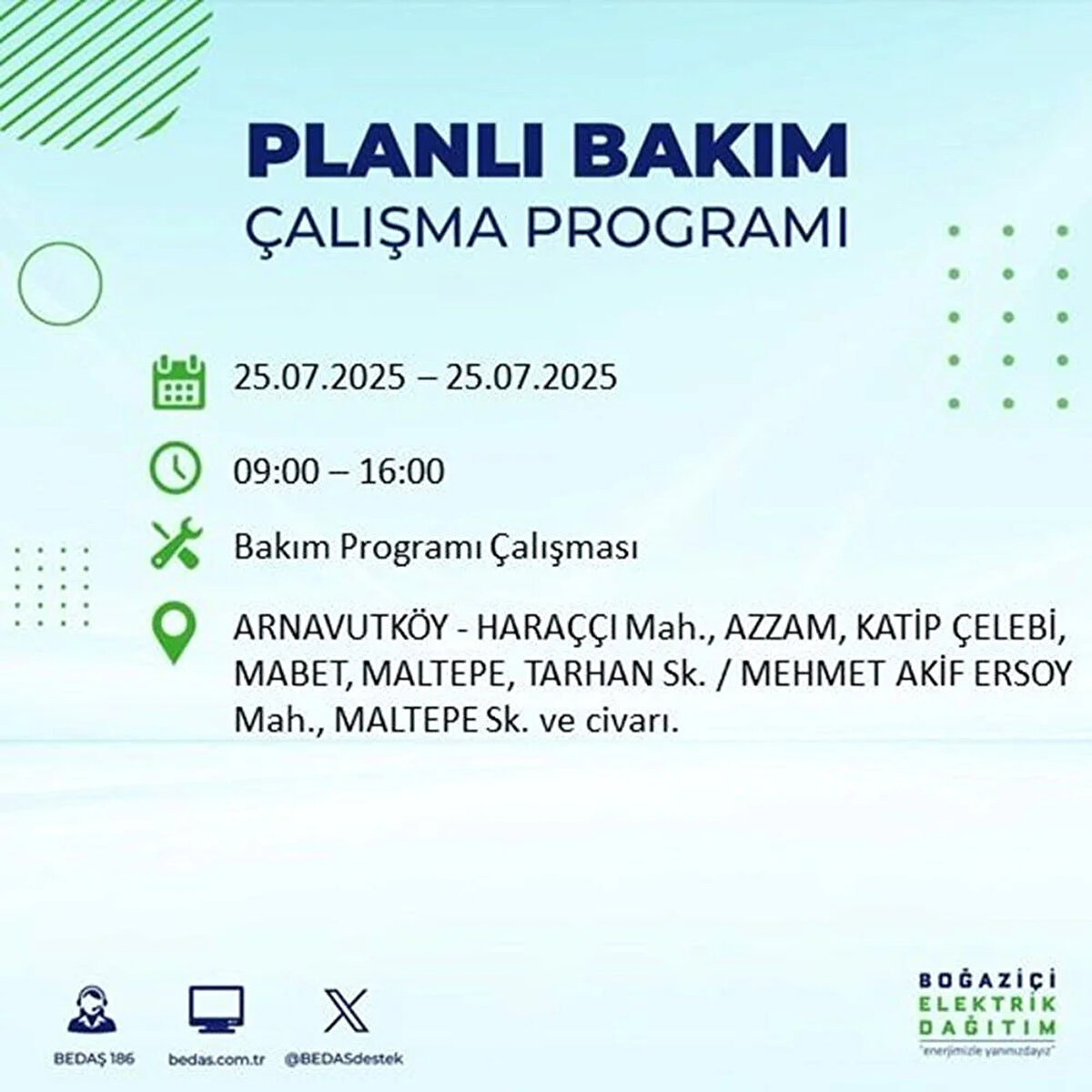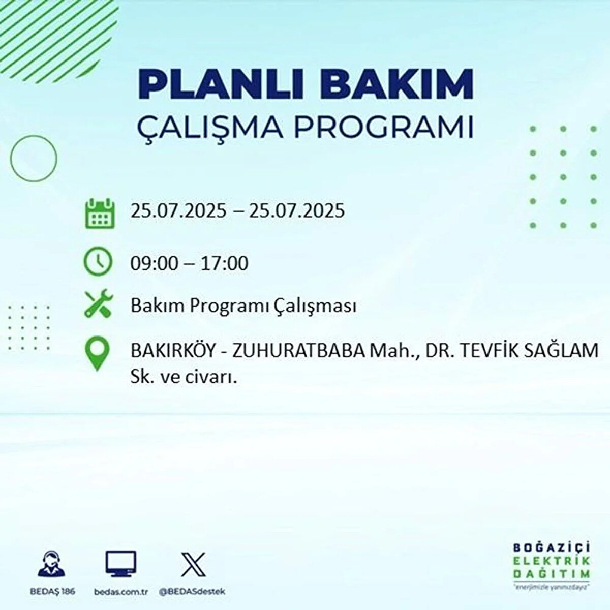 İstanbul elektrik kesintisi: BEDAŞ duyurdu... 21 ilçede 2 gün boyunca 10 saat sürecek elektrik kesintisi listesi belli oldu | 25 Temmuz elektrik kesintisi yaşanacak ilçeler ve mahalleler