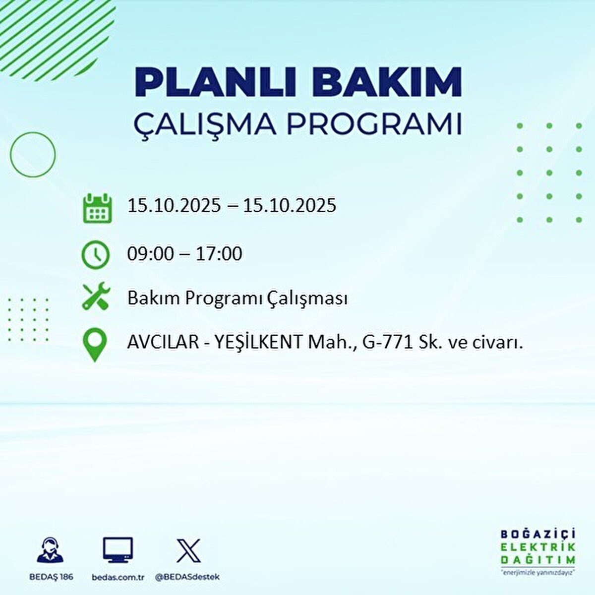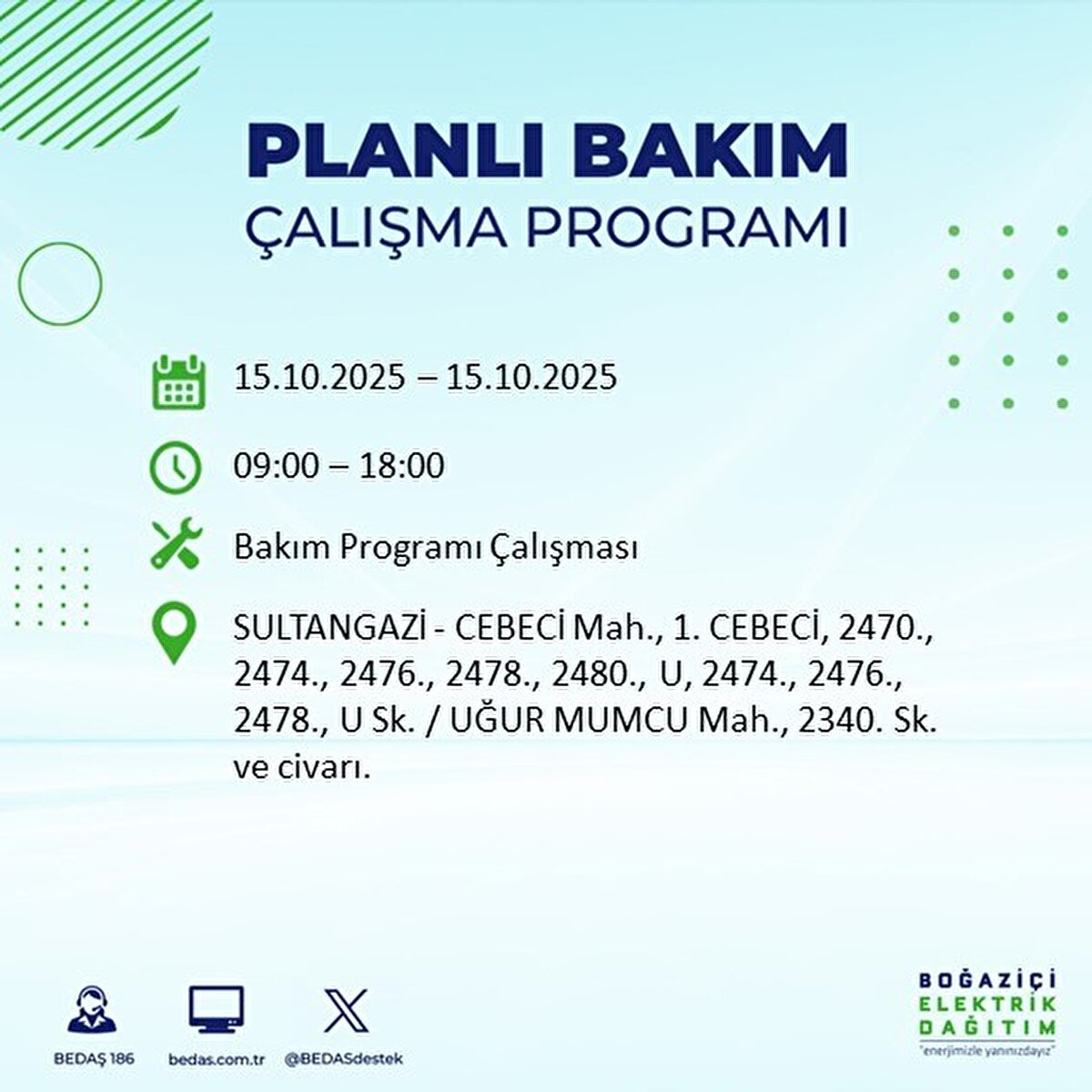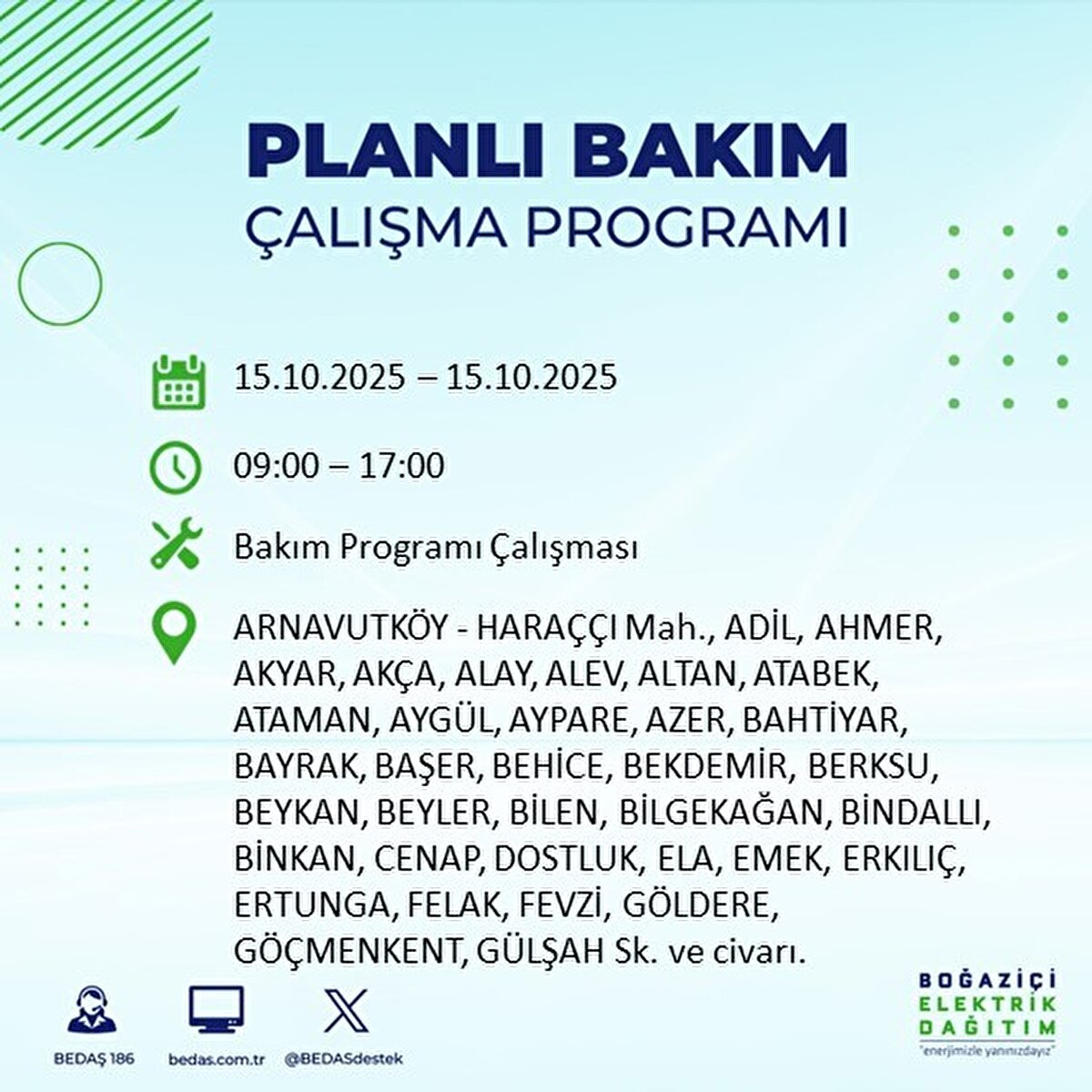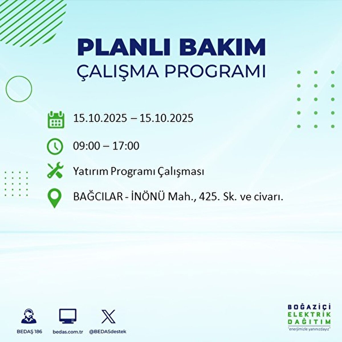İstanbul'un 21 ilçesinde elektrik kesilecek! 15 Ekim 2025 Çarşamba İstanbul'da elektriğin kesileceği ilçeler ve mahalleler